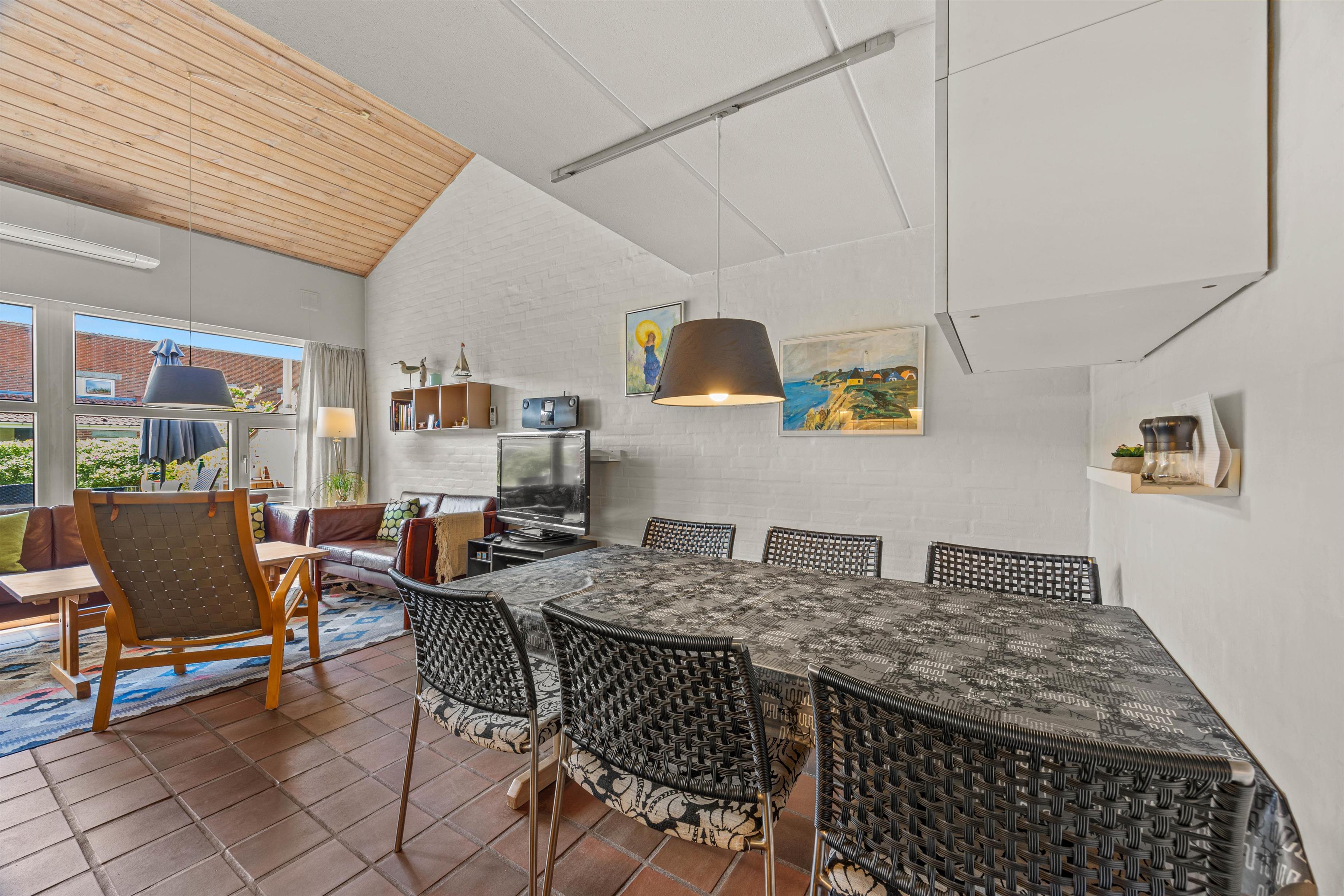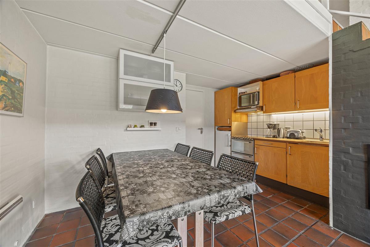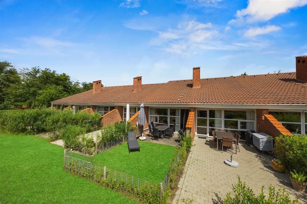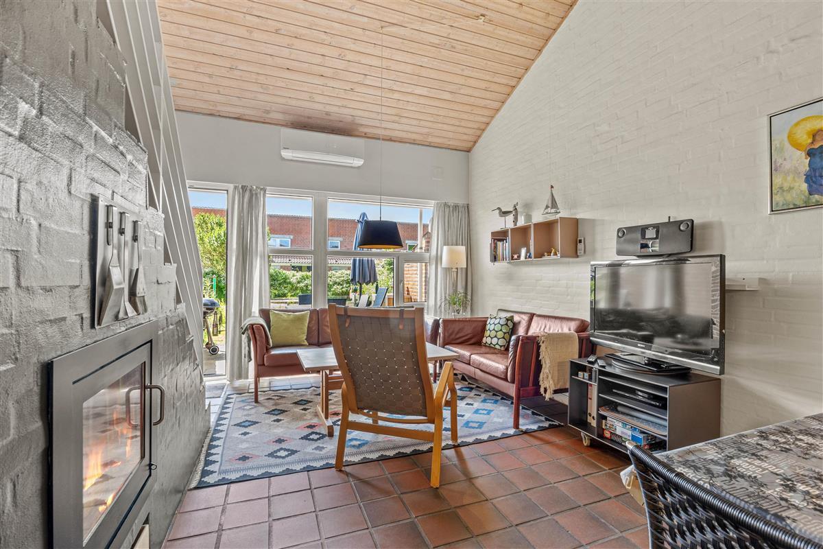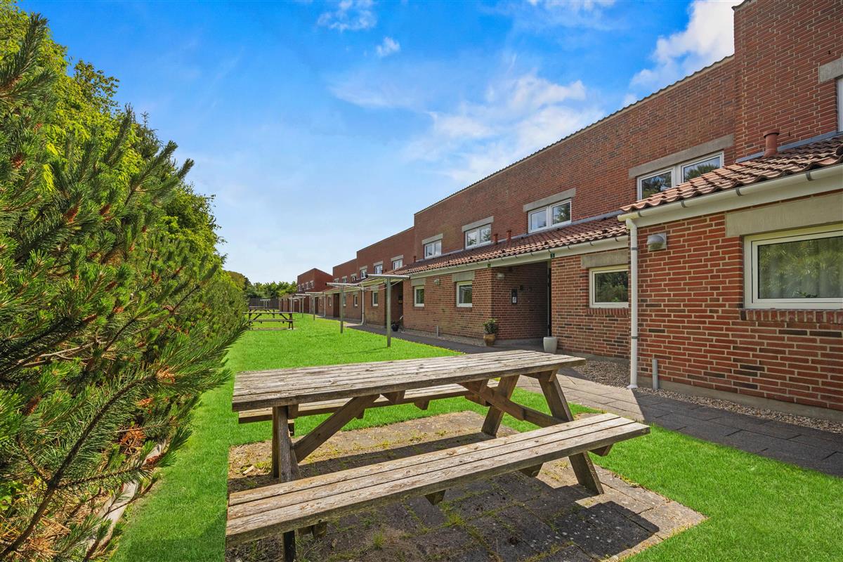 The living room opens onto the holiday apartment's terrace. There is a screen between the neighbours, and the small garden is enclosed by a wire fence in the hedge. Garden furniture is also provided so you can enjoy the Danish summer.