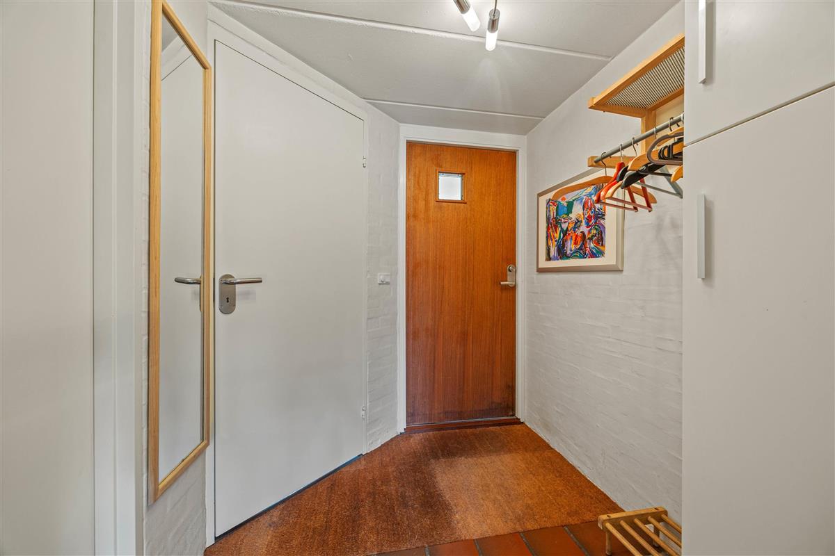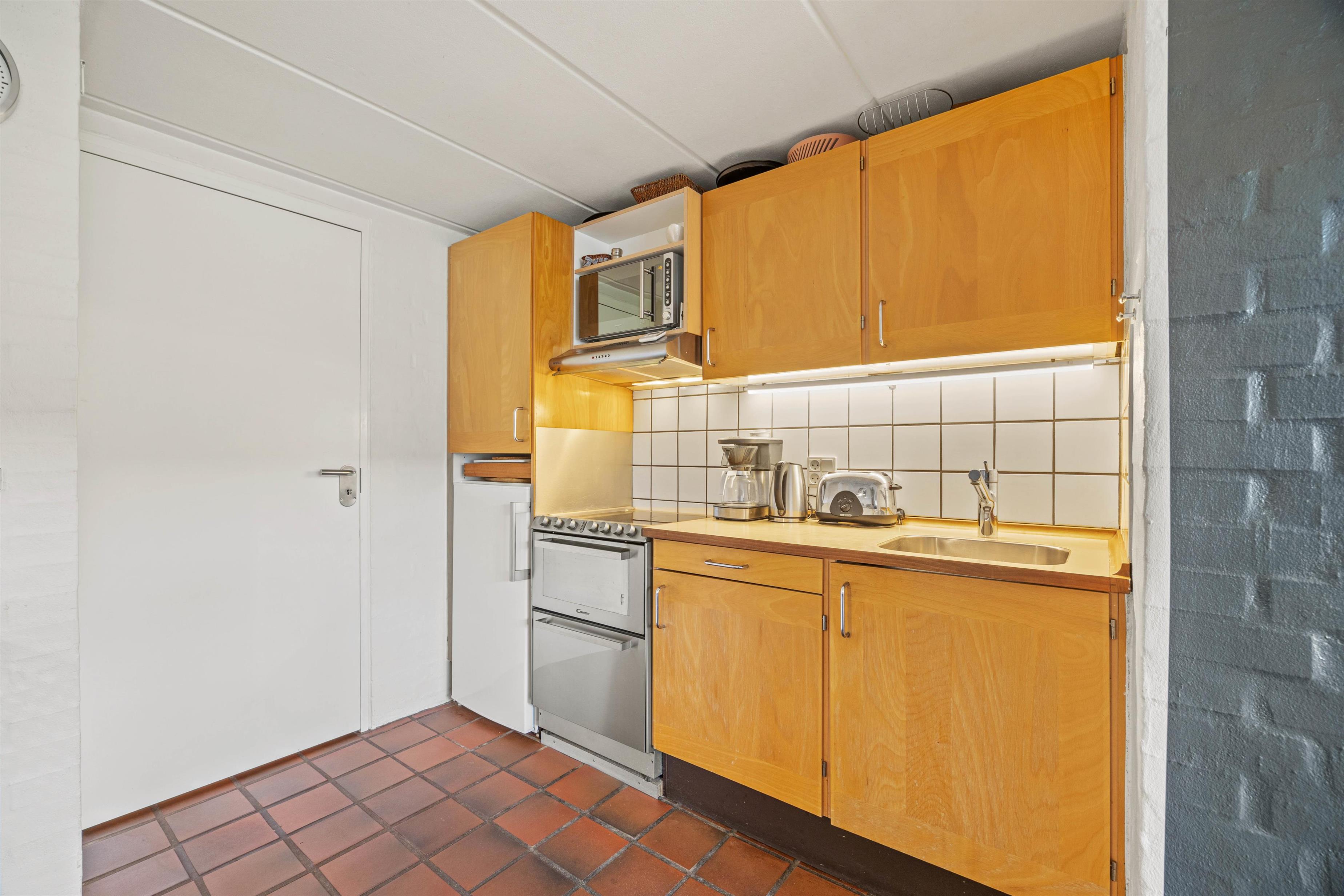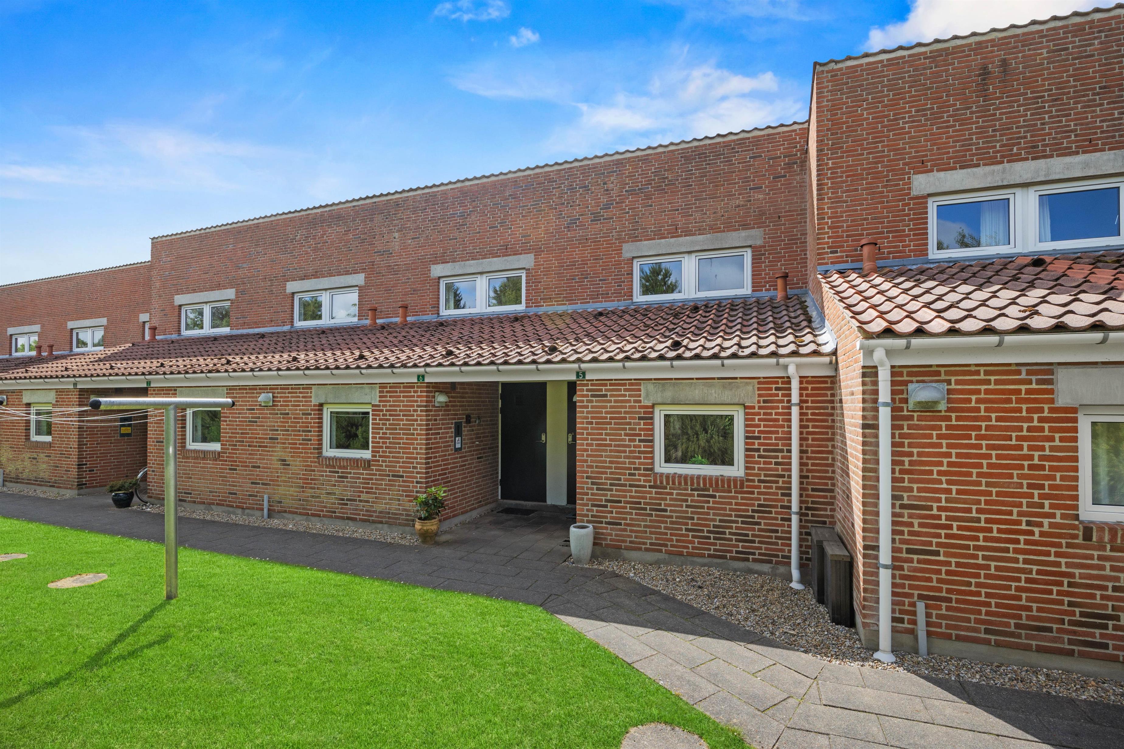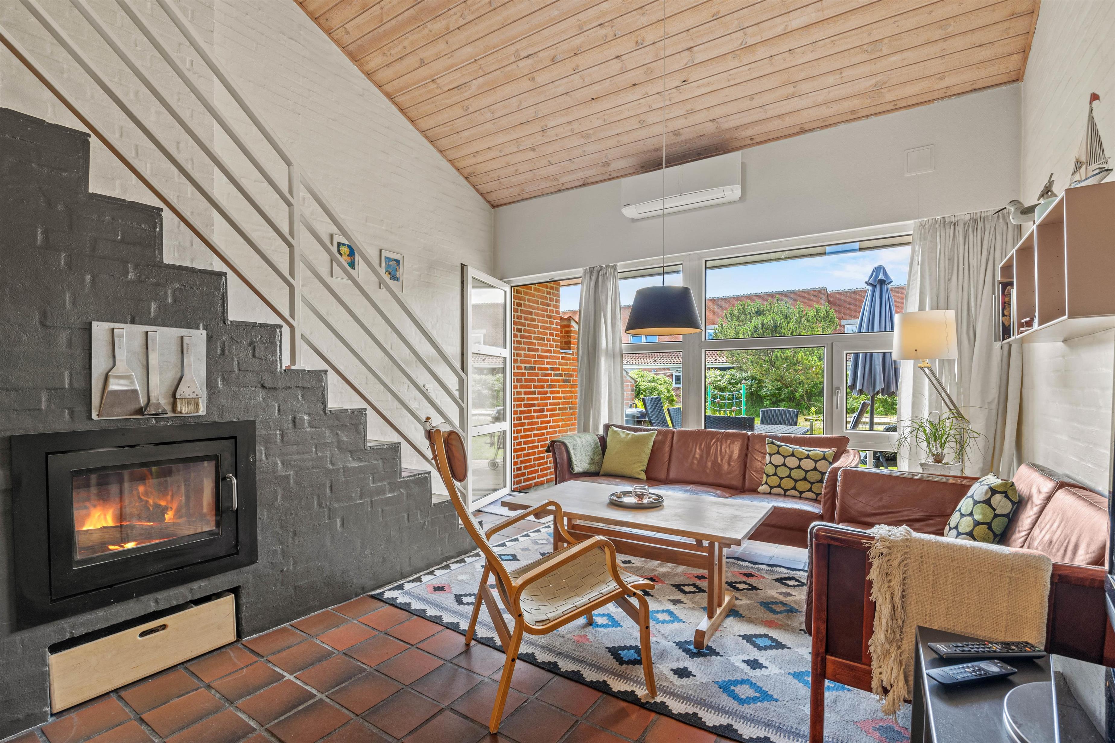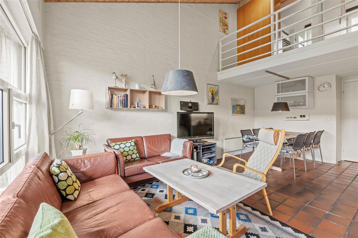 The living room opens onto the holiday apartment's terrace. There is a screen between the neighbours, and the small garden is enclosed by a wire fence in the hedge. Garden furniture is also provided so you can enjoy the Danish summer.