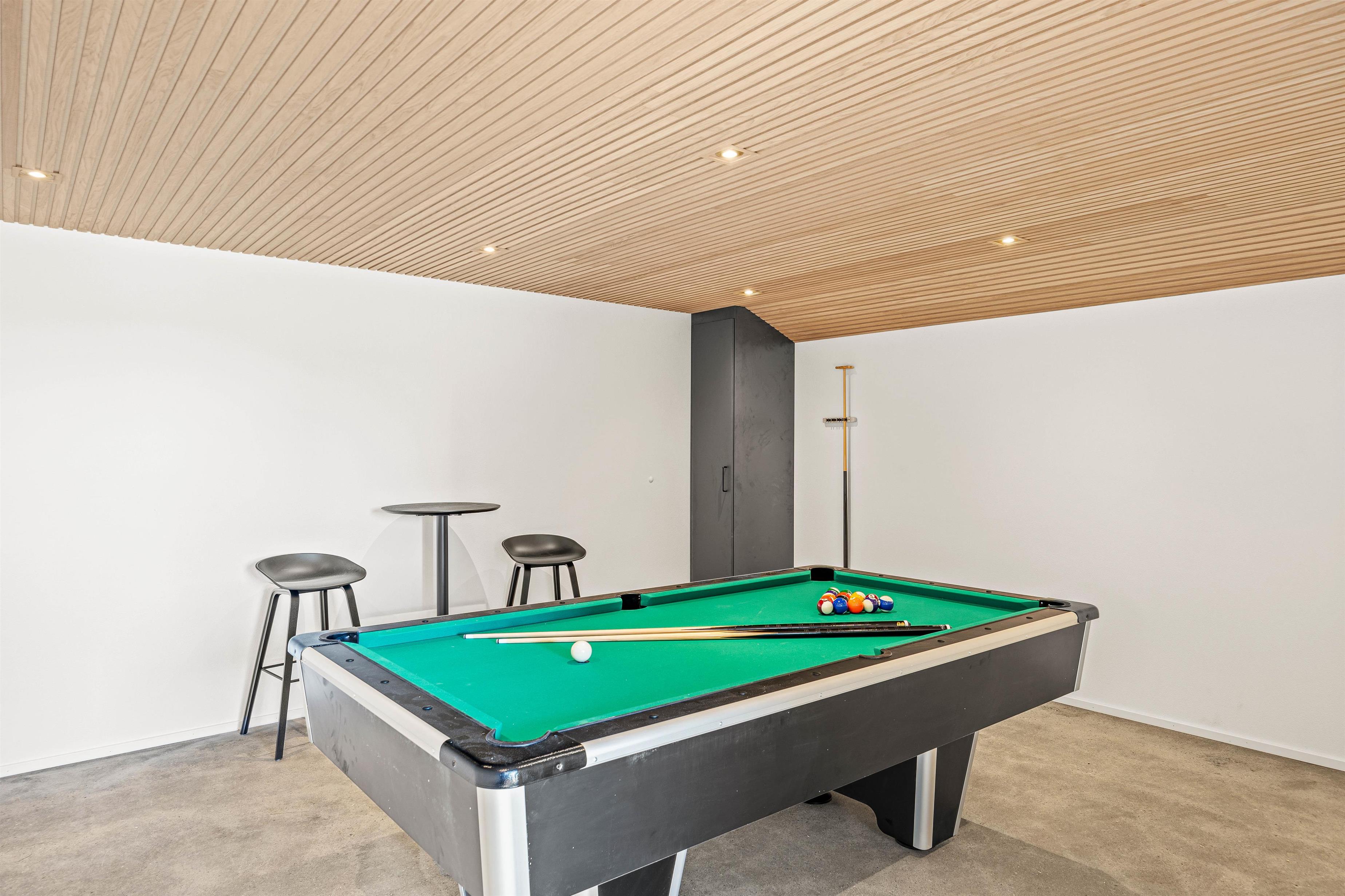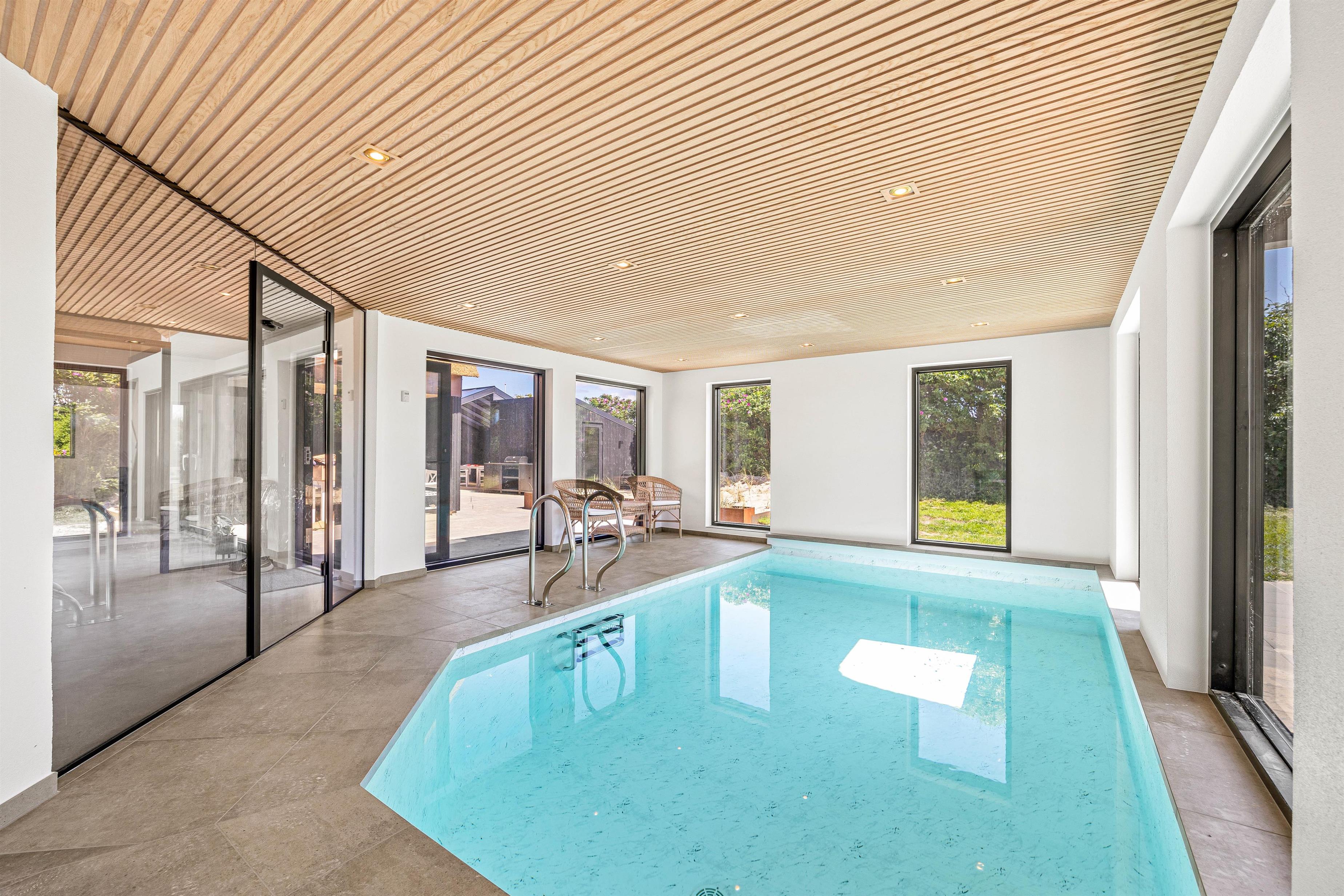 A highlight is certainly the 16-square-metre swimming pool and hot tub. Whether you prefer splashing about in the pool or relaxing in the hot tub, the wellness area in your holiday home is always available. For those seeking non-water entertainment, there's a pool table and even outdoor table tennis.