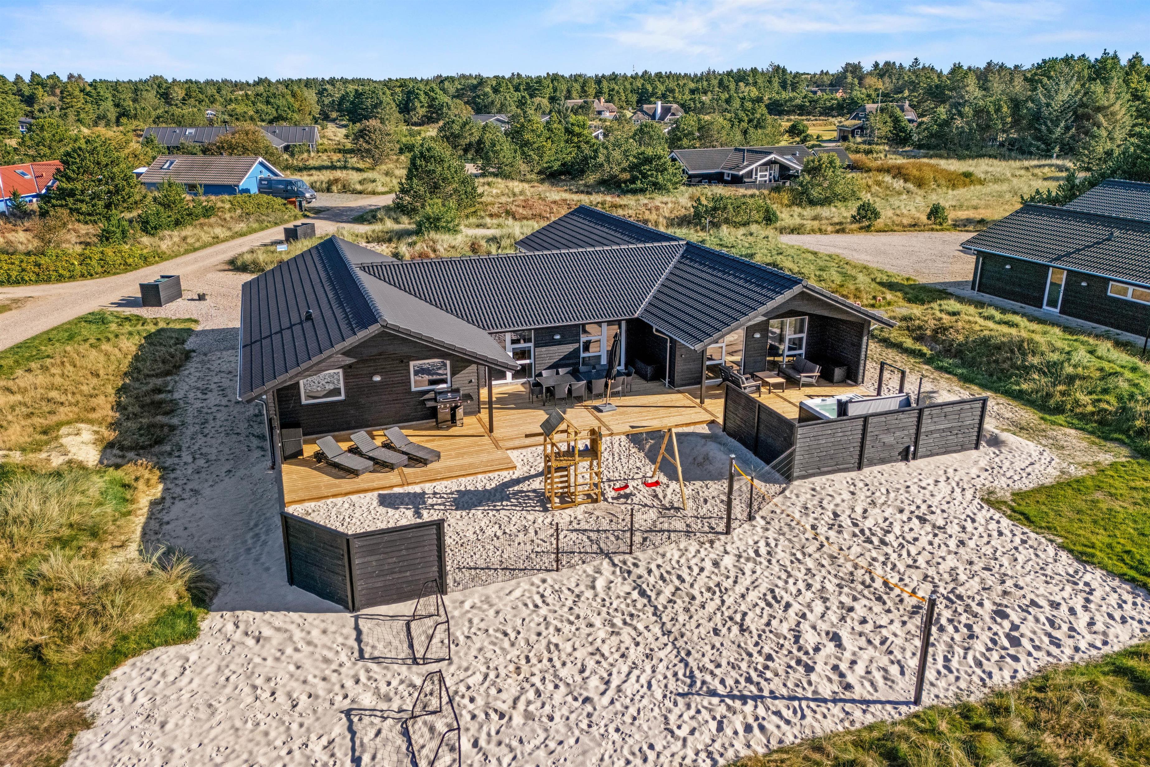 Willkommen in deinem unvergesslichen Urlaubserlebnis im Herzen von Dänemark. Das 5-Sterne-Ferienhaus in Blåvand, ideal gelegen in der malerischen Gegend auf der Adresse Solhaven 9, bietet dir den perfekten Mix aus Luxus und Gemütlichkeit. Hier wirst du mit deiner Familie oder Freunden eine Auszeit in vollen Zügen genießen können. Die großzügige Wohnfläche von 209 Quadratmetern bietet Platz für bis zu 10 Personen, ideal für große Zusammenkünfte oder entspannte Familienferien.
