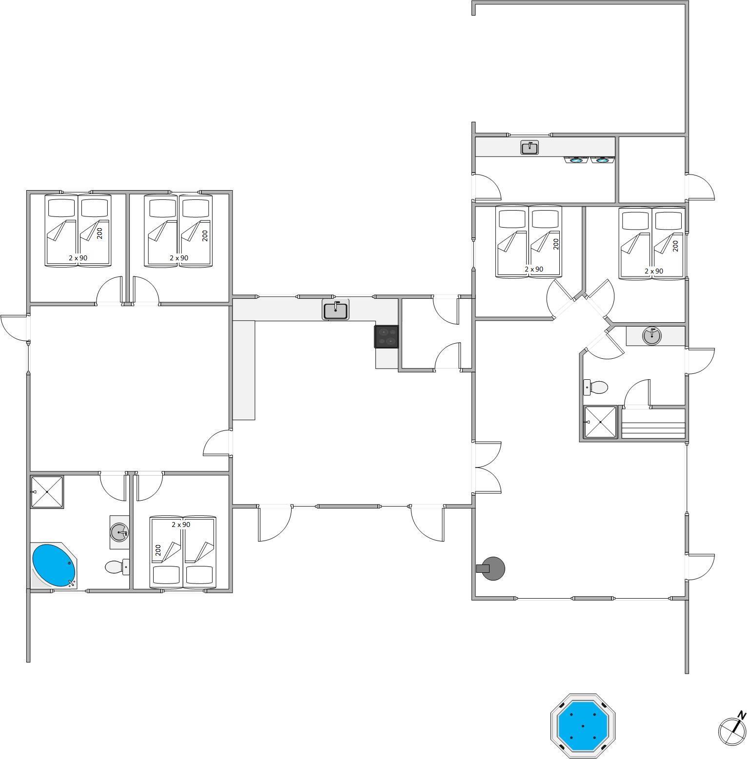 Betrete ein Haus der Superlative, gebaut im Jahr 2025, das alle Annehmlichkeiten für einen traumhaften Aufenthalt erfüllt. Jedes der fünf geschmackvoll eingerichteten Schlafzimmer besticht durch ein bequemes Doppelbett, das erholsame Nächte garantiert. Zwei moderne Badezimmer, ausgestattet mit Fußbodenheizung für zusätzlichen Komfort, sowie ein Whirlpool für die ultimative Entspannung, lassen keine Wünsche offen. Darüber hinaus stehen dir eine Sauna und ein Außenwhirlpool zur Verfügung, die dir dabei helfen, den Alltagsstress hinter dir zu lassen.