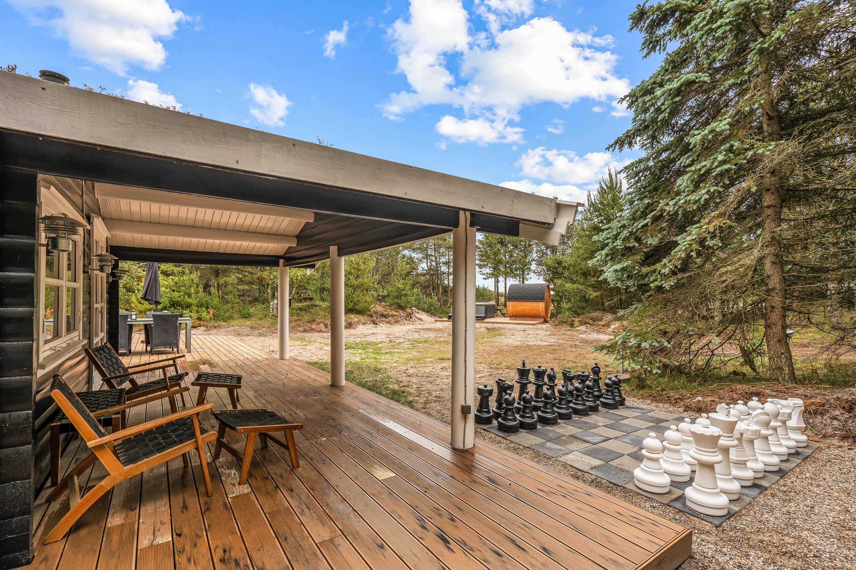 The location of this cosy wooden house is a real highlight. You're completely private here, surrounded by a small pine forest leading to beautiful heathland. The white sandy beach in Blåvand is 0.6 miles (1,000 metres) away. Plenty of shopping facilities, cafés and restaurants can be found in Blåvand's centre, 1.5 miles (2,500 metres) away.