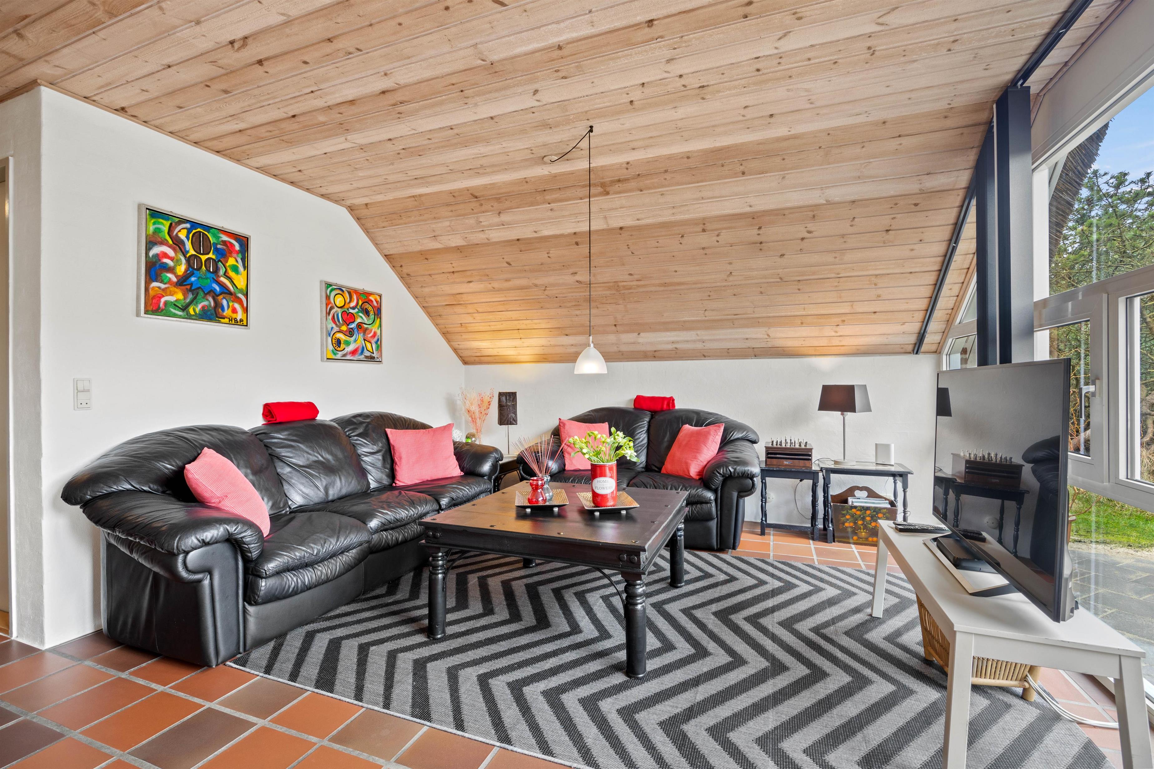Architecturally fascinating, this holiday home offers a truly special atmosphere. The spacious, characterful living room with wood-burning stove provides ample space for everyone to feel comfortable. For cooler evenings, the energy-efficient heat pump provides warmth.