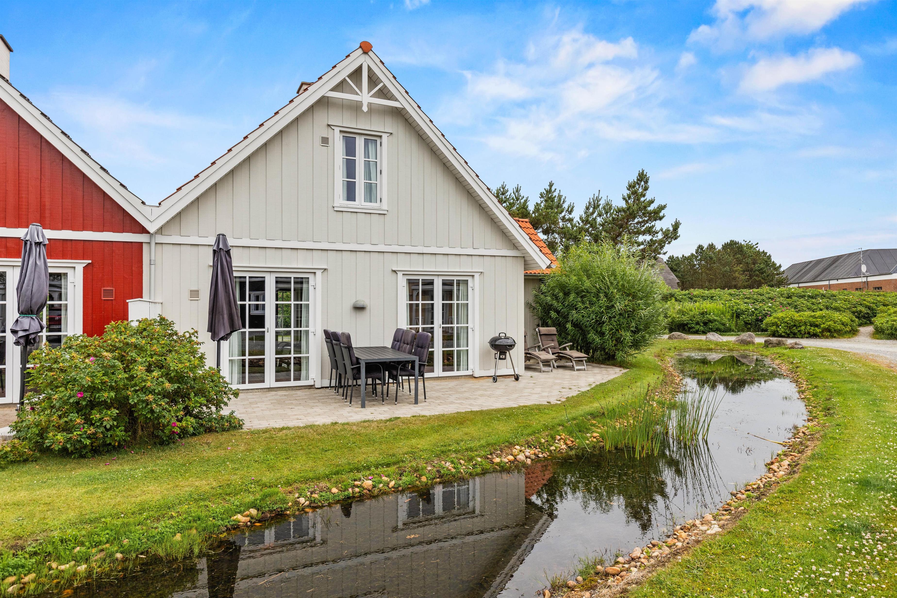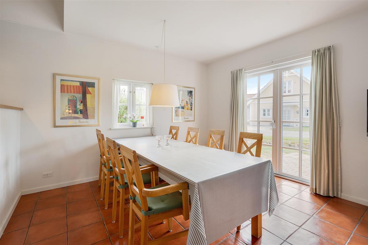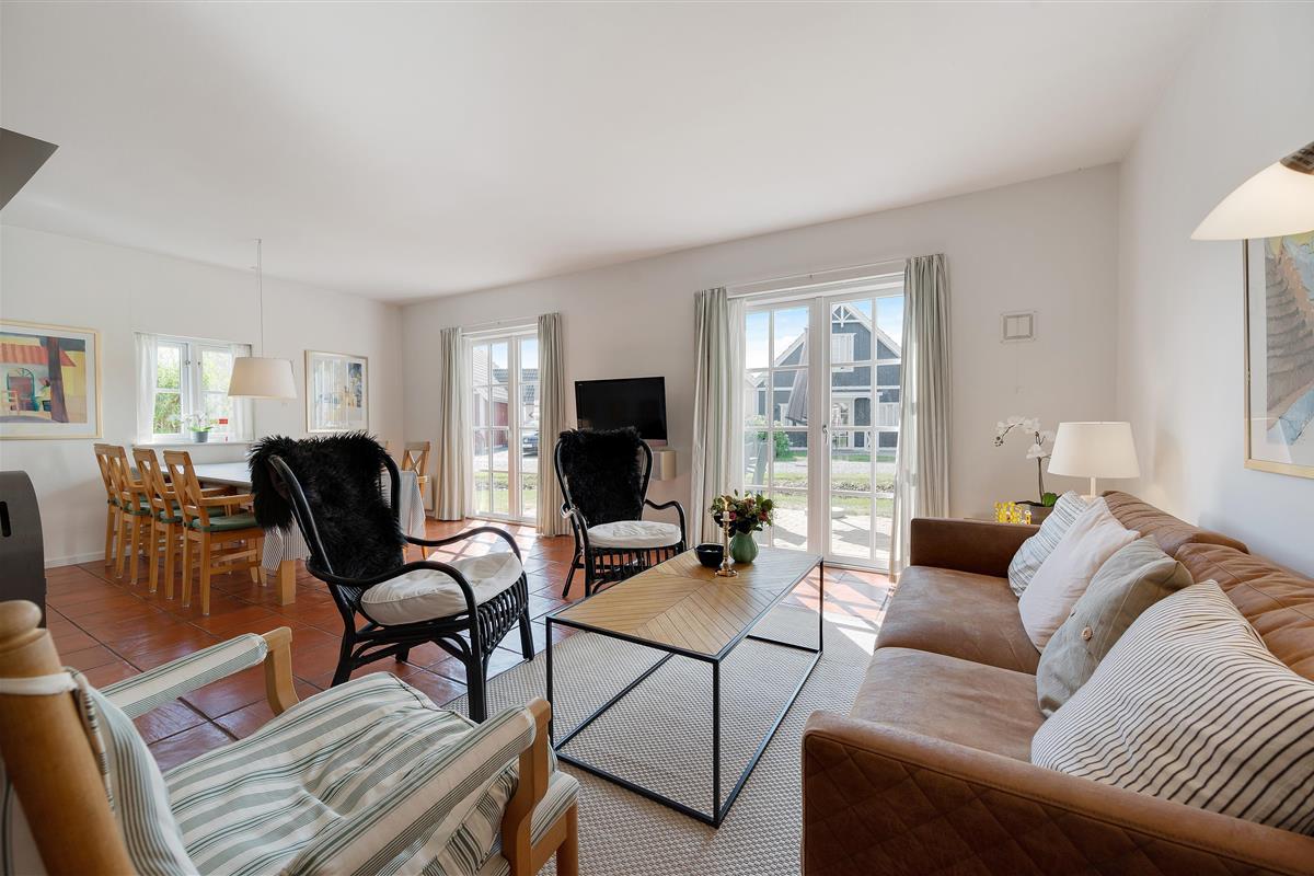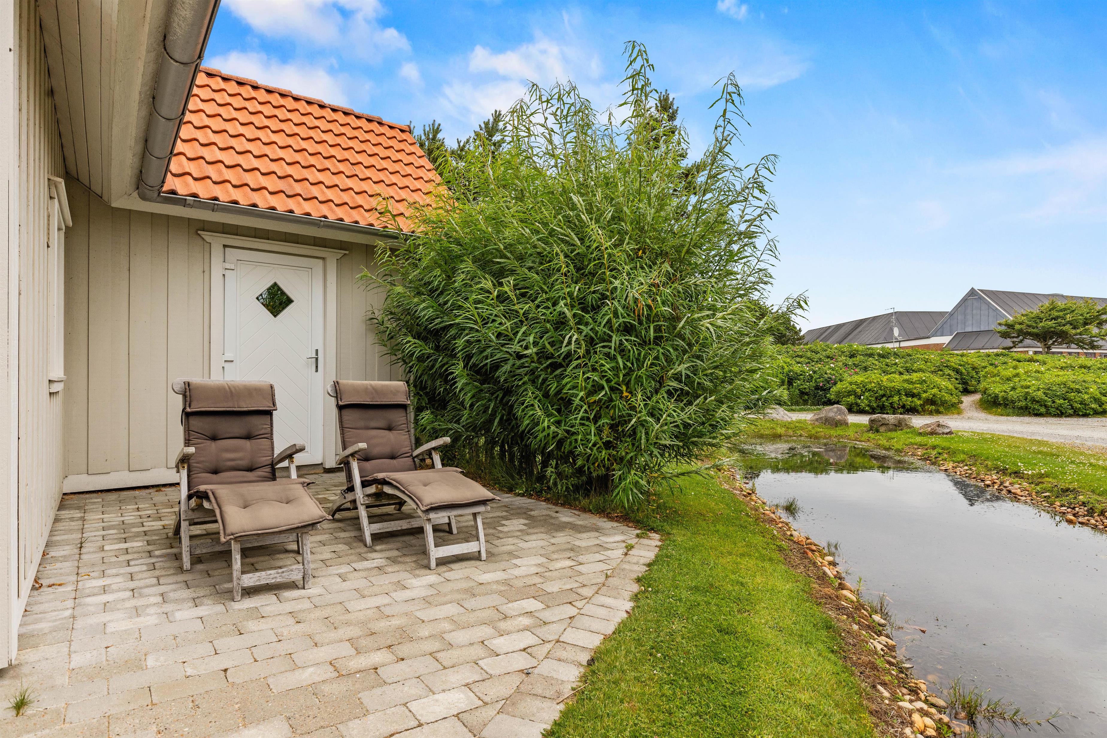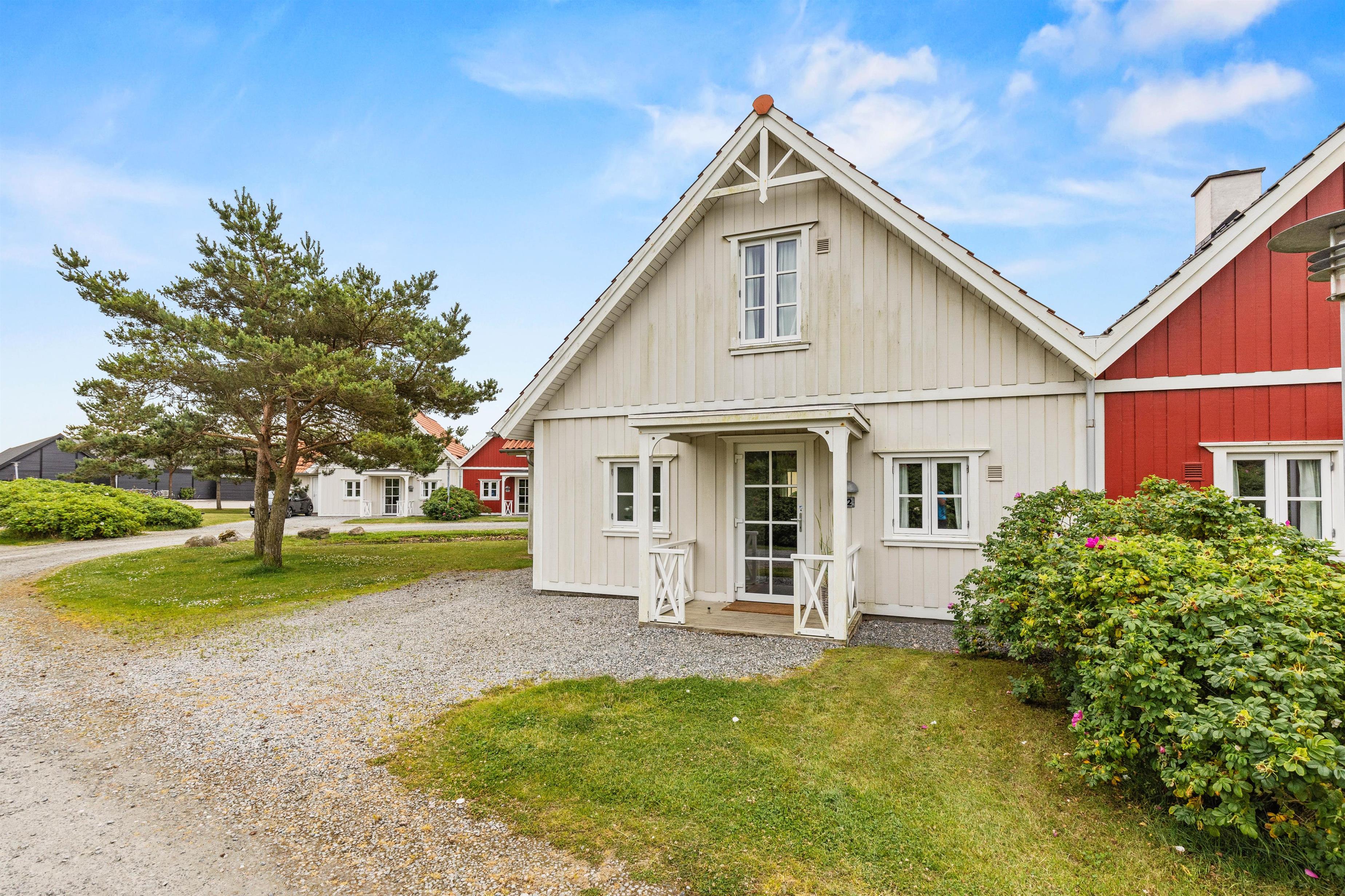 The holiday home enjoys an excellent address at Horns Bjerge 3-52. Situated at the end of a row of houses, you can park directly at your home away from home.