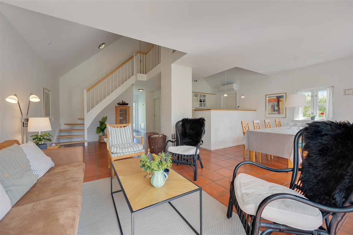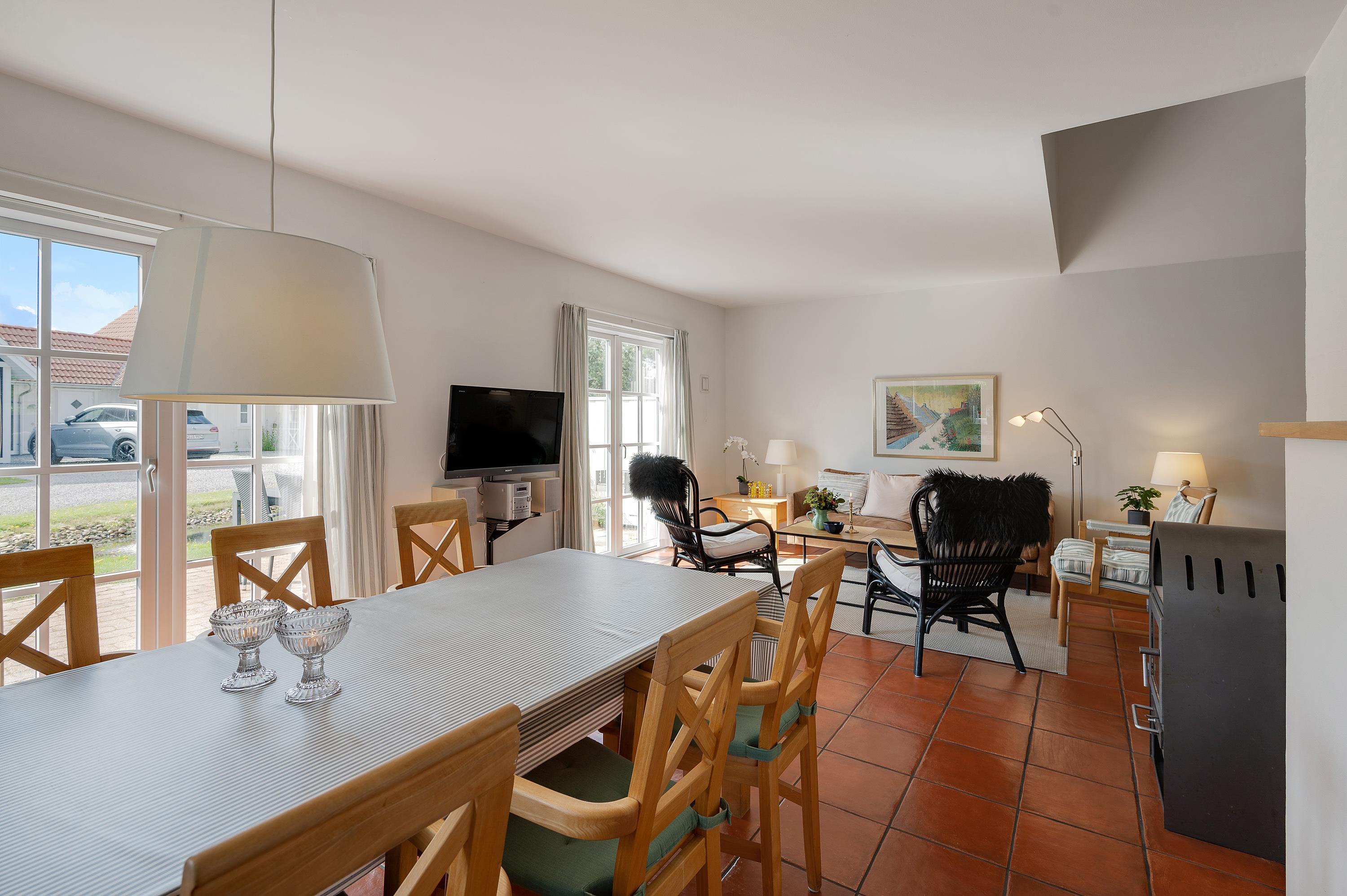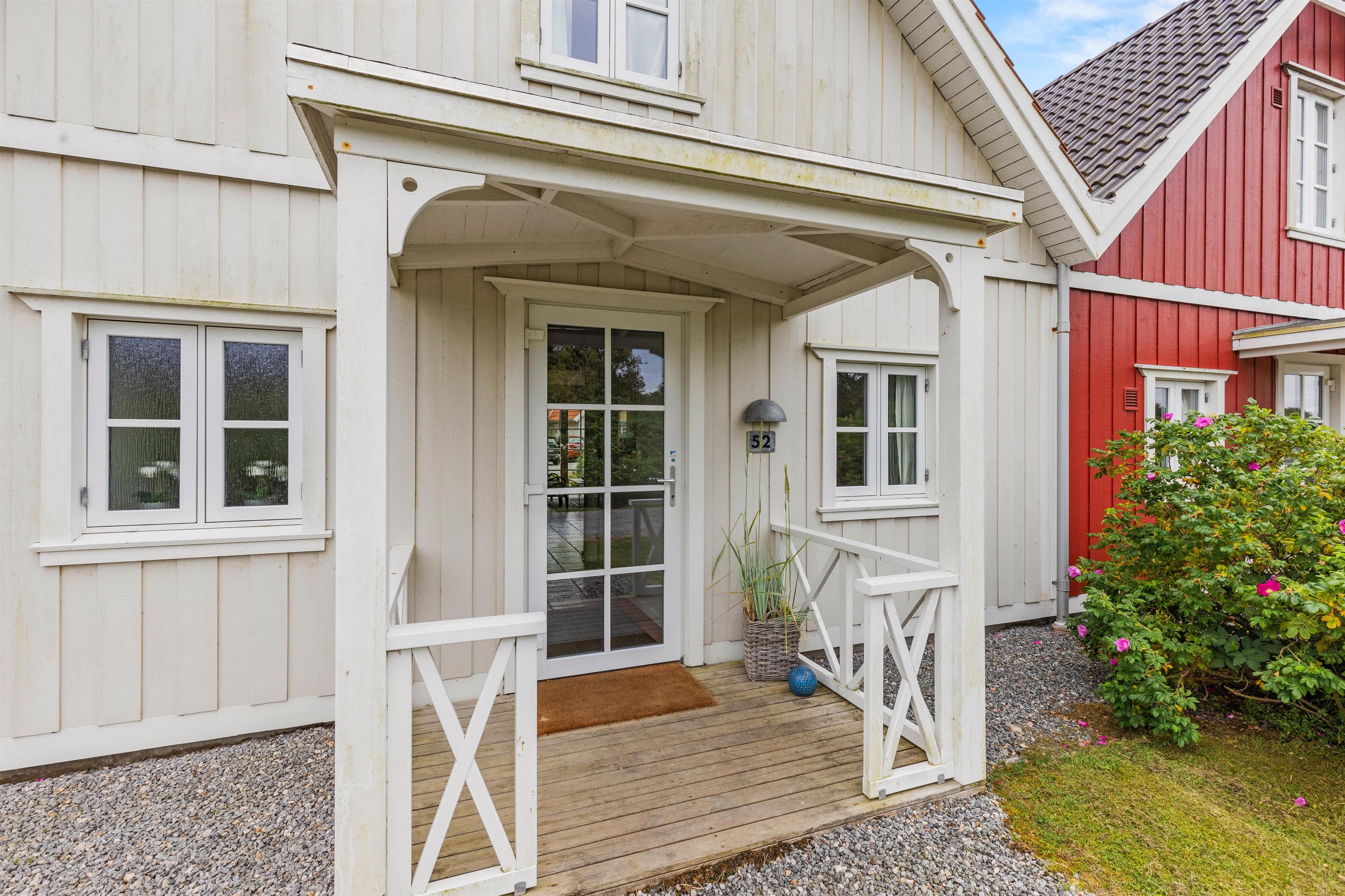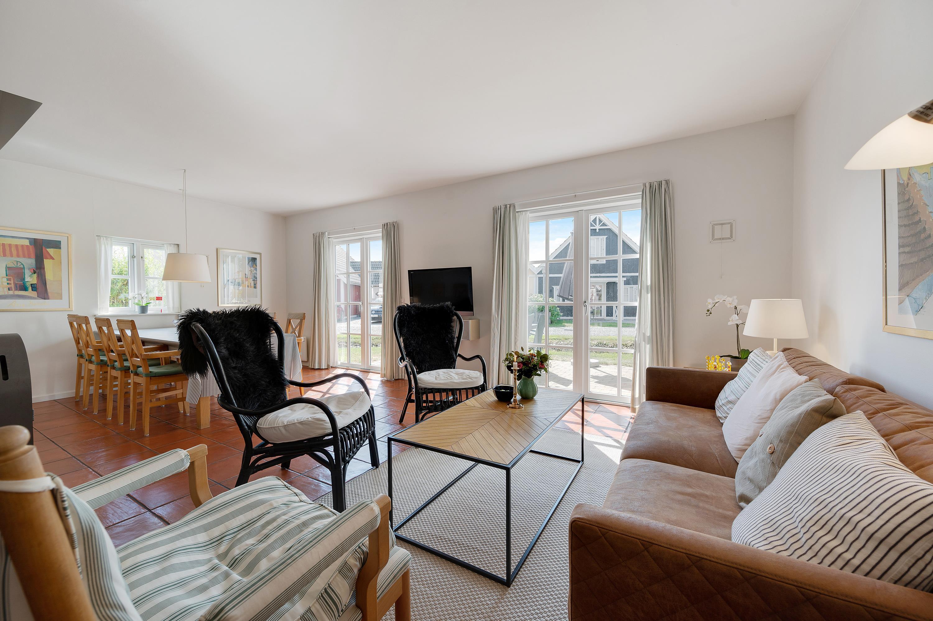 The holiday home enjoys an excellent address at Horns Bjerge 3-52. Situated at the end of a row of houses, you can park directly at your home away from home.