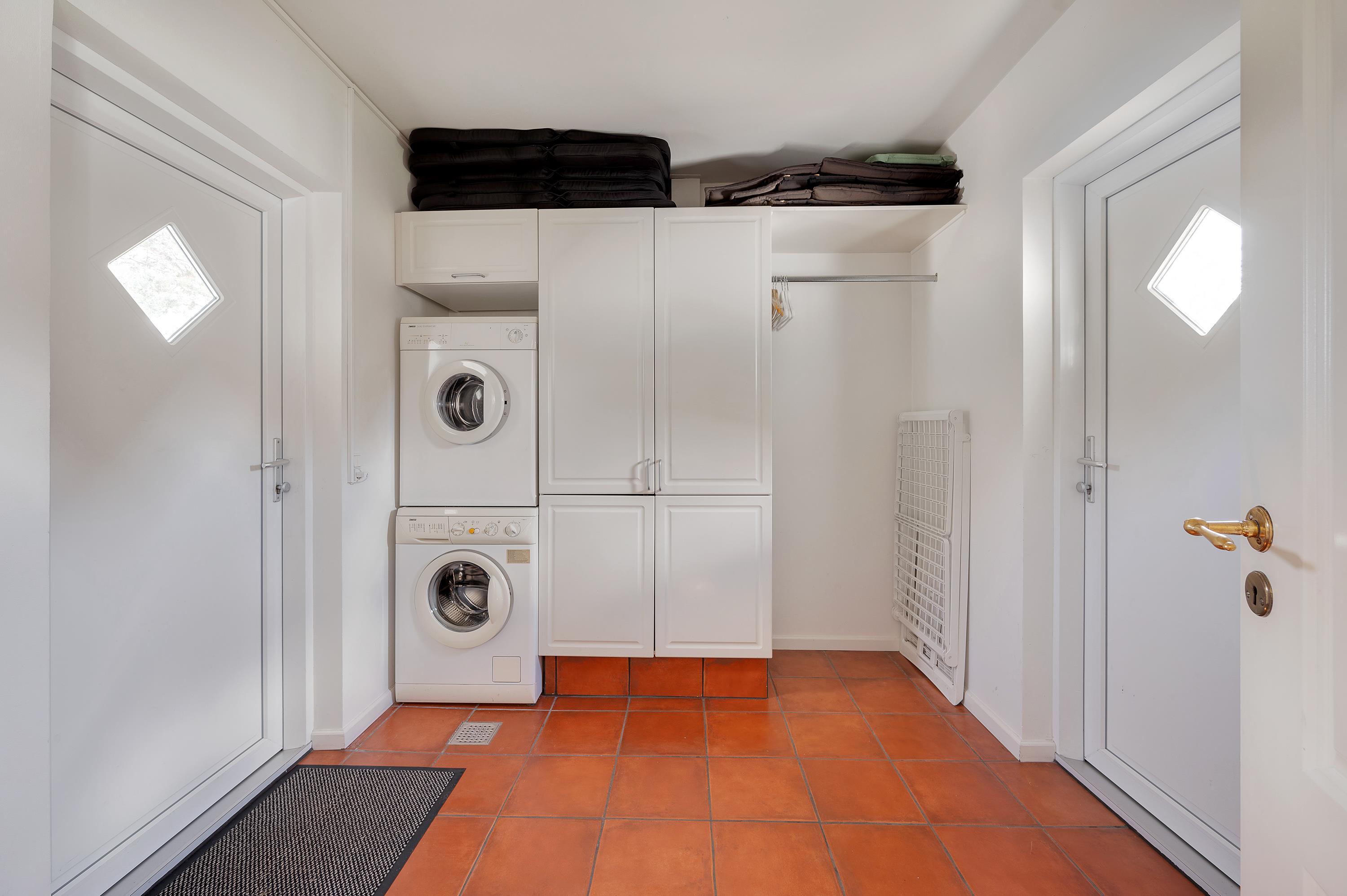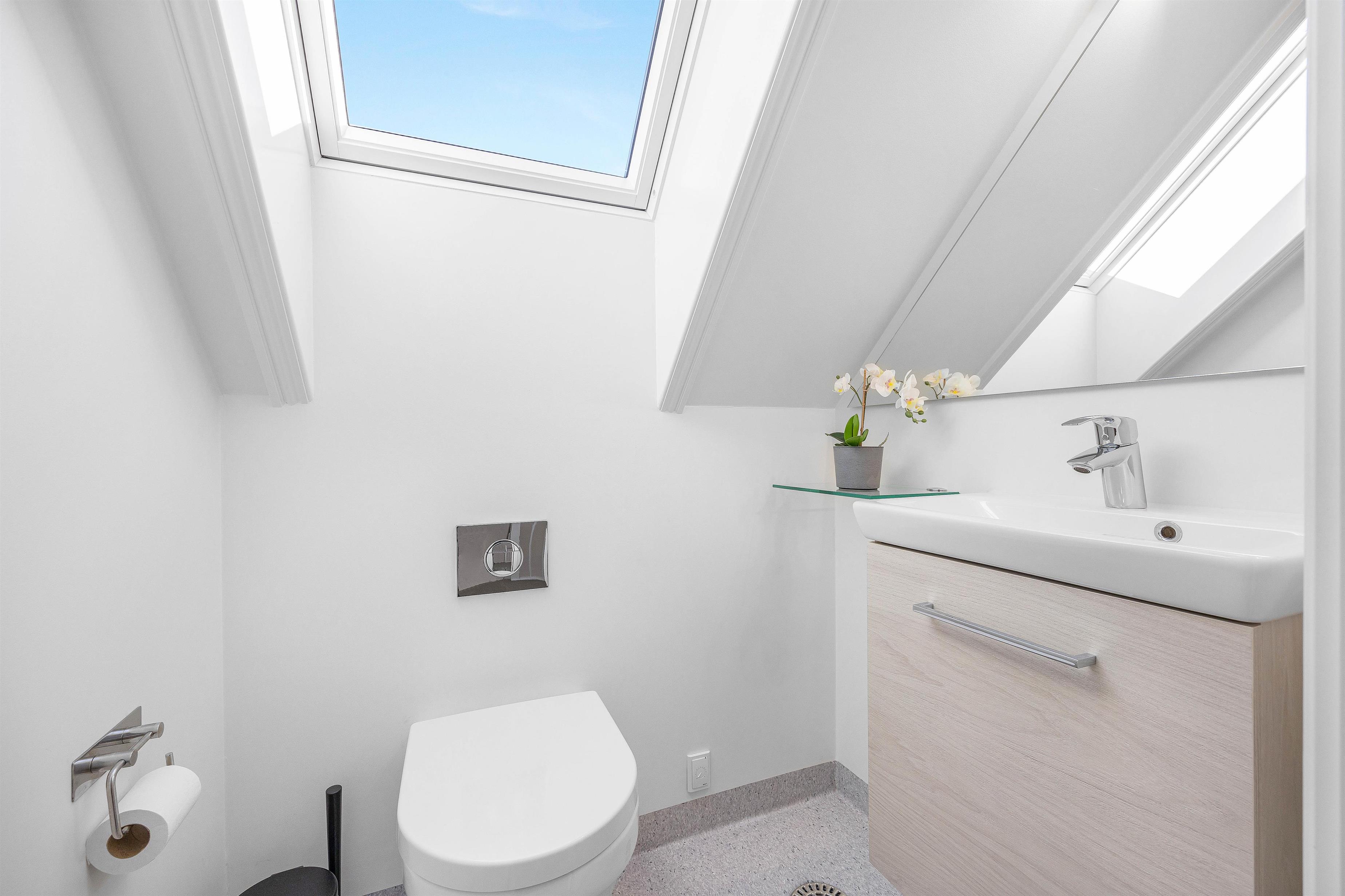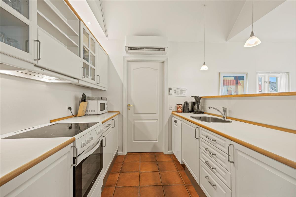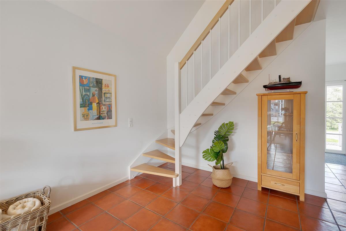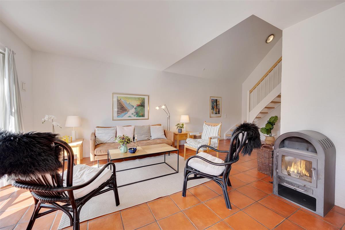 The holiday home enjoys an excellent address at Horns Bjerge 3-52. Situated at the end of a row of houses, you can park directly at your home away from home.