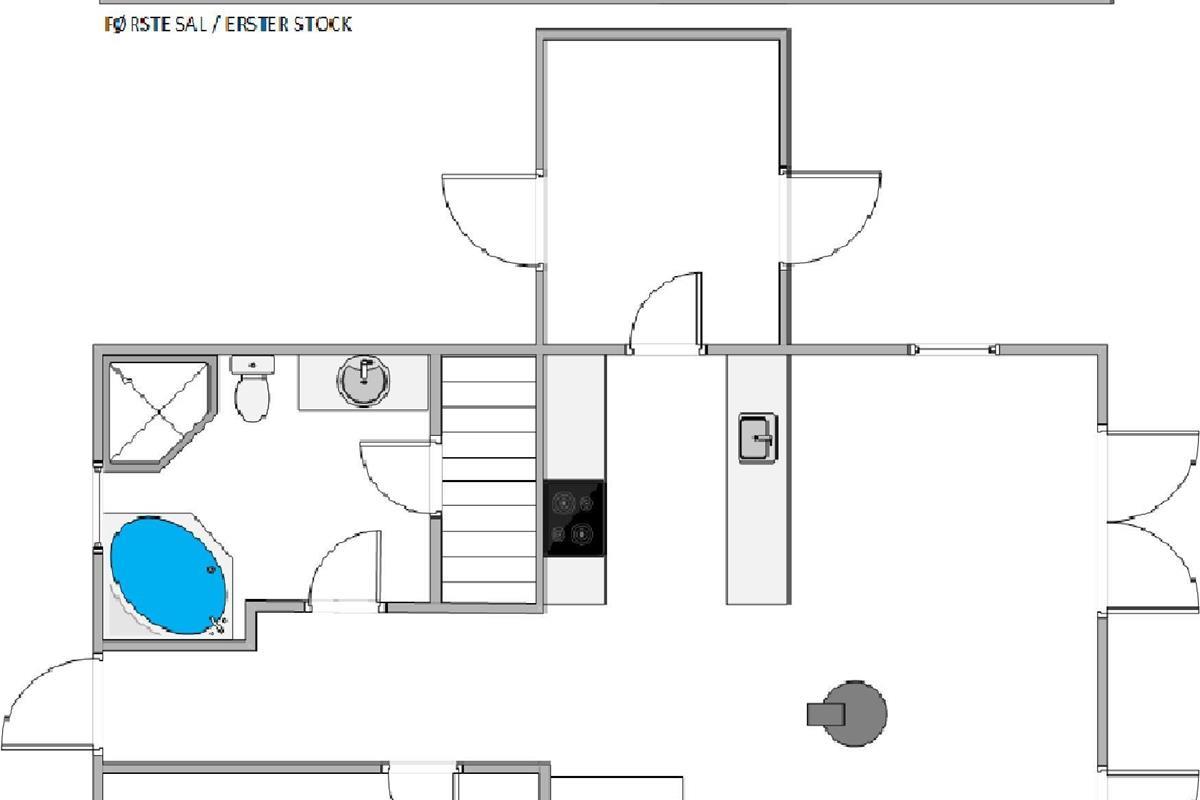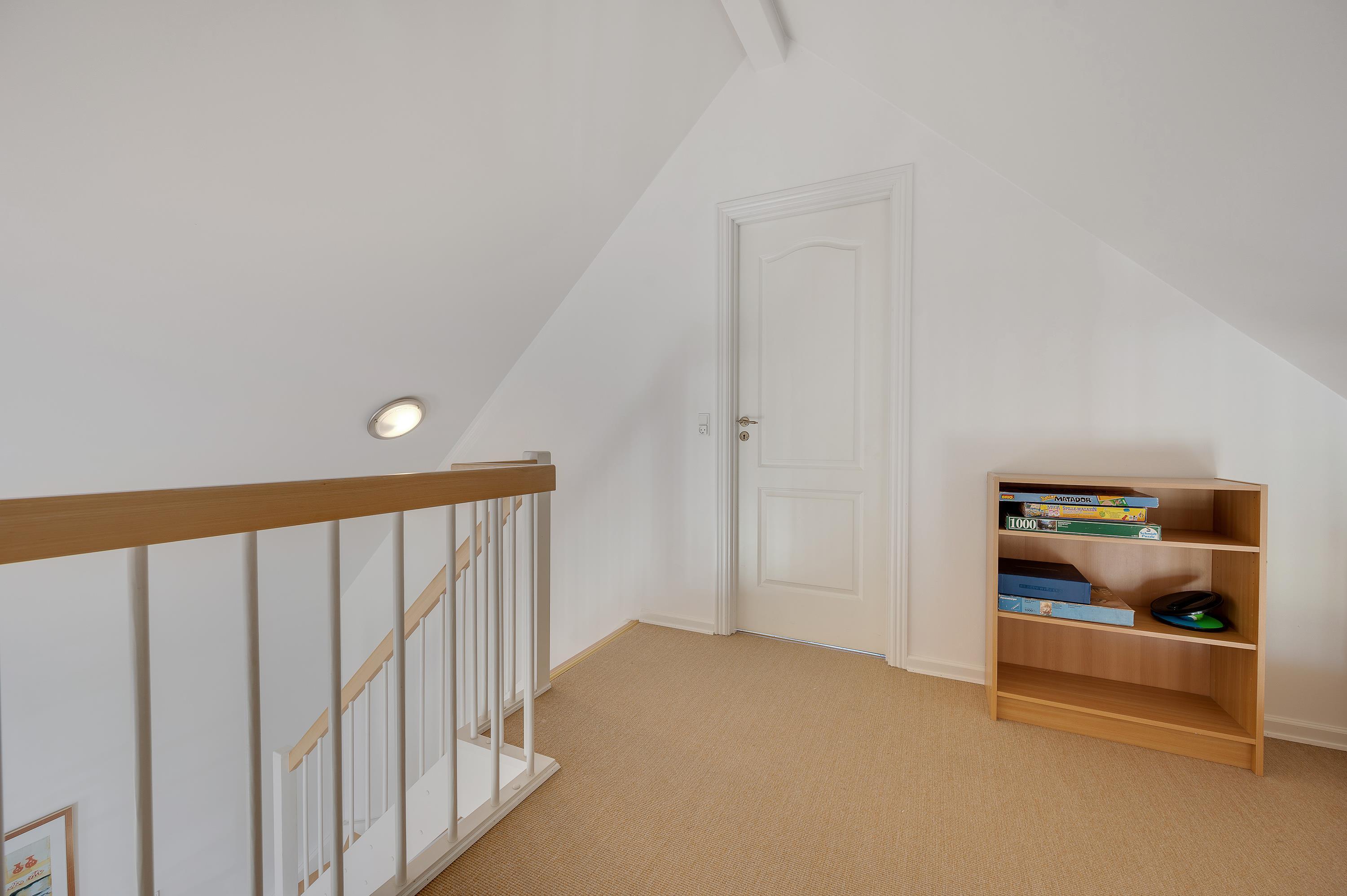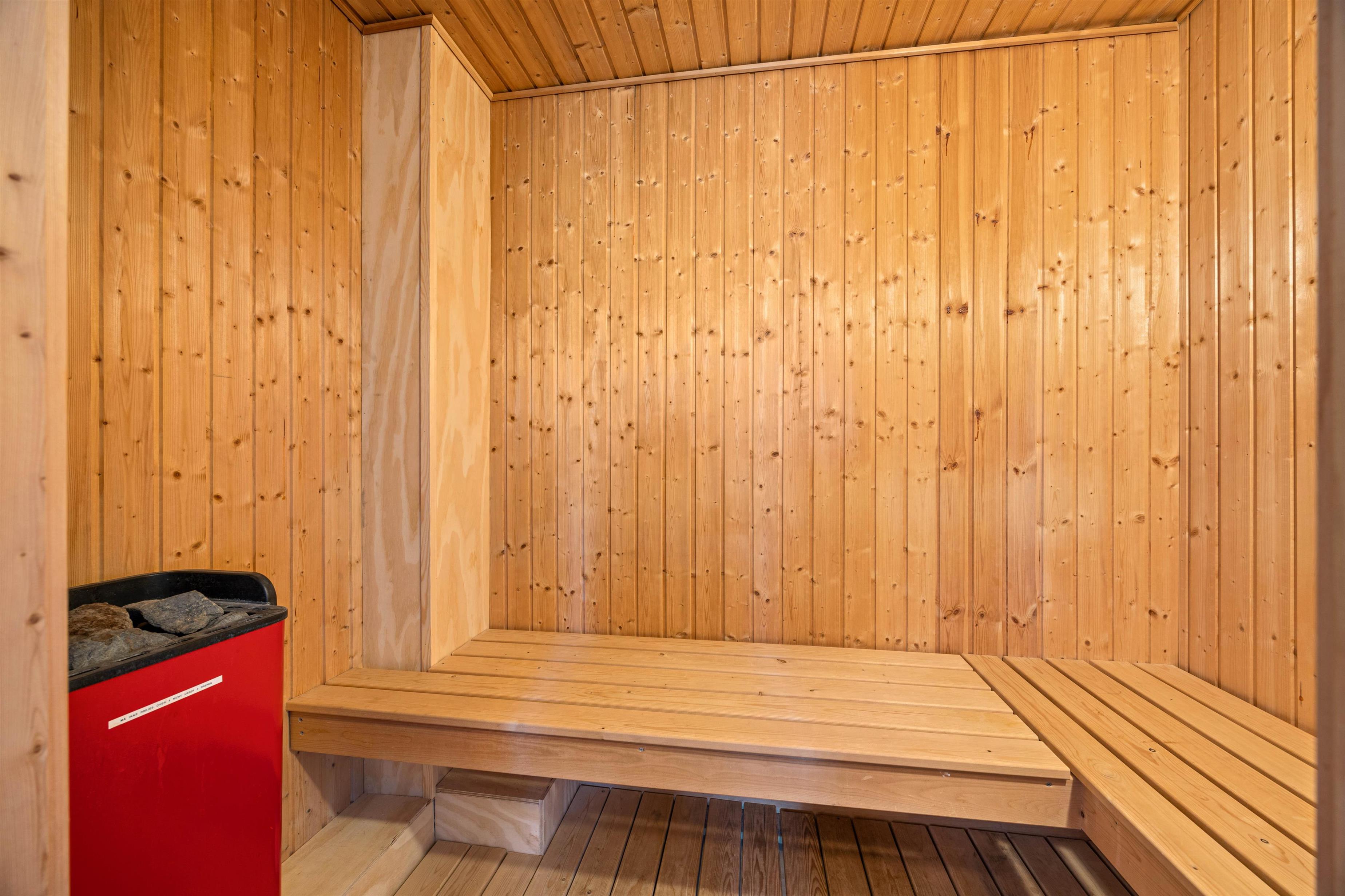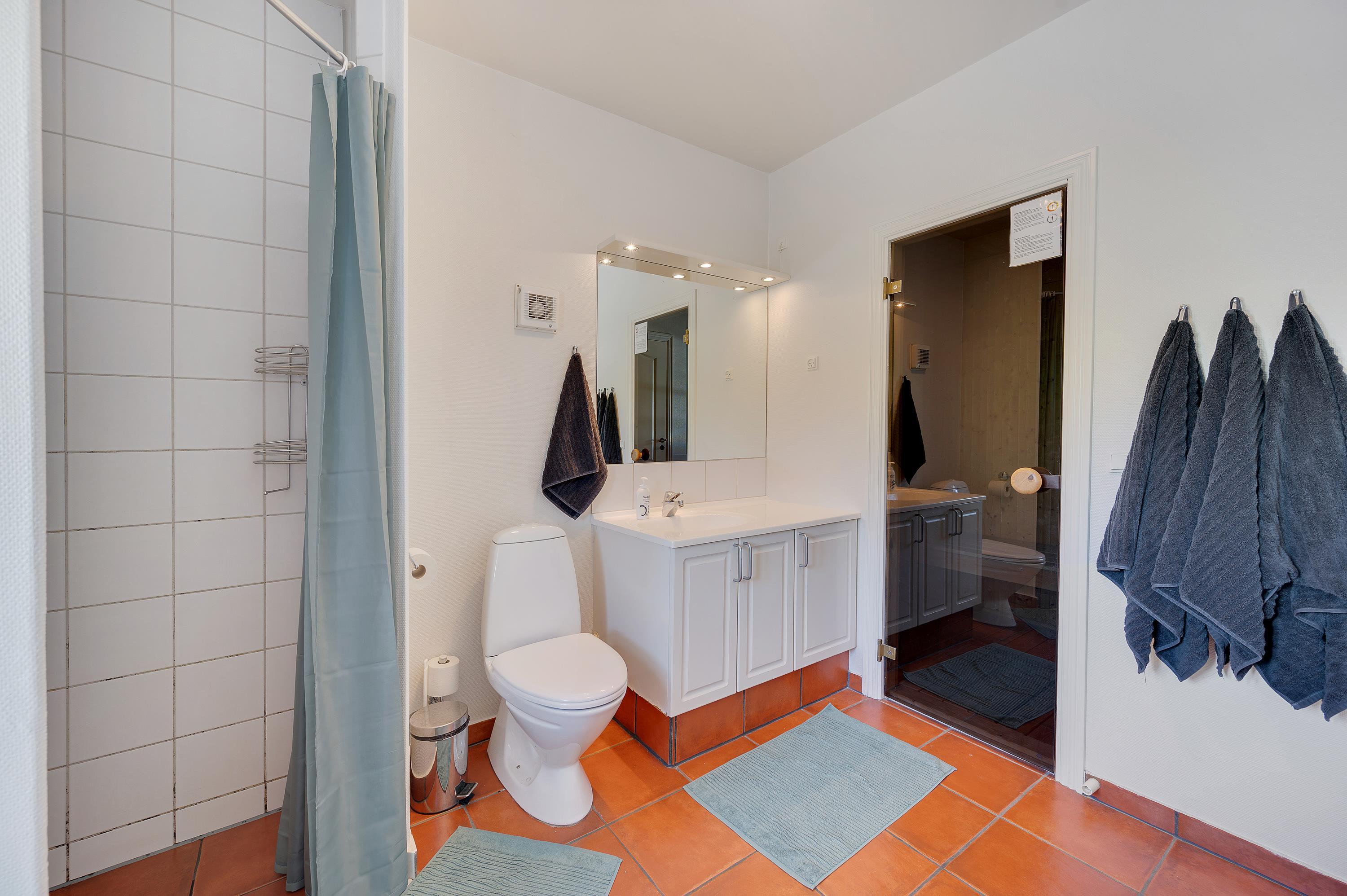 The ground floor features a comfortably furnished bedroom and a spacious bathroom with underfloor heating and whirlpool. The sauna is perfect for warming up whenever you fancy! Two additional double bedrooms and a guest toilet are located upstairs.