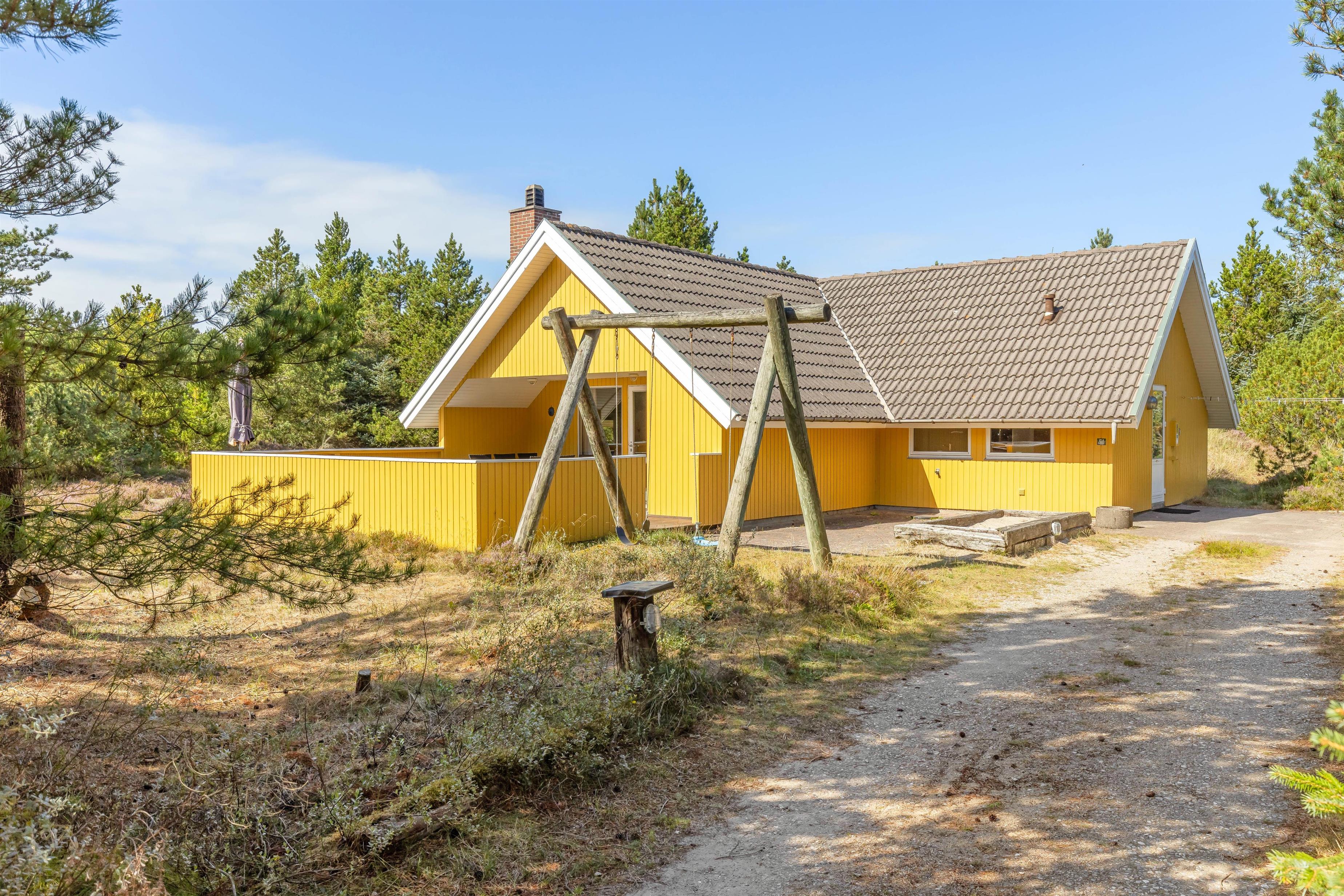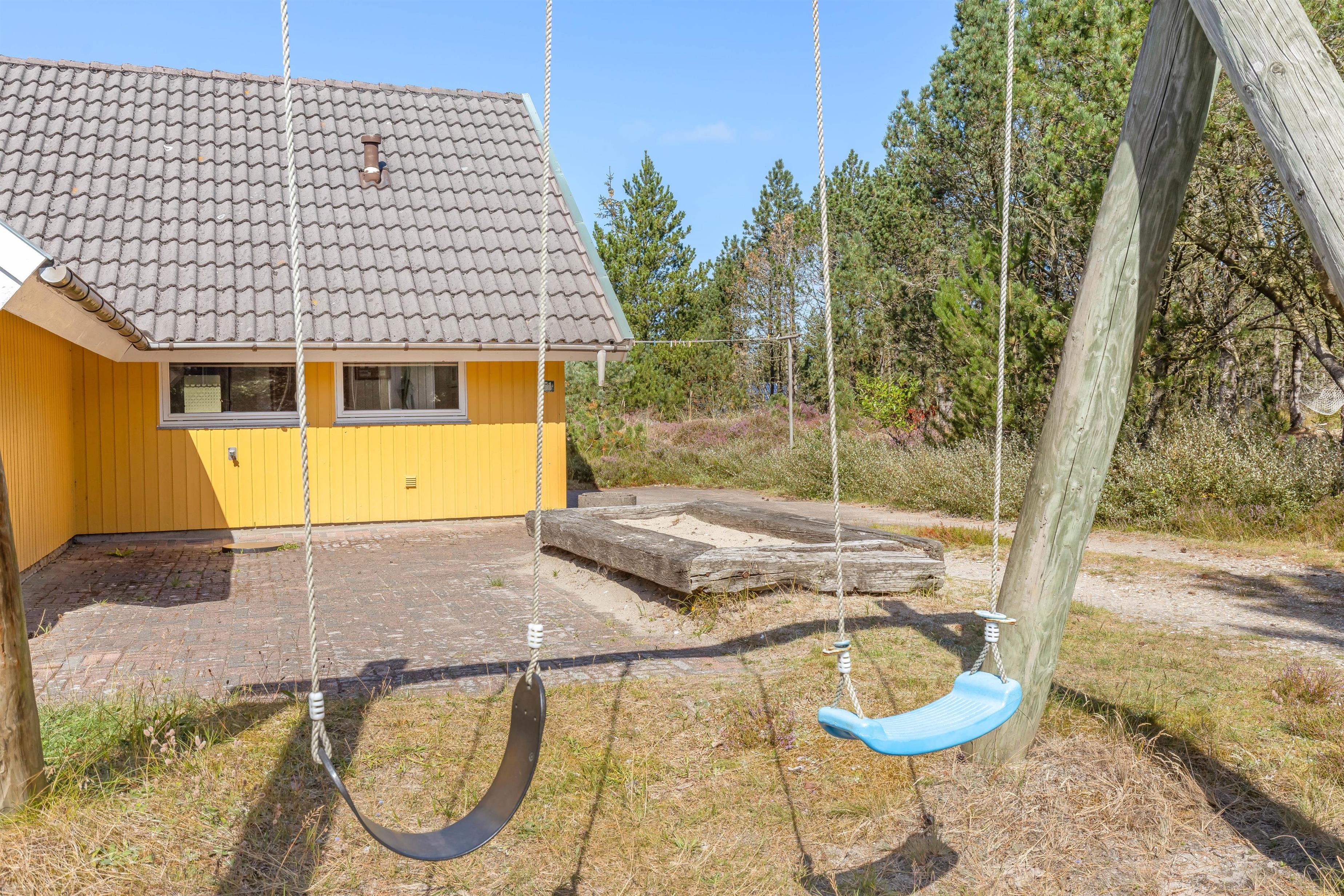 The natural plot spans 2,262 square metres, offering children plenty of space for outdoor play. While the little ones use up their remaining energy after a long beach day on the swing, you can relax on the sheltered sun terrace, enjoying the peace and privacy - perhaps with a refreshing drink?