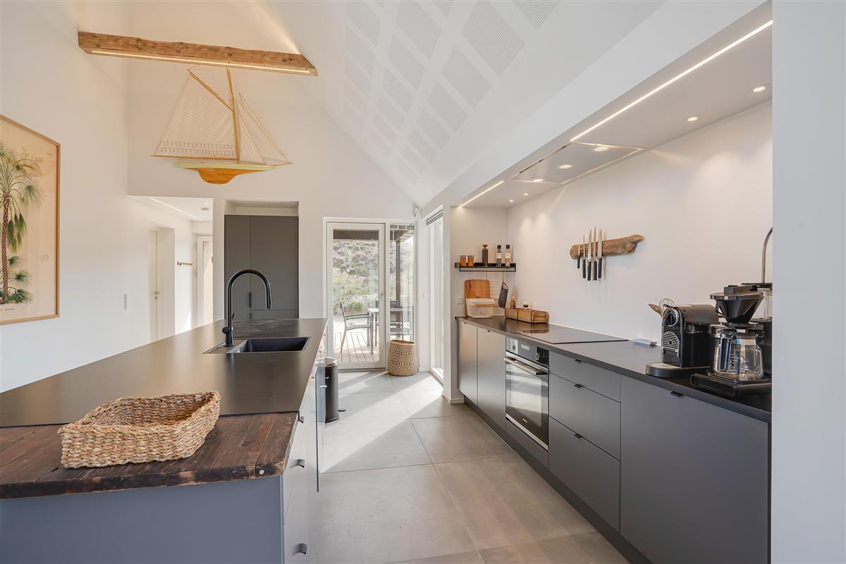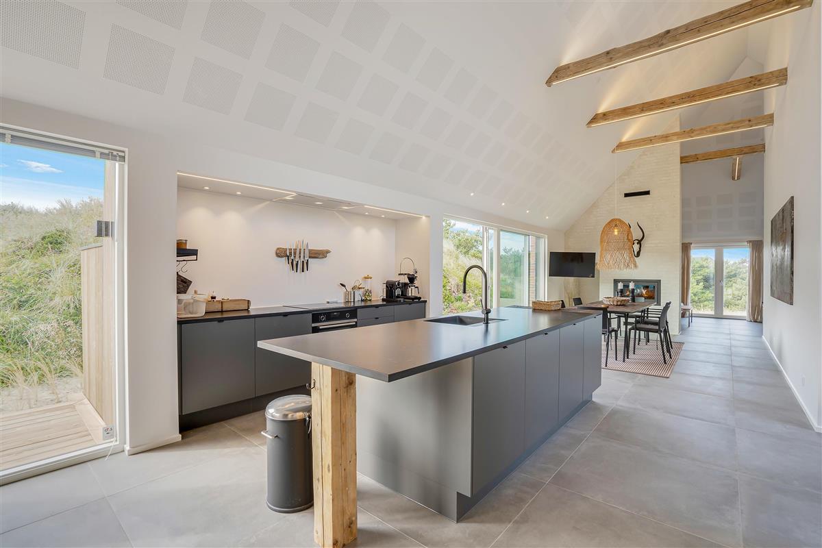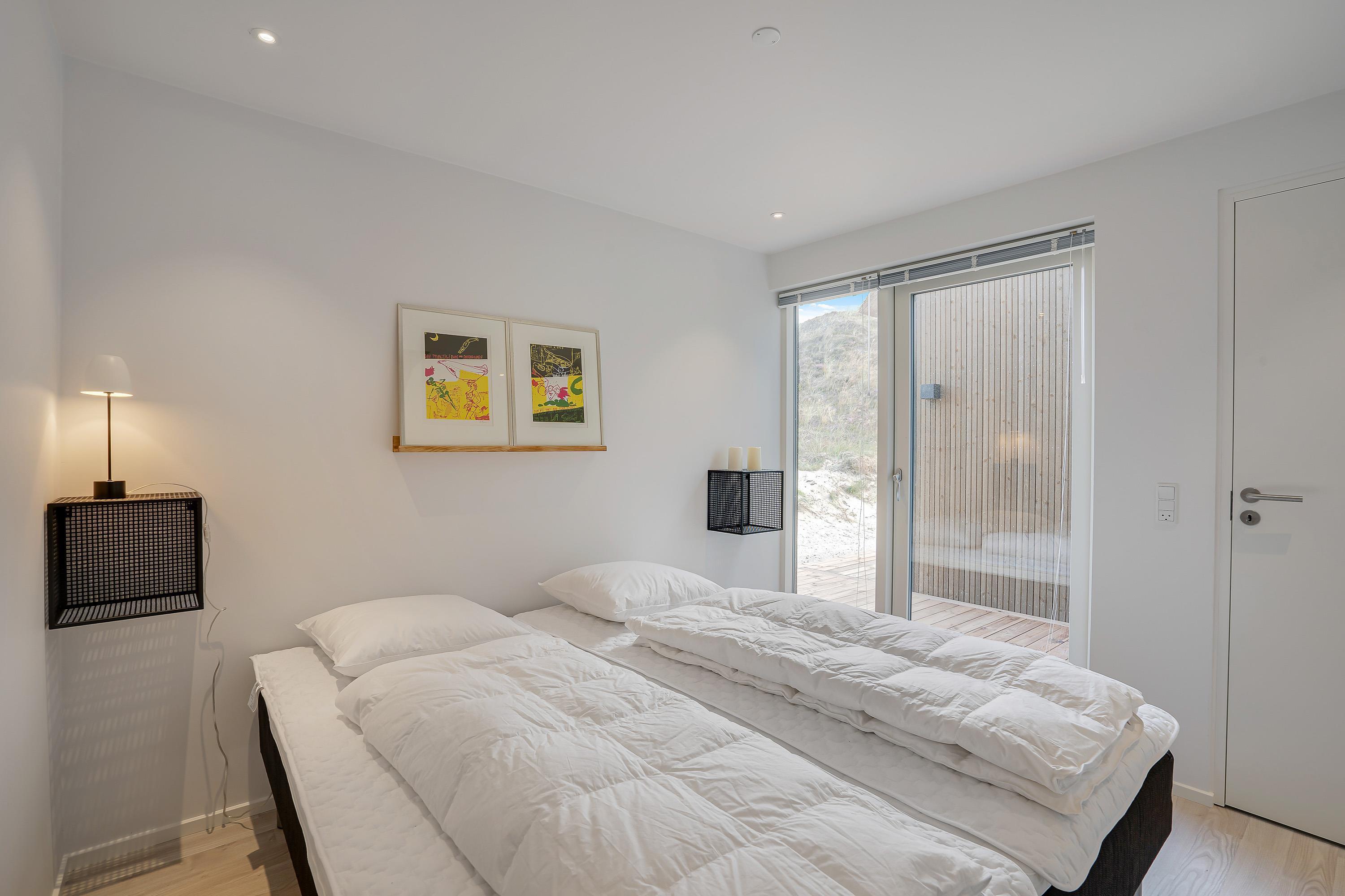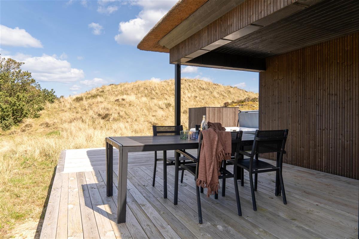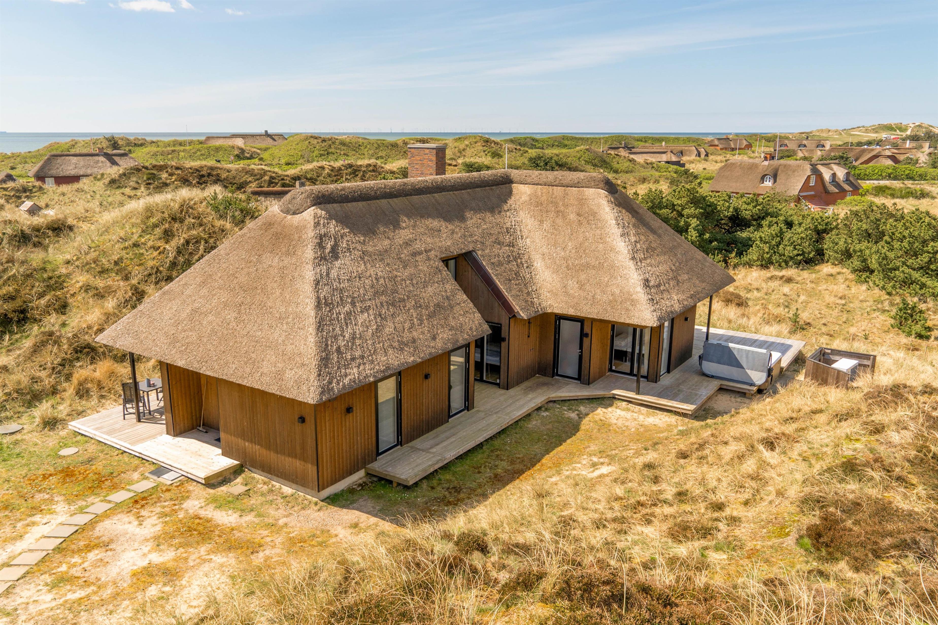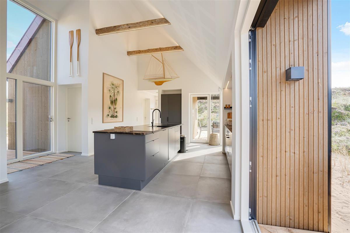 Just 200 metres from the white sandy beach and nestled within the dune landscape, this stylish luxury home at Klitvej 9 in Blåvand, built in 2021, awaits you. Set amongst the dunes with views of the Blåvandshuk lighthouse, this holiday home is in a class of its own. The construction carefully considered the dune landscape, with a dune between the house and its parking spaces that needs to be crossed - adding an exclamation mark to the fascinating location and special character of this holiday home.