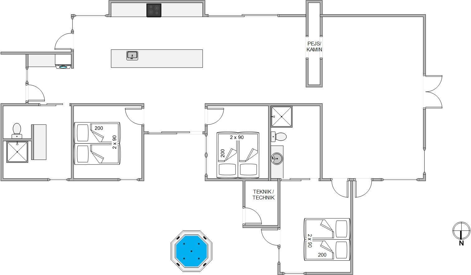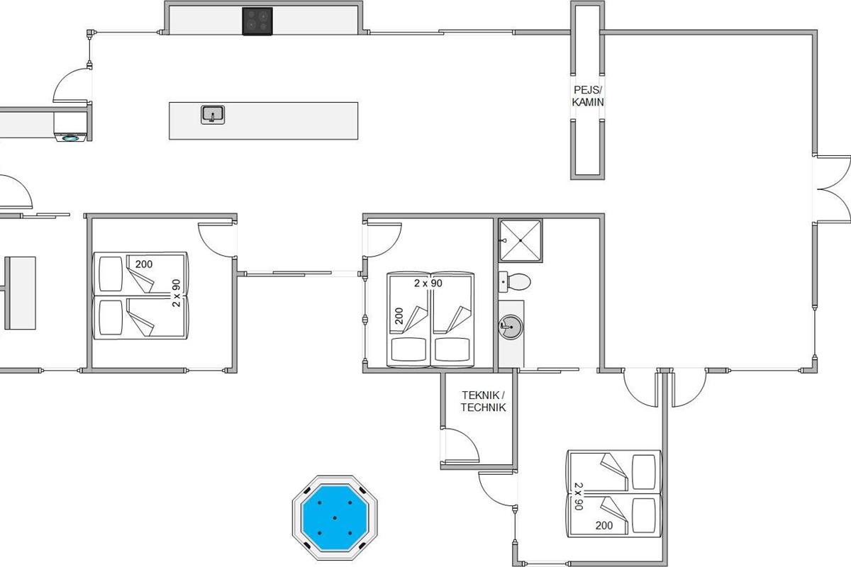 The holiday home is peacefully situated in a cul-de-sac, boasting a prime location near the Blåvandshuk lighthouse. The child-friendly beach is just 200 metres away, while Blåvand's centre is 1.1 miles (1,800 metres) away.