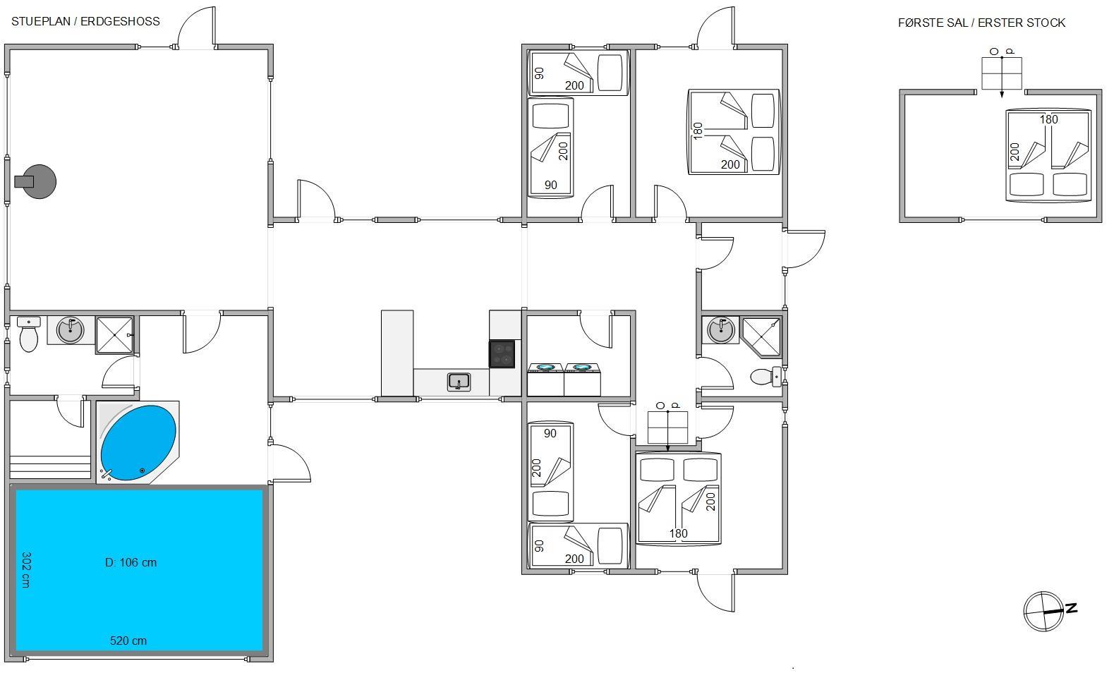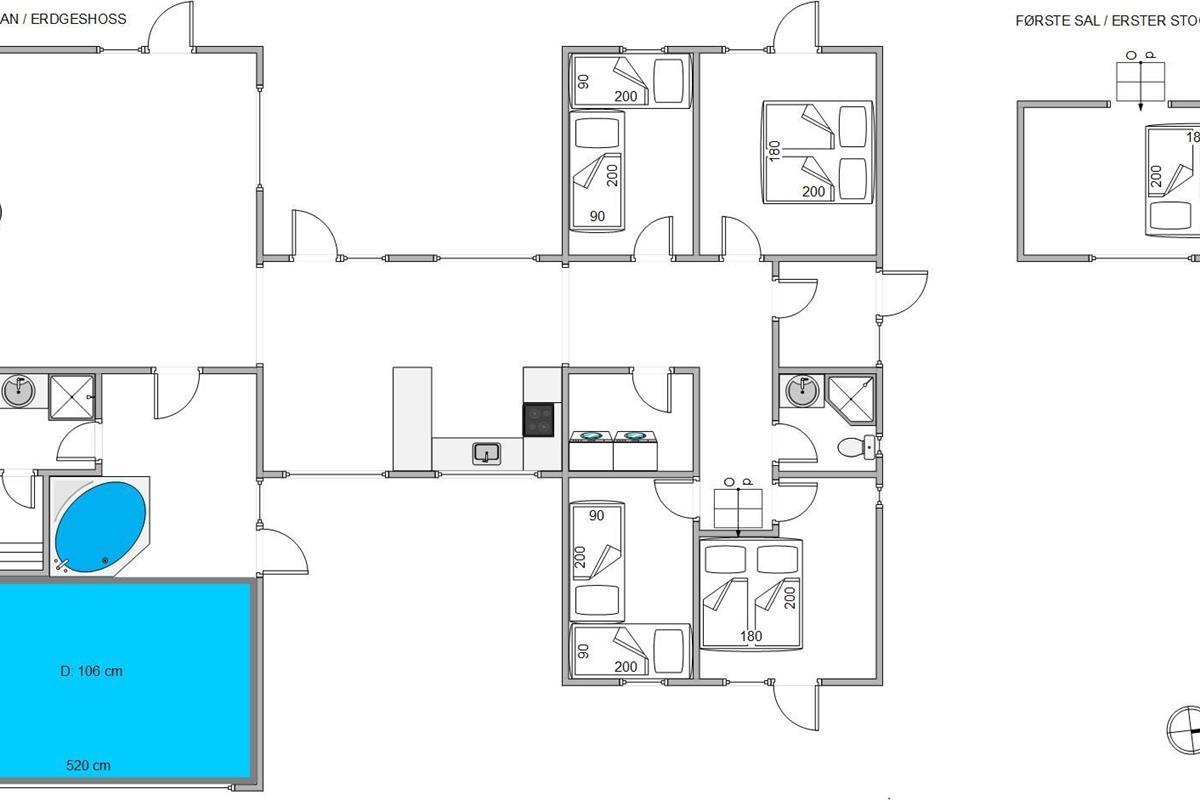 The holiday home's highlight is its private swimming pool. After a long day at the beach or an autumn walk, you can warm up in the sauna or hot tub, relax your muscles and unwind while the children splash in the pool.