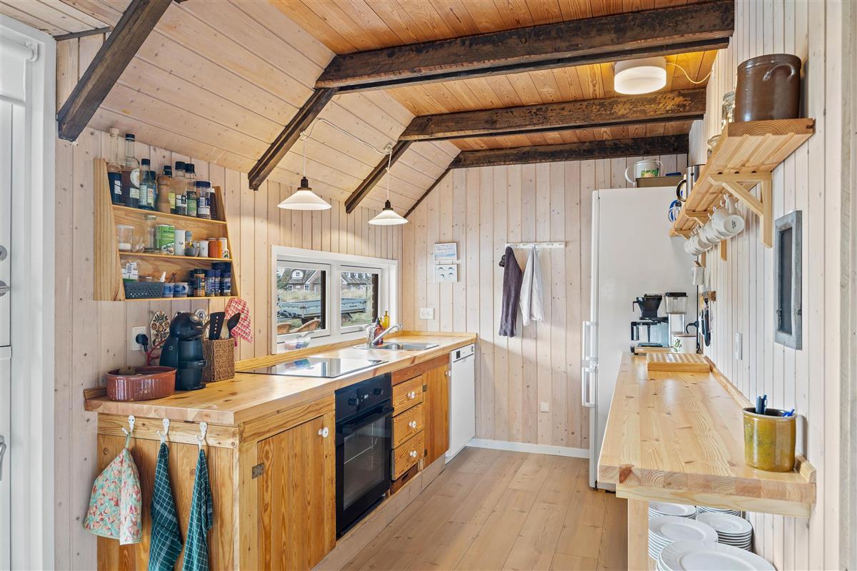 "Hygge" - the Danish art of cosy living - is the theme of this thatched roof house at Fyrvej 56, partially renovated in 2022/2023. You'll feel at home the moment you arrive. The 150 square metres of living space is spread across two floors. The ground floor is perfect for spending time together, with exposed roof beams creating a special atmosphere in the living area. Make yourself comfortable on the sofa by the crackling wood-burning stove and enjoy your Danish holiday with movie nights or board games. The first floor also offers cosy seating areas, including a sofa corner with a flat-screen TV - perfect for moments of quiet relaxation.
