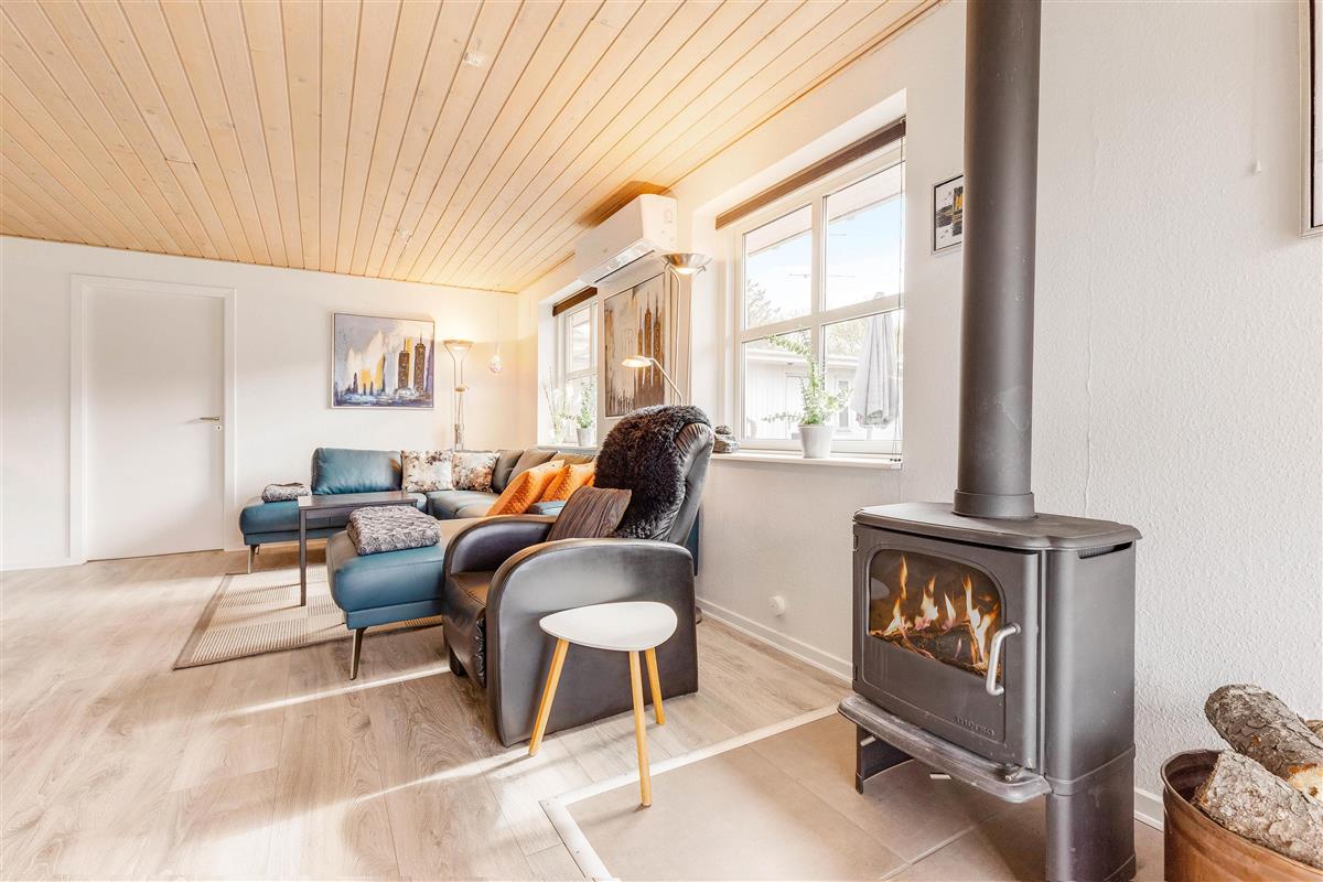 After a long day in the fresh North Sea air, gather around the crackling wood-burning stove, which spreads a cosy warmth throughout. The comfortable seating invites you to linger and relax.
