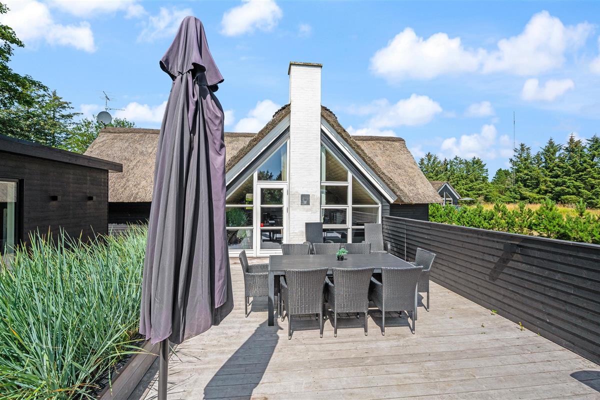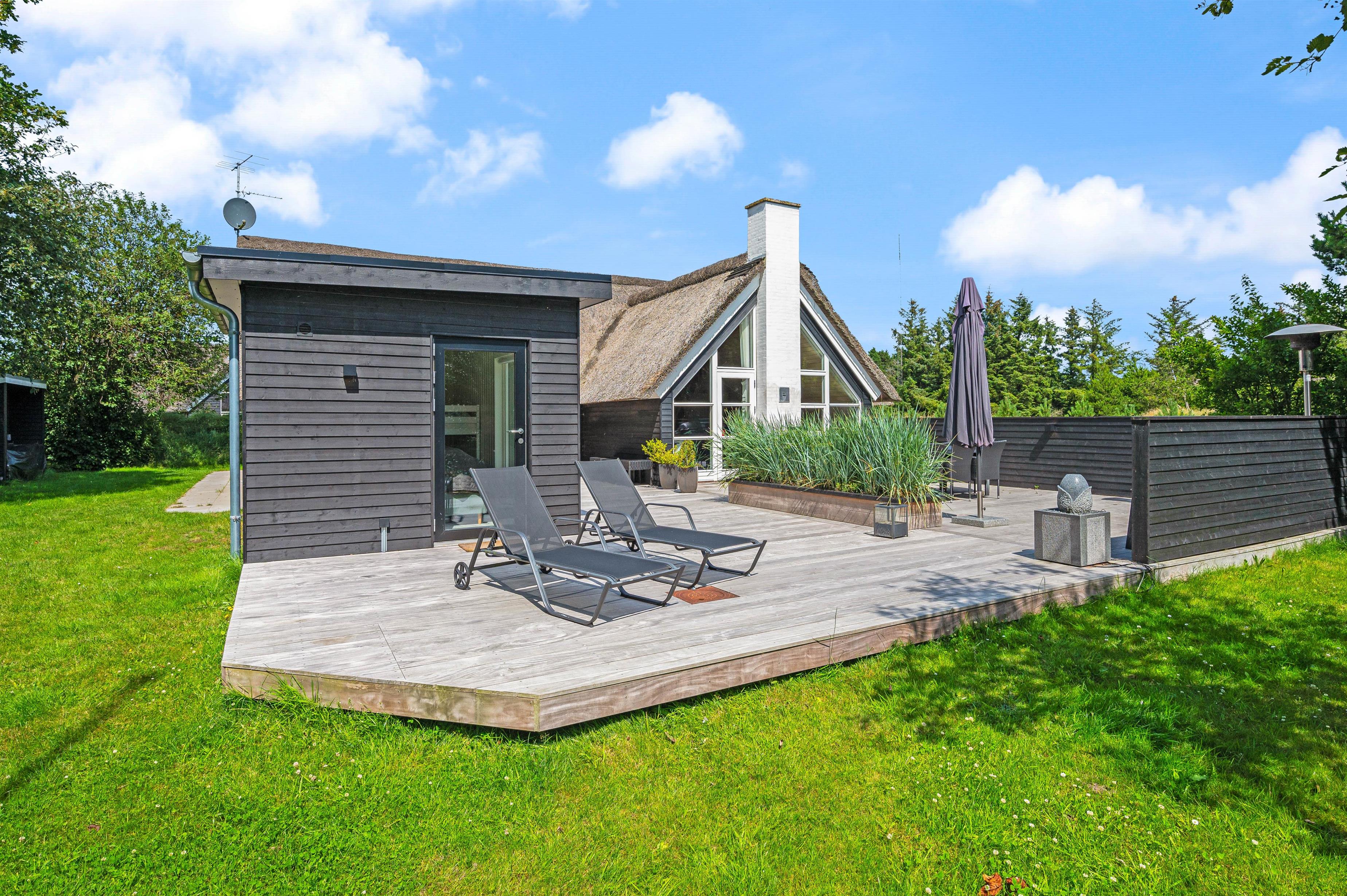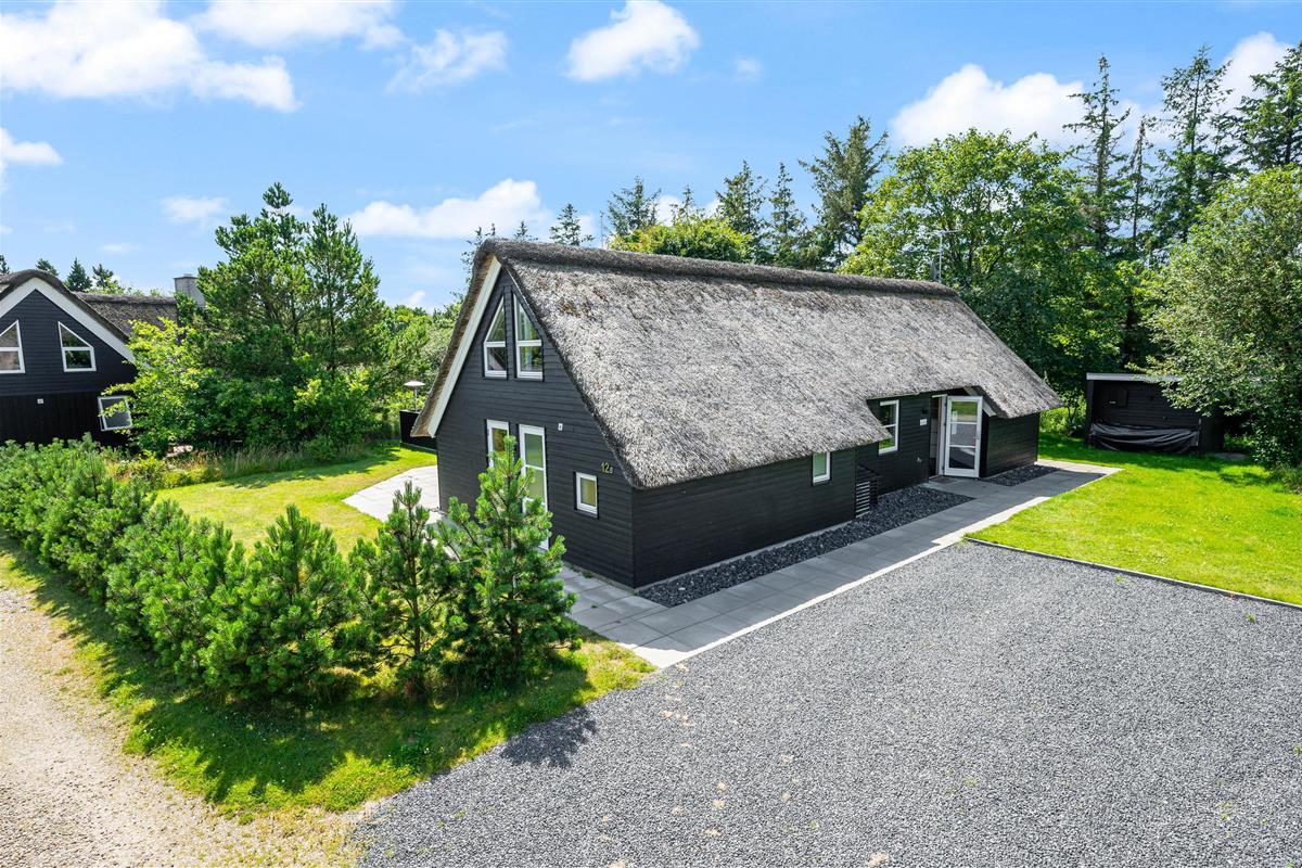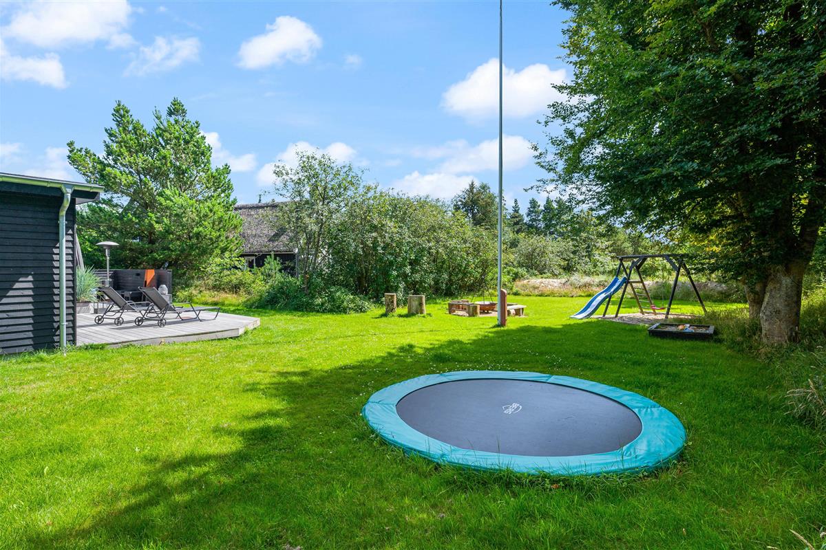 Located at Hestehaven 12B, this modern thatched holiday home accommodates up to 8 people. You'll feel instantly at home in this distinctive atmosphere with high, converted roof spaces and stylish furnishings. Both young and older guests will find plenty to enjoy, with swings and a trampoline in the garden, plus a sauna and whirlpool inside. The perfect holiday home for families with children.