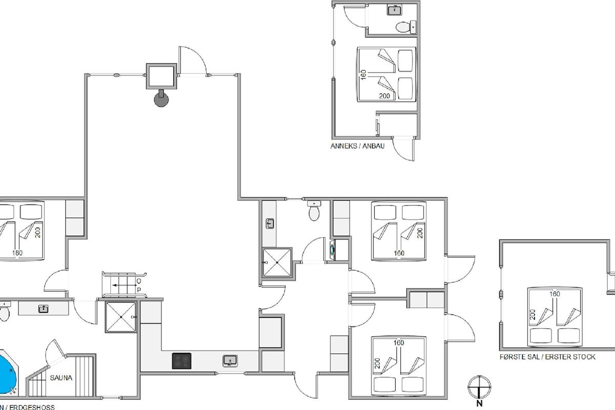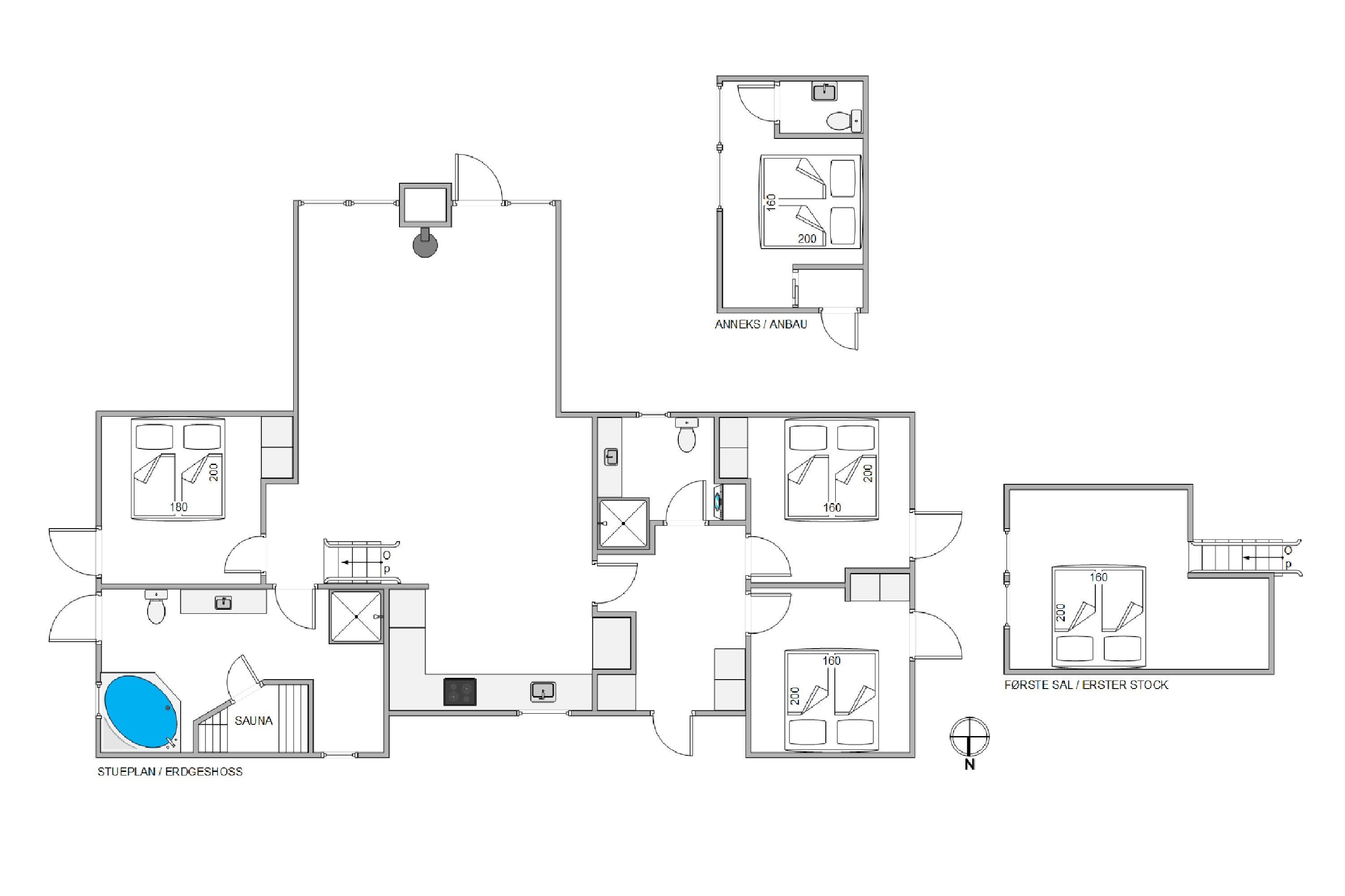 The other two bathrooms each feature a shower enclosure and underfloor heating, while the main bathroom includes the whirlpool and sauna. Here you can truly relax and pamper yourself.