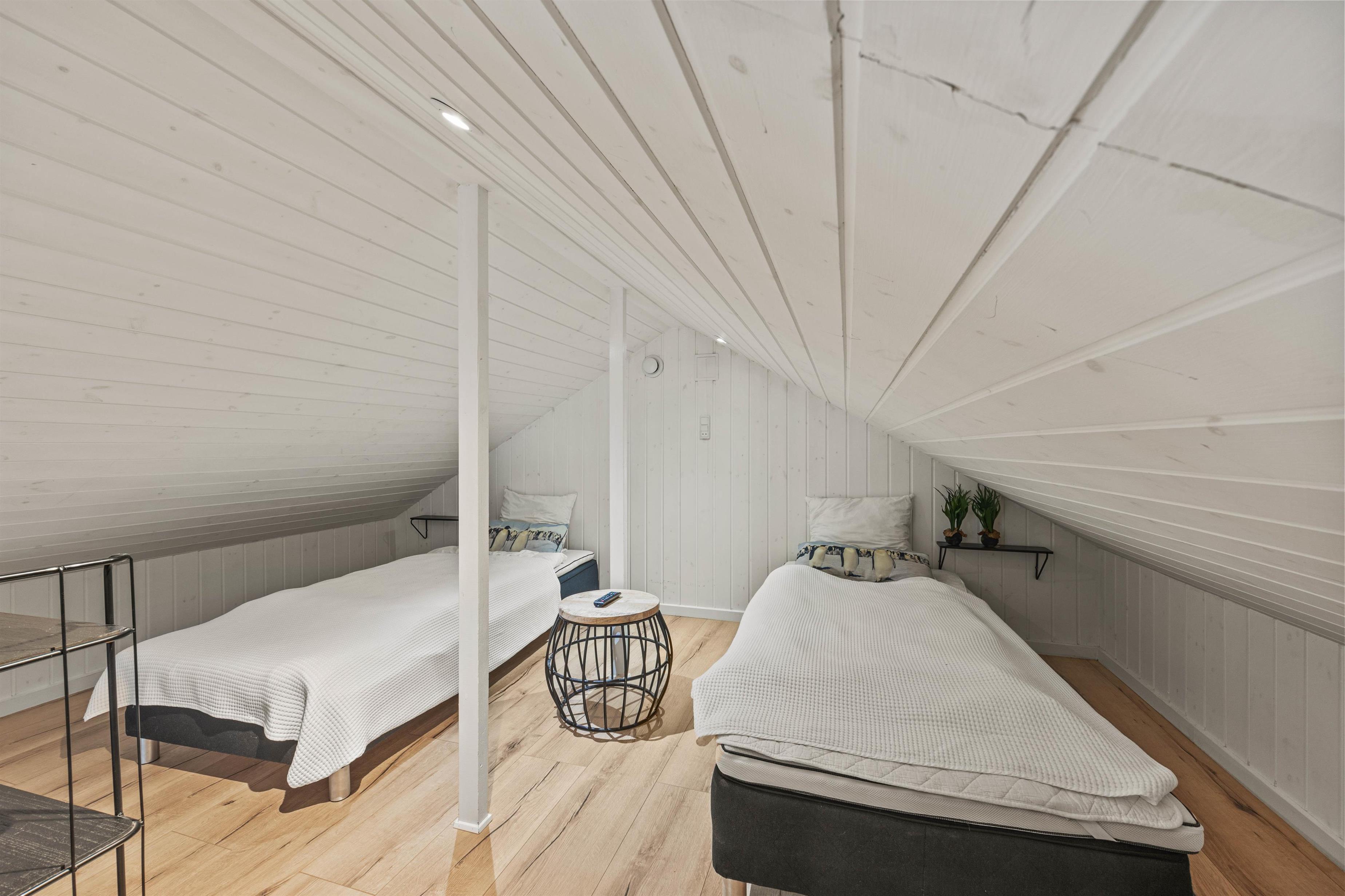 Those who appreciate Nordic style with beautiful wood features and stunning tiles will feel at home here. The bathrooms are particularly cosy with underfloor heating. The house sleeps 10 people across four bedrooms, with adjustable double beds, plus two single beds in the loft area.