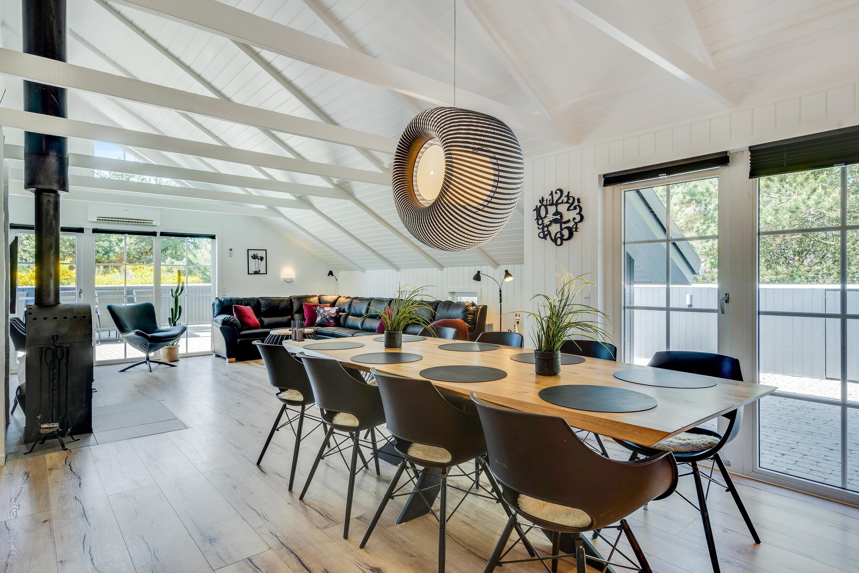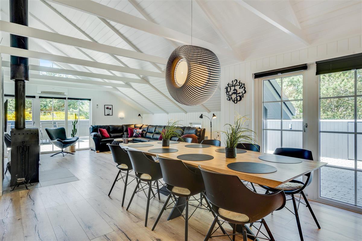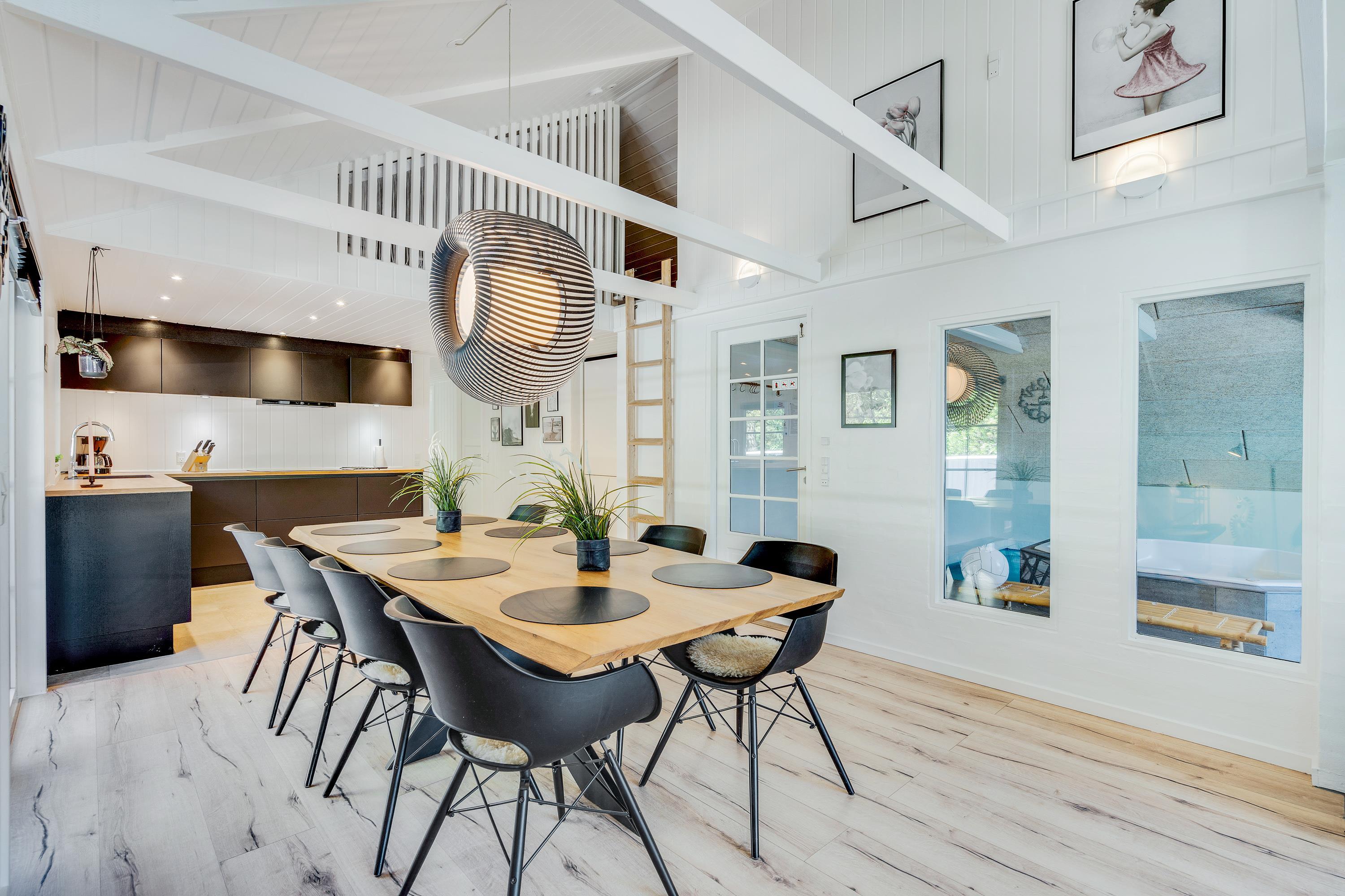 This beautiful, renovated (2018) holiday home is located on the outskirts of Blåvand at Tane Hedevej 35B. Situated near fields and forests, this spacious holiday home features a swimming pool, hot tub and outdoor sauna. It's perfect for a large family or two families wanting to enjoy a holiday together in Blåvand.