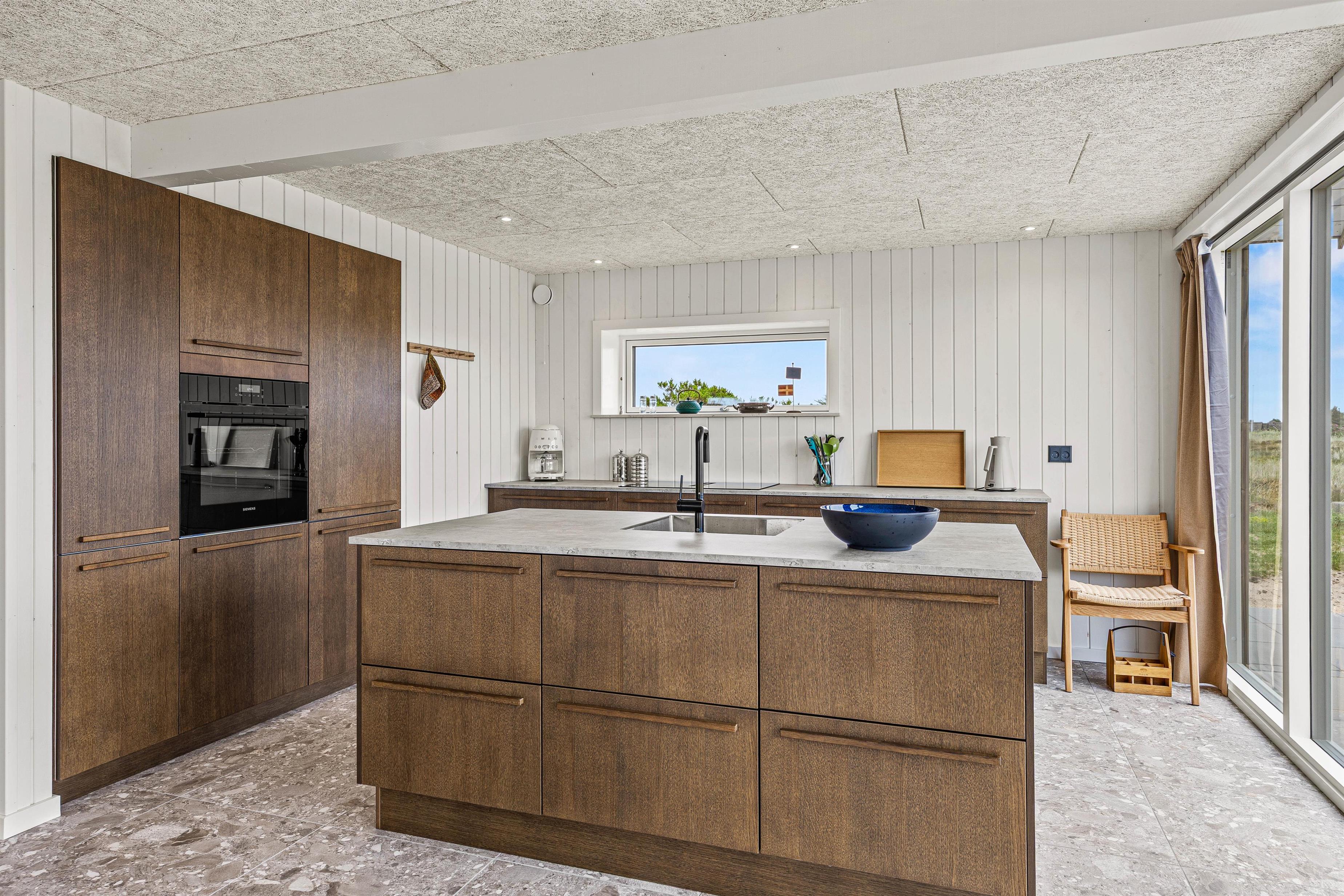Discover this perfectly situated holiday home in Blåvand, located at Lille Strandvej 9. This modern summer house, built in 2025, offers a generous 171 square metres of living space accommodating up to 6 people. Enjoy the comfort of 2 bathrooms featuring underfloor heating and an innovative air-to-water heat pump.