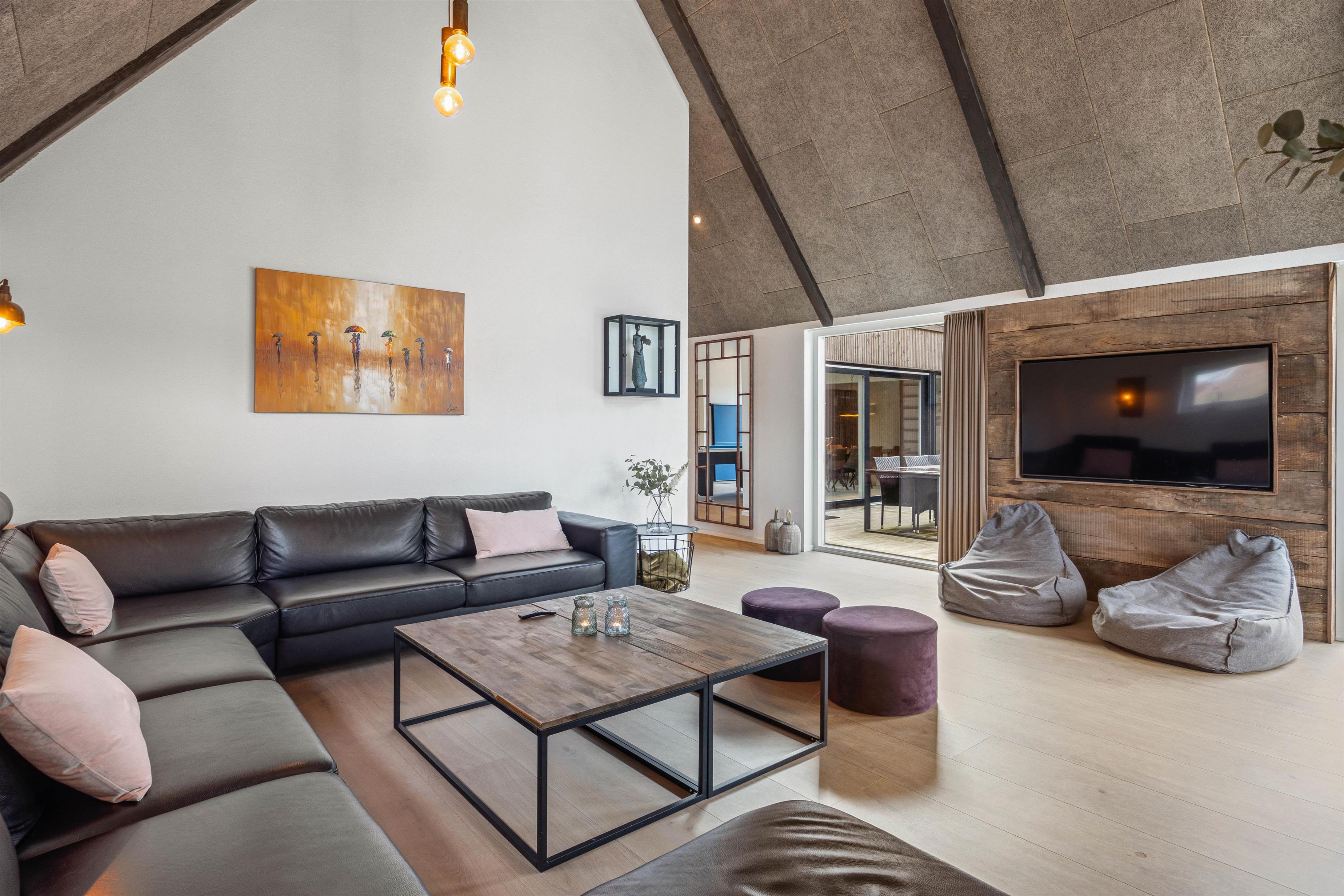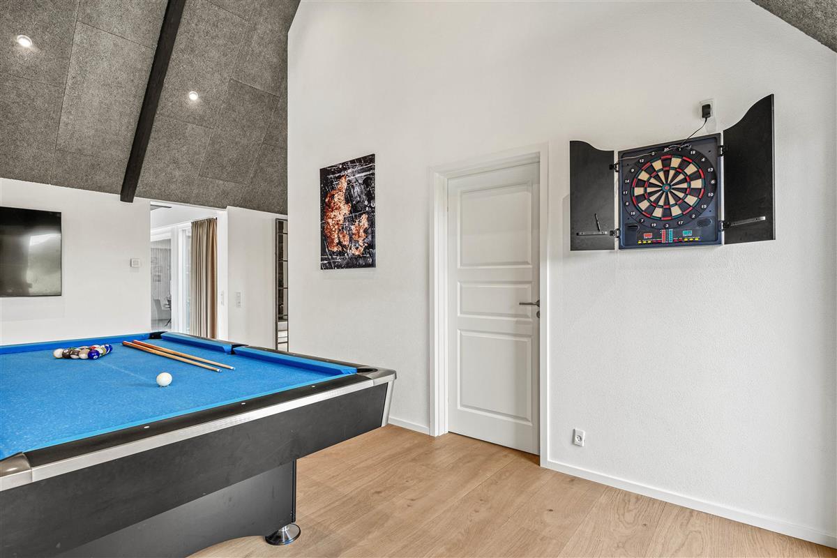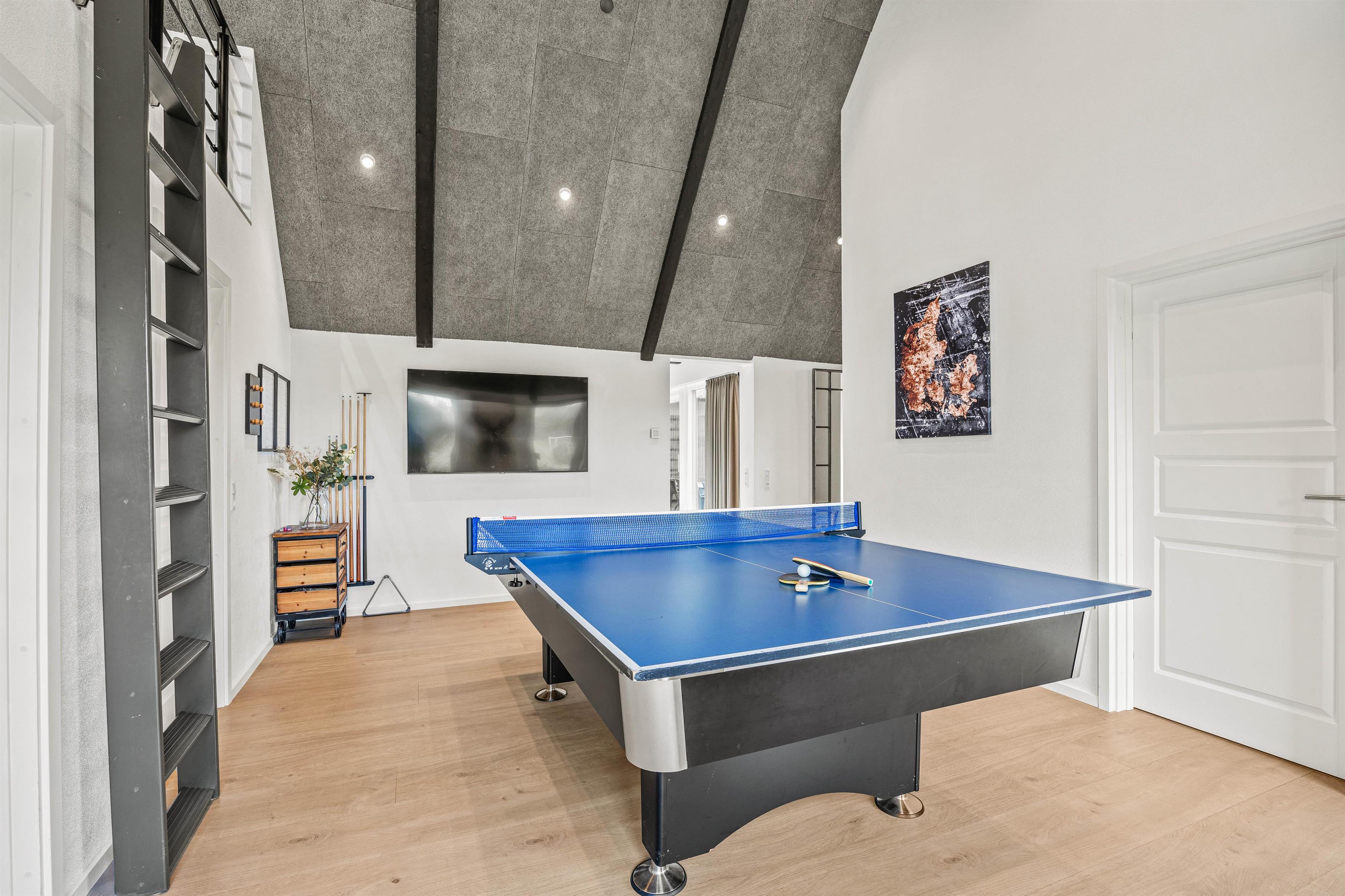 This holiday residence offers a comprehensive package of amenities to enhance your stay. A highlight is the spacious living area with high ceilings and premium furniture in classic design. Adjacent is the games room, featuring a pool table and table tennis to keep you entertained even on rainy days.