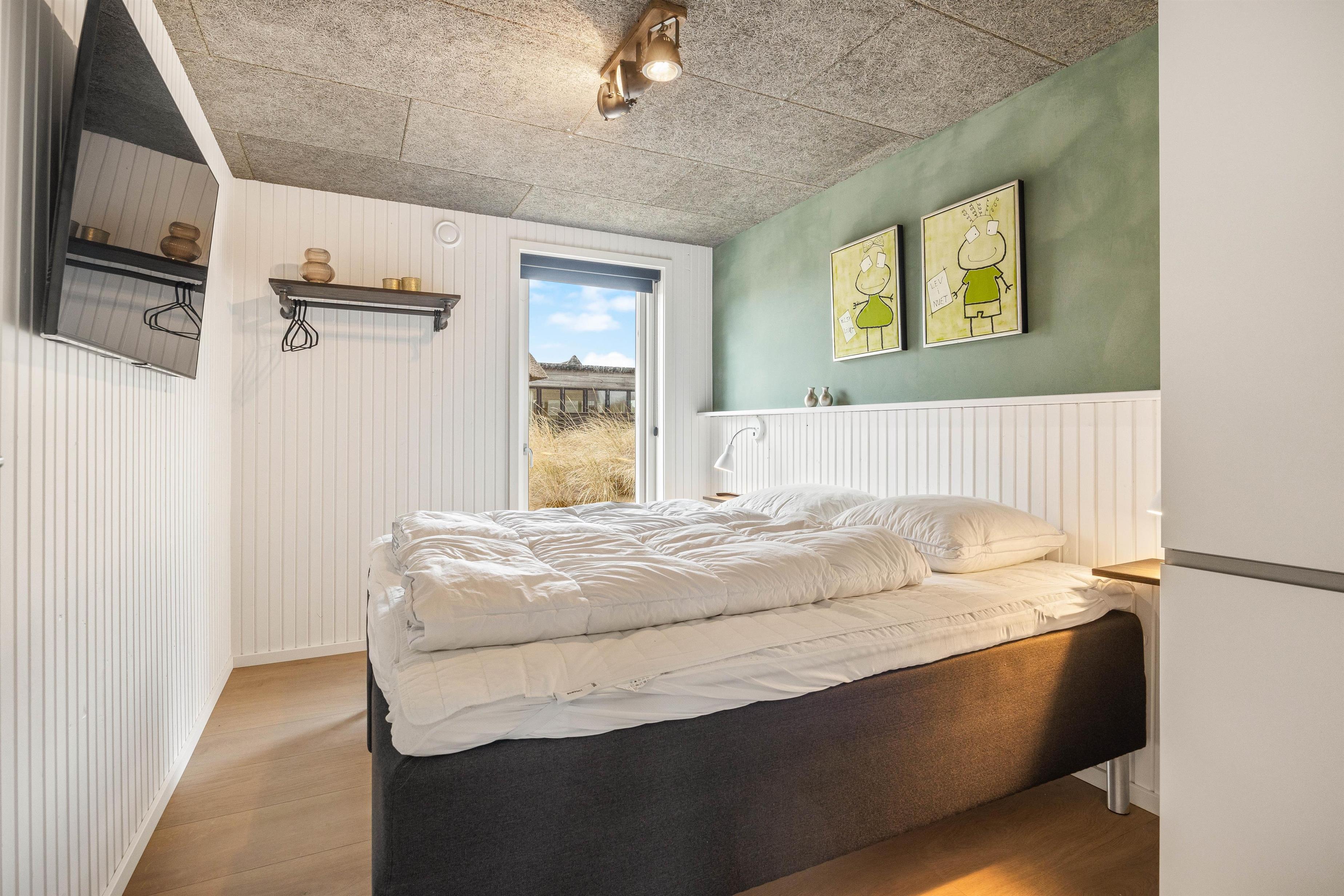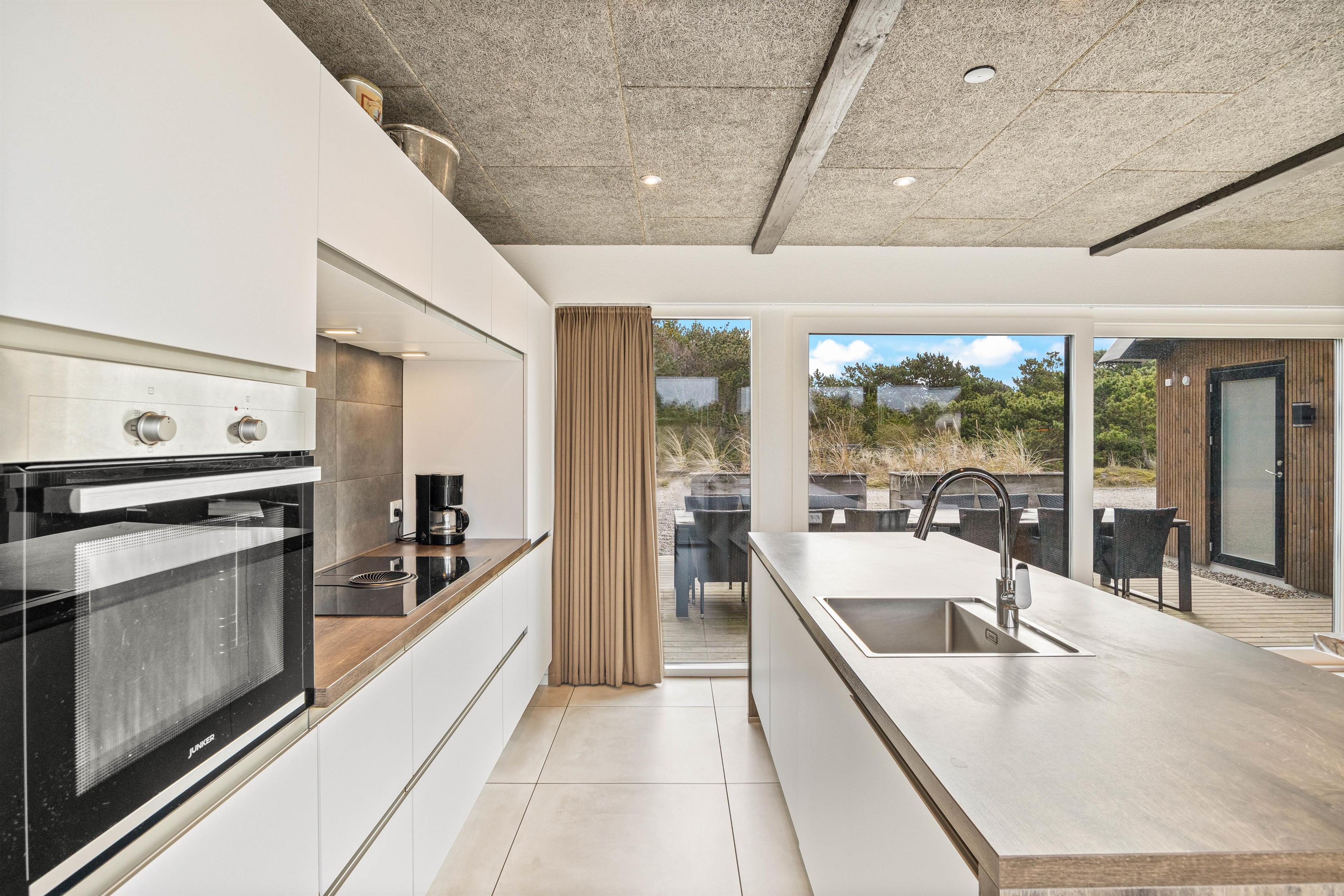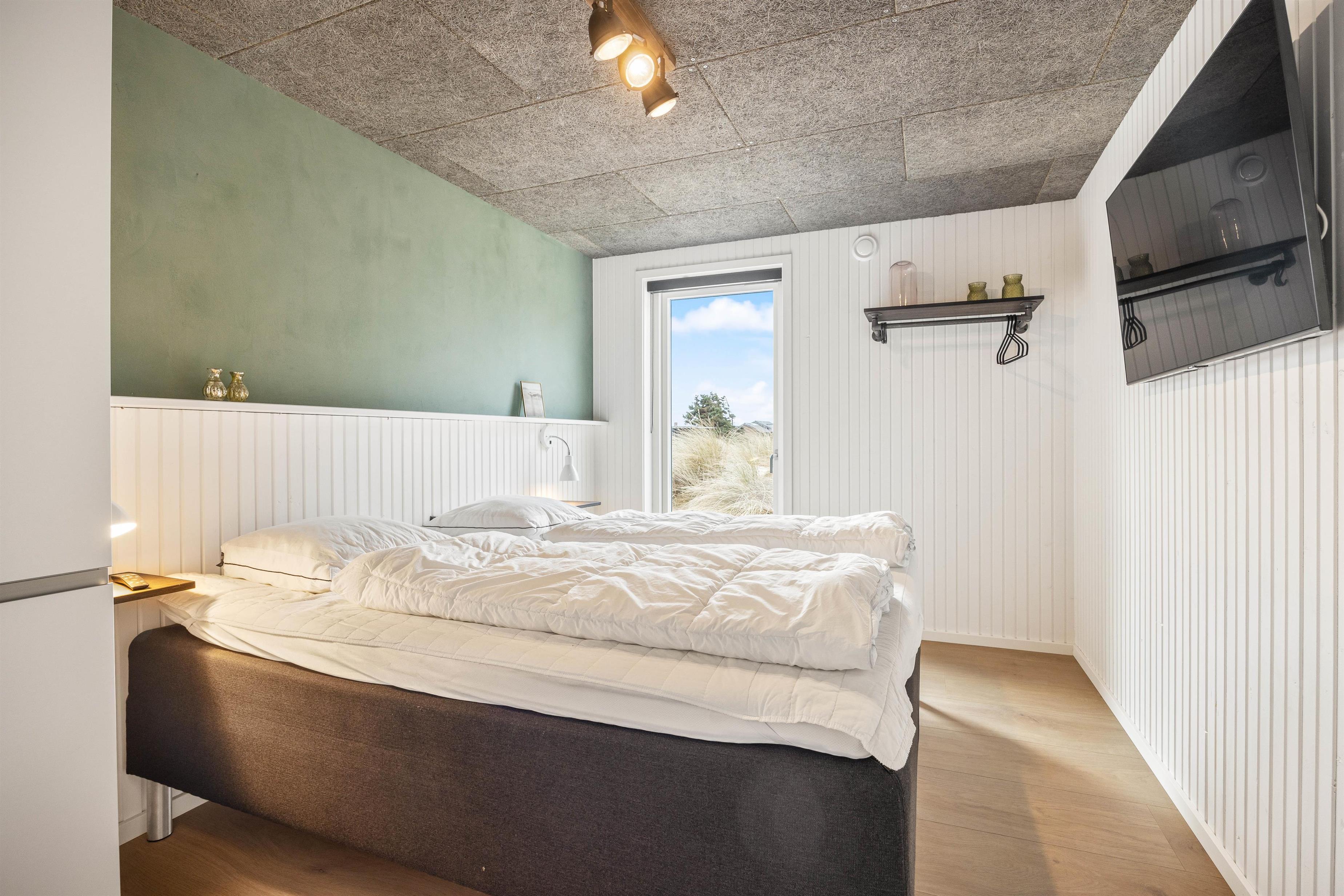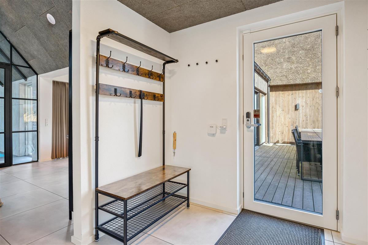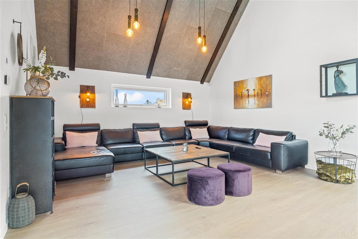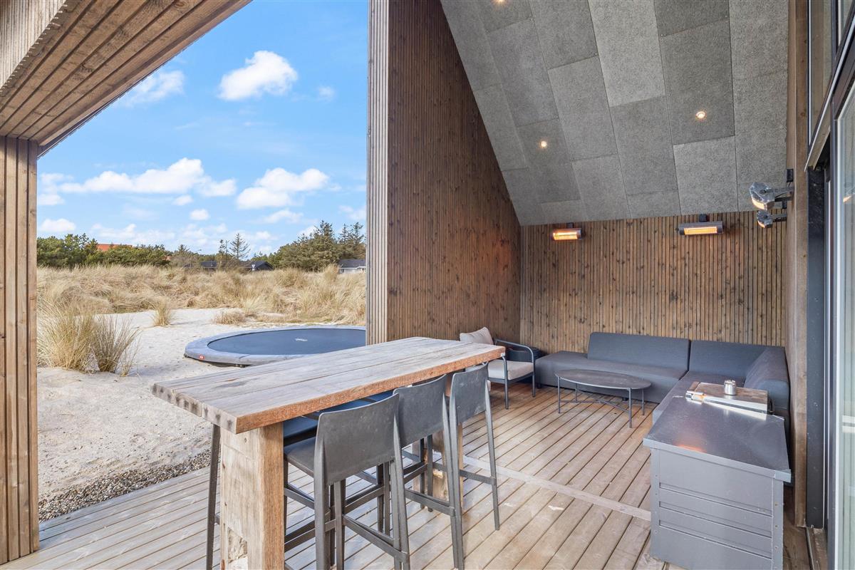 On the other side, you'll find the spacious kitchen with its cooking island and modern appliances. Here you can cook together and dine at the large dining table - perhaps try your hand at Danish recipes. The entire holiday home is heated by an energy-efficient heat pump powering the underfloor heating system.