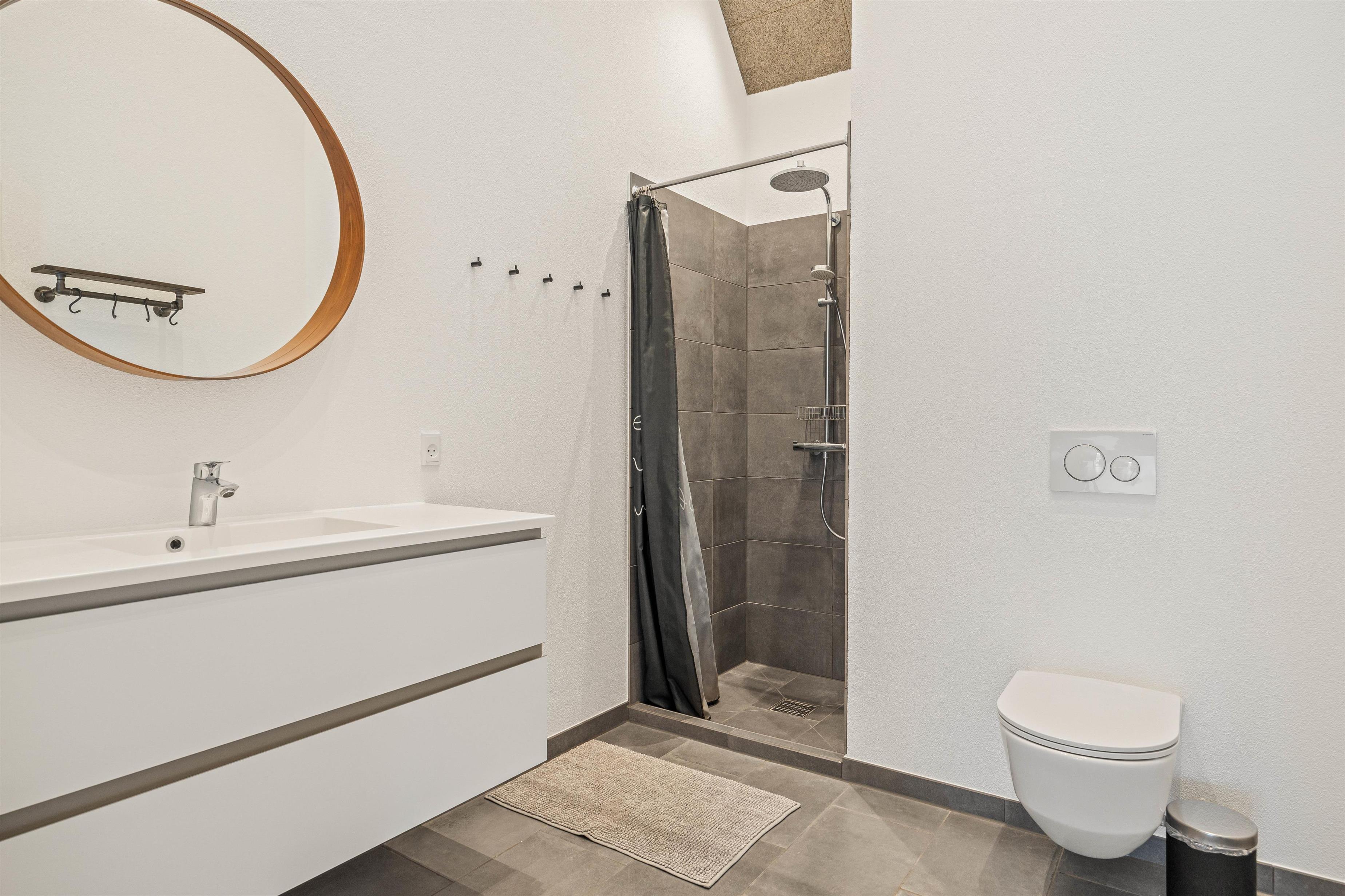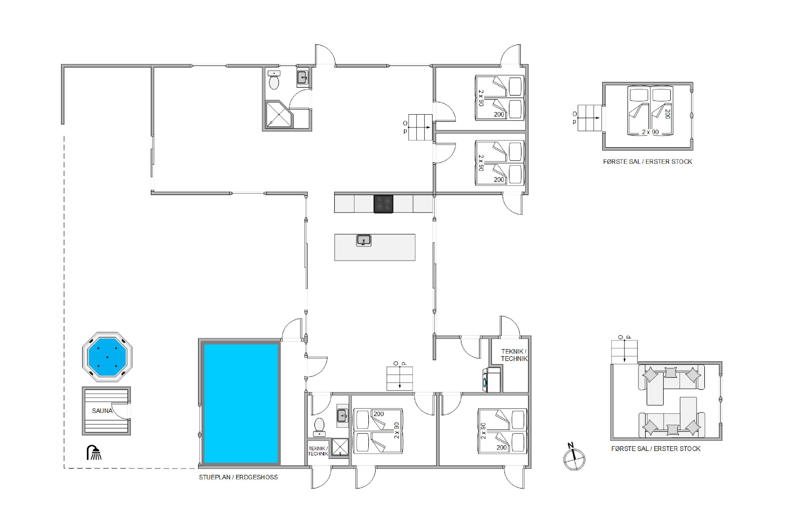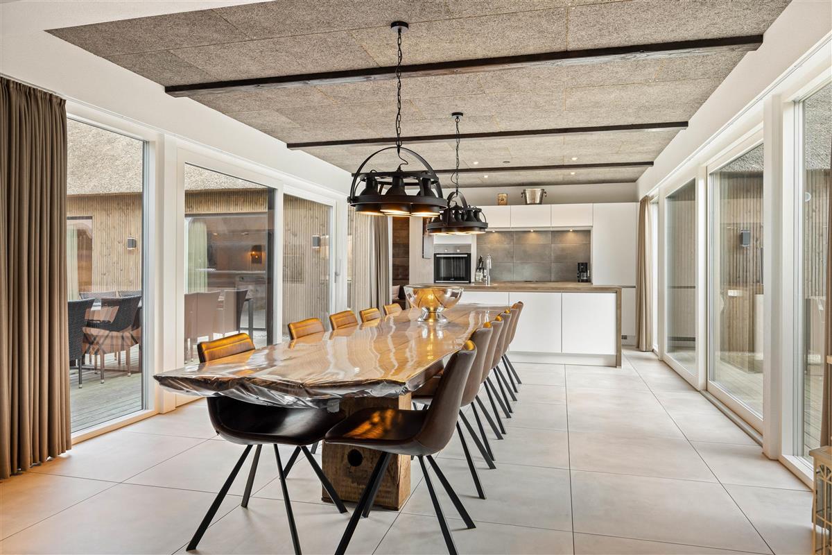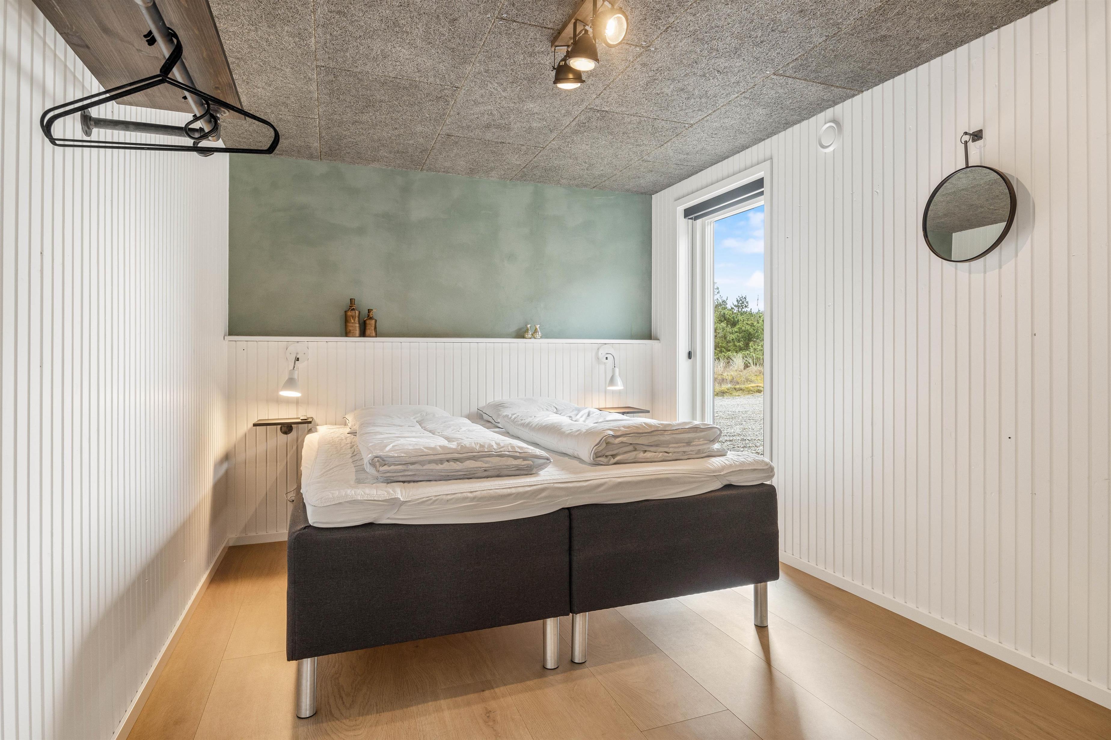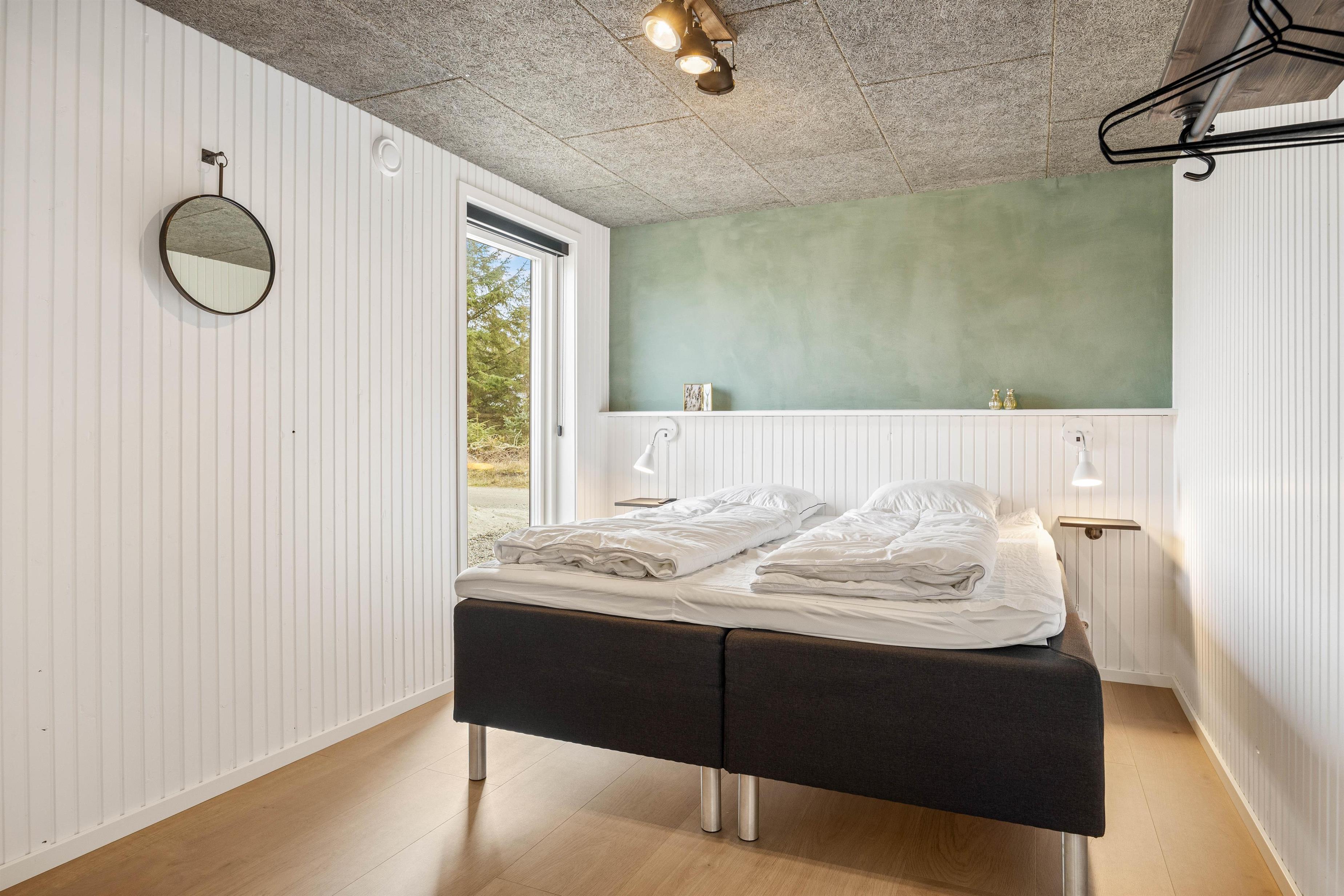 On the other side, you'll find the spacious kitchen with its cooking island and modern appliances. Here you can cook together and dine at the large dining table - perhaps try your hand at Danish recipes. The entire holiday home is heated by an energy-efficient heat pump powering the underfloor heating system.