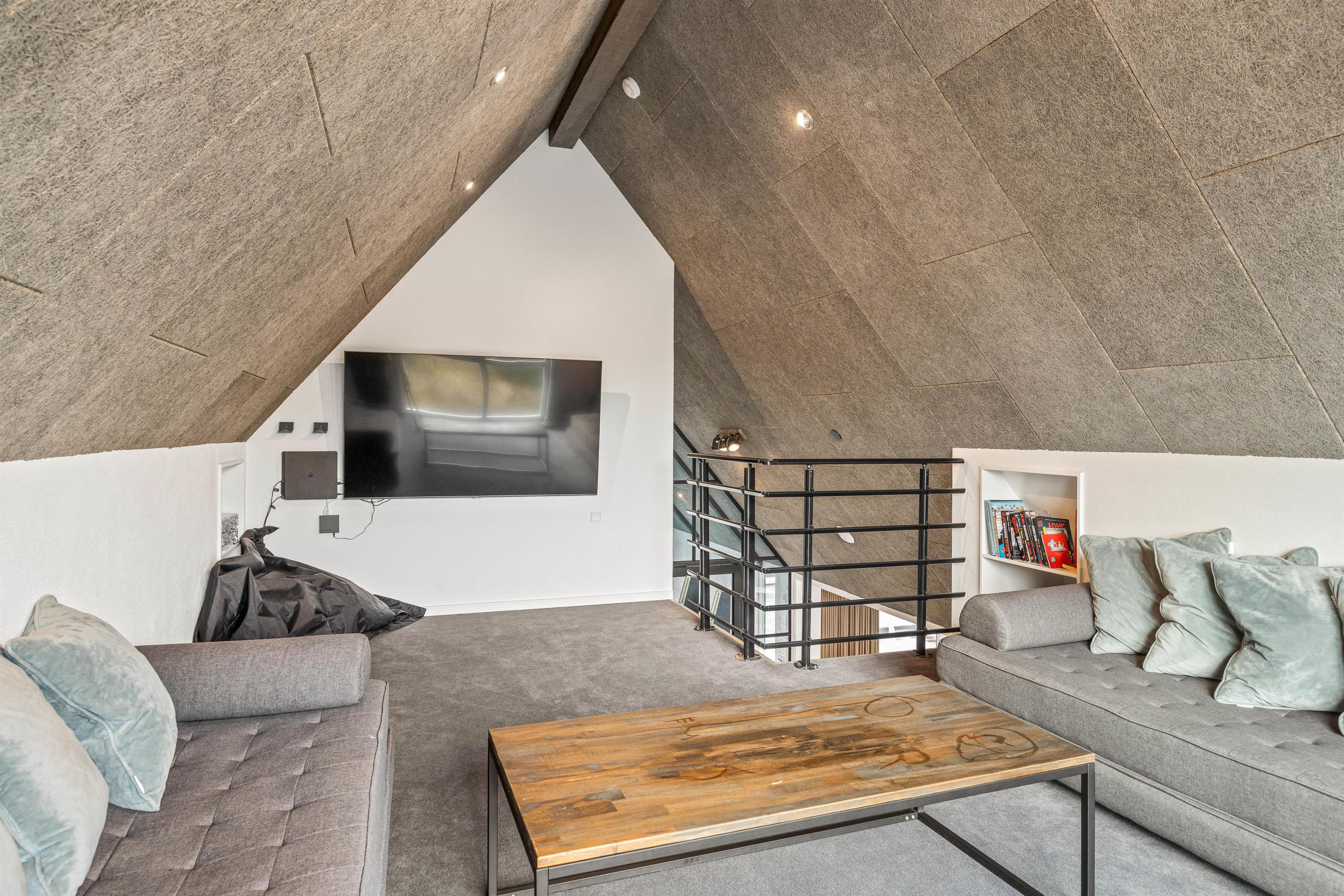 Conveniently, the holiday home has two bathrooms, reducing waiting times. The sleeping areas are positioned on opposite sides of the house, perfect for sharing with another family. There are four bedrooms with comfortable double beds and two sleeping lofts providing four additional sleeping spaces. Besides the televisions in the living room and games room, each bedroom also features its own TV.