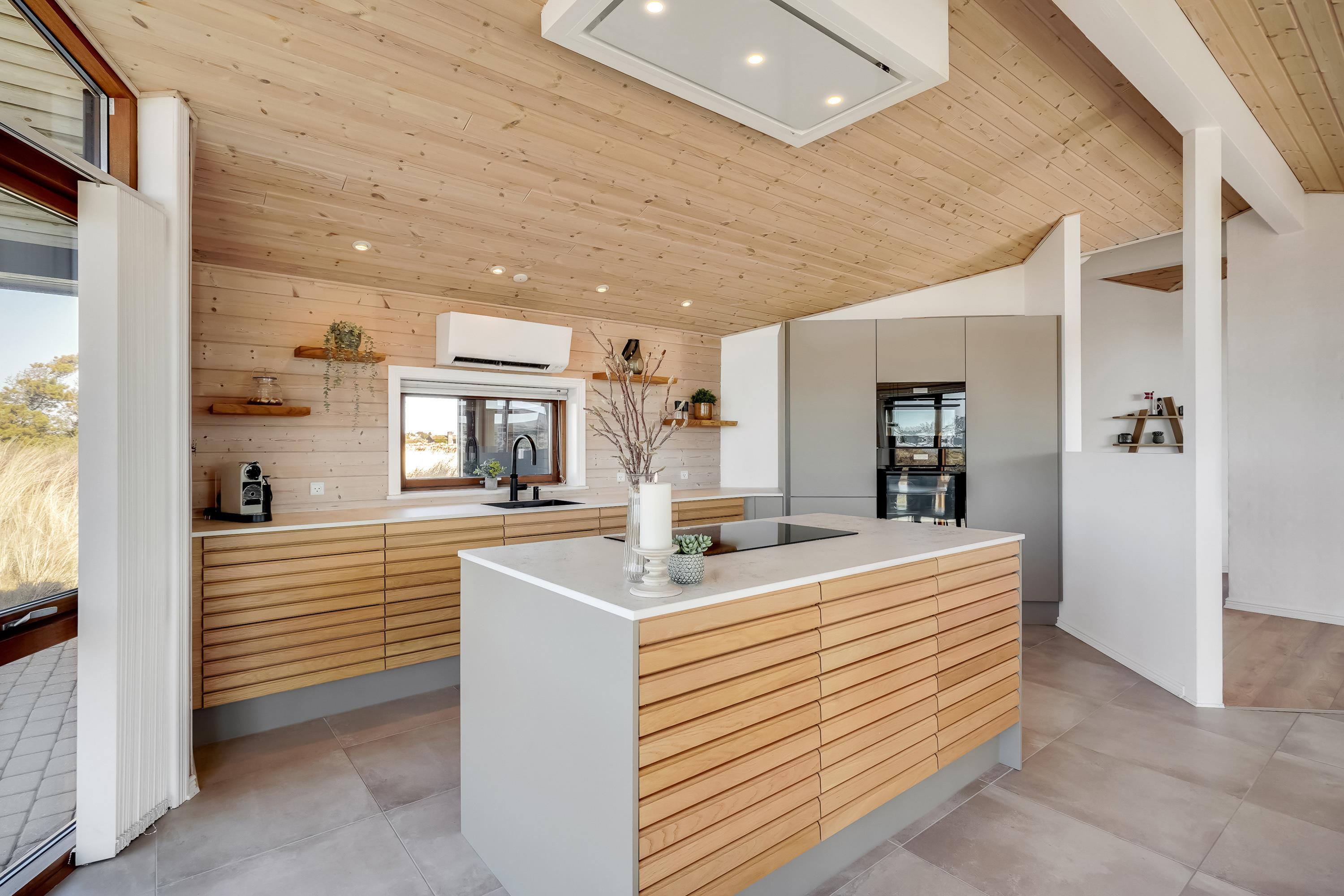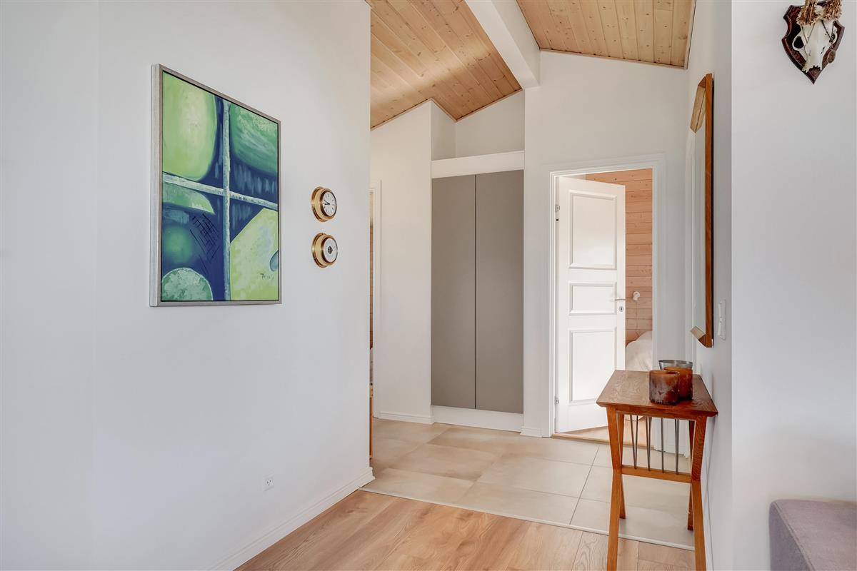 Das Ferienhaus zeichnet sich durch seine stilvolle und durchdachte Einrichtung aus, die zu einer entspannten Atmosphäre in den großen, hellen Räumen beiträgt. An kühlen Abenden sorgt der Holzofen für eine warme und gemütliche Atmosphäre, und wenn ihr euch zur Nachtruhe begeben möchtet, bietet das Haus zwei Schlafzimmer mit je einem Doppelbett, damit ihr und eure Begleiter gut schlafen könnt.