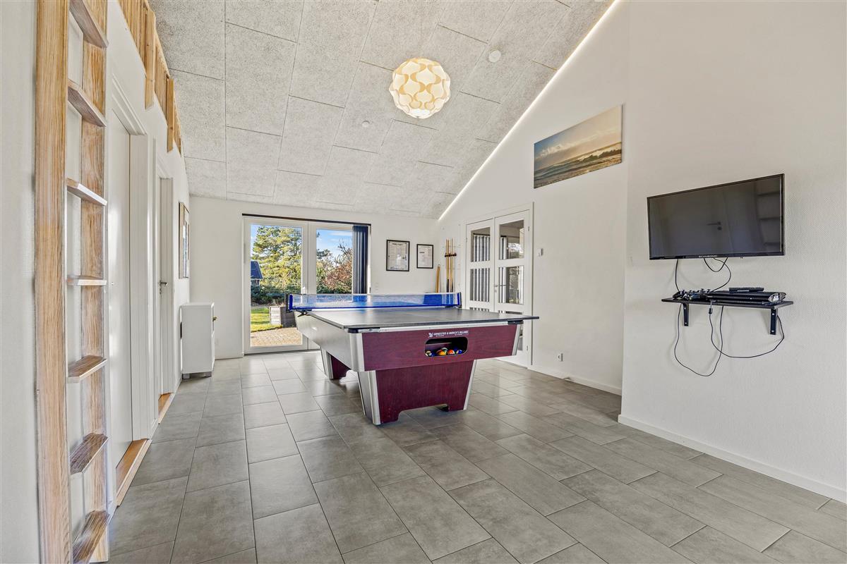 This beautiful holiday home is located at Fyrvej 11, just minutes from the holiday resort of Blåvand and 500 metres from the beach. It accommodates 8 people looking forward to a varied holiday on the Danish west coast. There's a dedicated games room with a billiards table and table tennis, plus a sauna and whirlpool for those seeking relaxation.