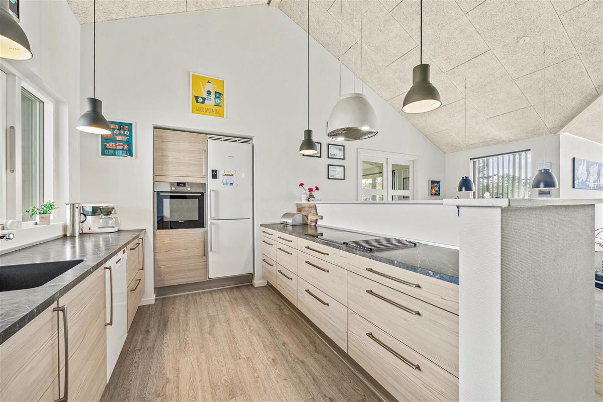Upon entering the holiday home, you're welcomed by a bright and modern atmosphere. The high-pitched ceilings and numerous floor-to-ceiling windows flood the rooms with light, creating an airy ambiance perfect for relaxation.