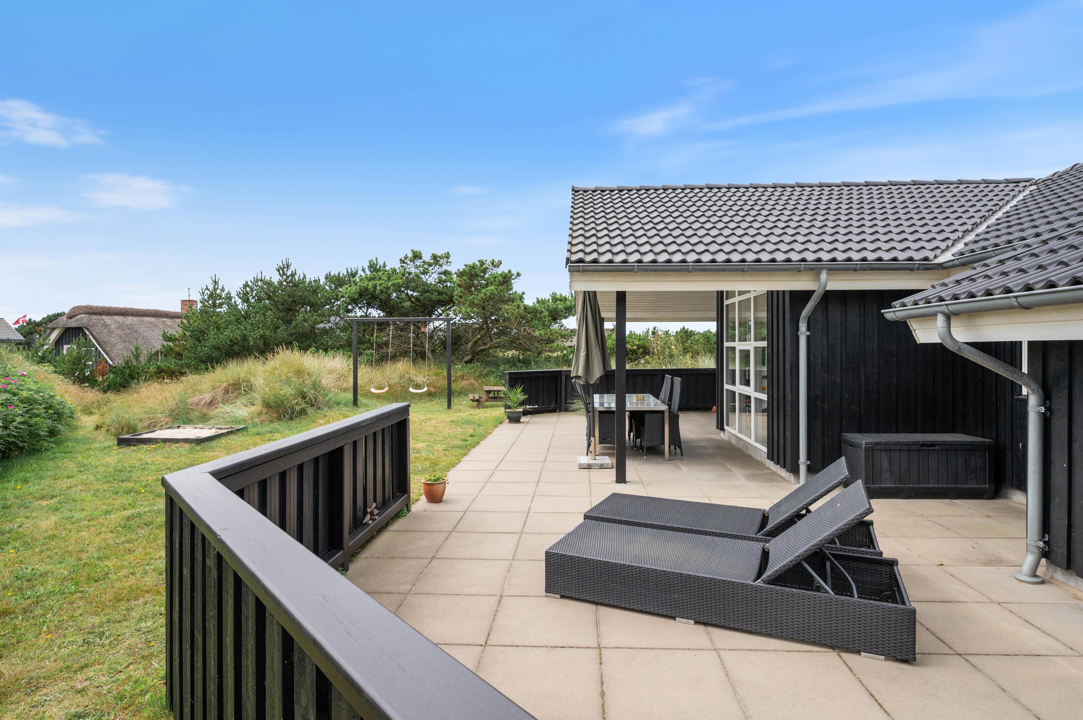 The large terrace is perfect for sunbathing and delightful barbecue evenings. Or simply relax in a lounger with a book, letting the distant sound of the sea wash over you - pure relaxation. For children, there's a swing and sandpit to burn off extra energy if the beach walk wasn't quite enough.