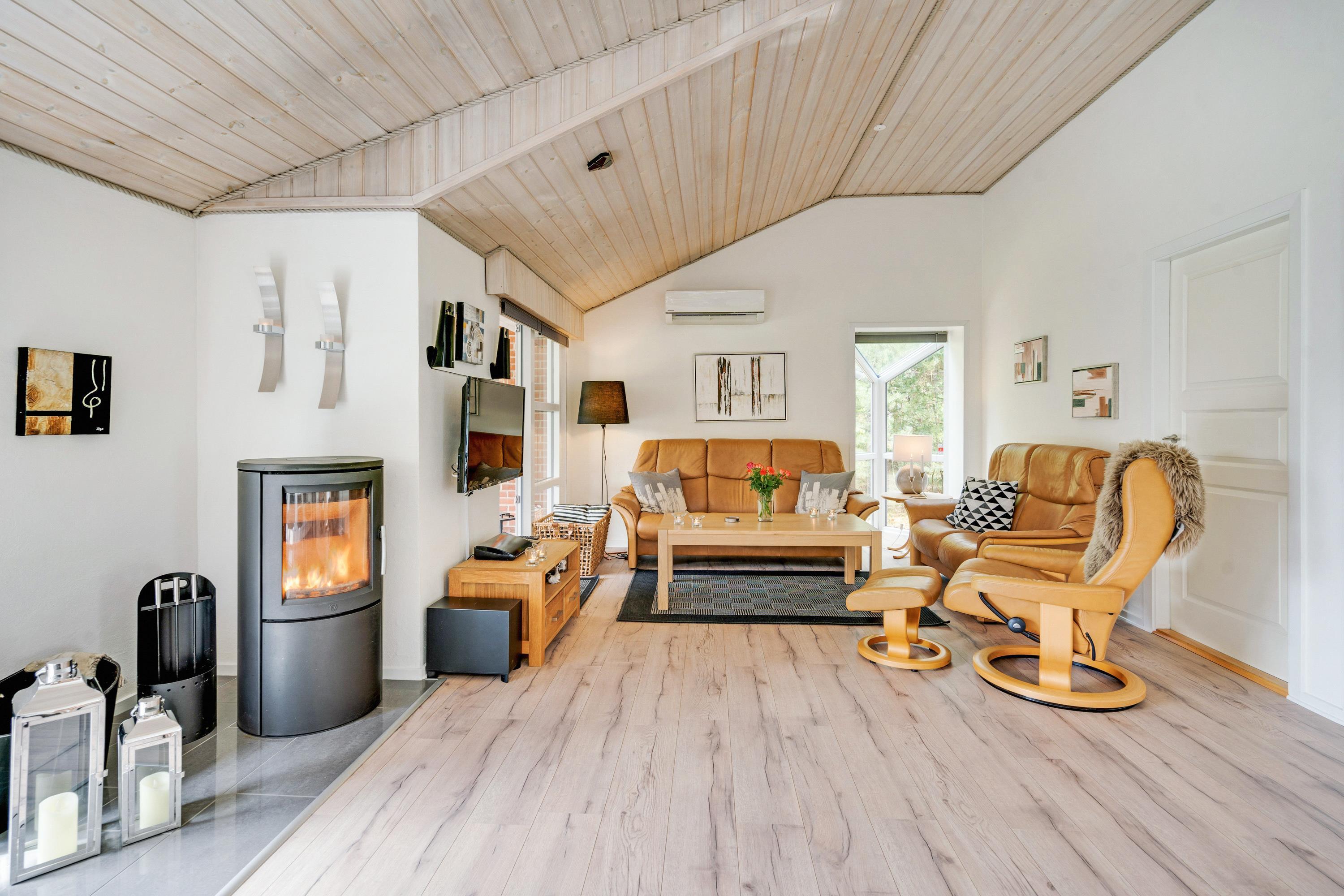 After a day at the beach or a long walk through the surrounding heath and marshlands, you can unwind in the hot tub and sauna – the perfect place to recharge and warm up. The crackling fire in the wood-burning stove adds to the holiday atmosphere.