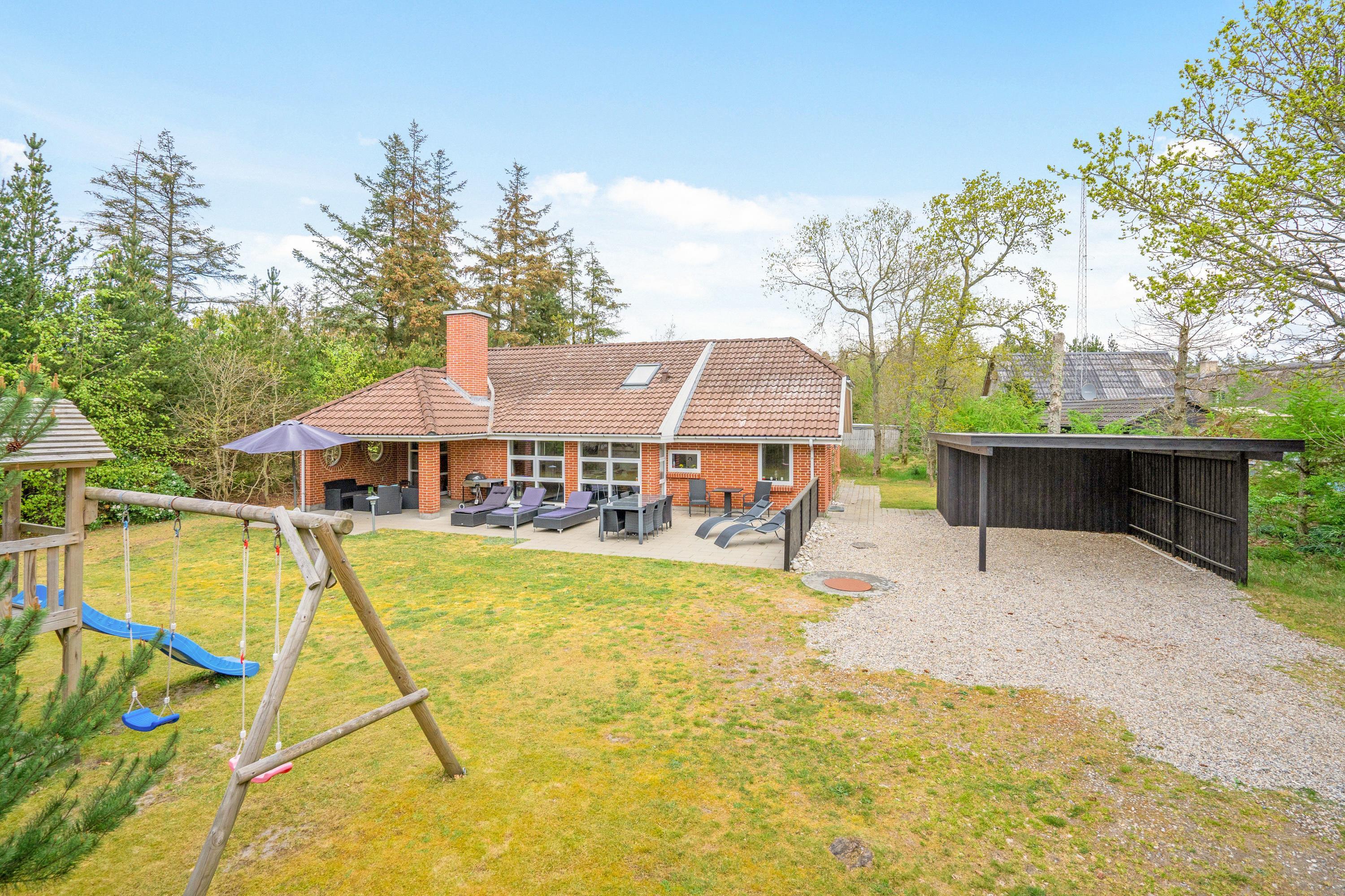 The outdoor area offers both a partially covered terrace and a sun terrace, well-protected and furnished with ample garden furniture. Your children and dog will love playing on the large plot – there's plenty of space for running around, plus a swing and sandpit for the little ones.
