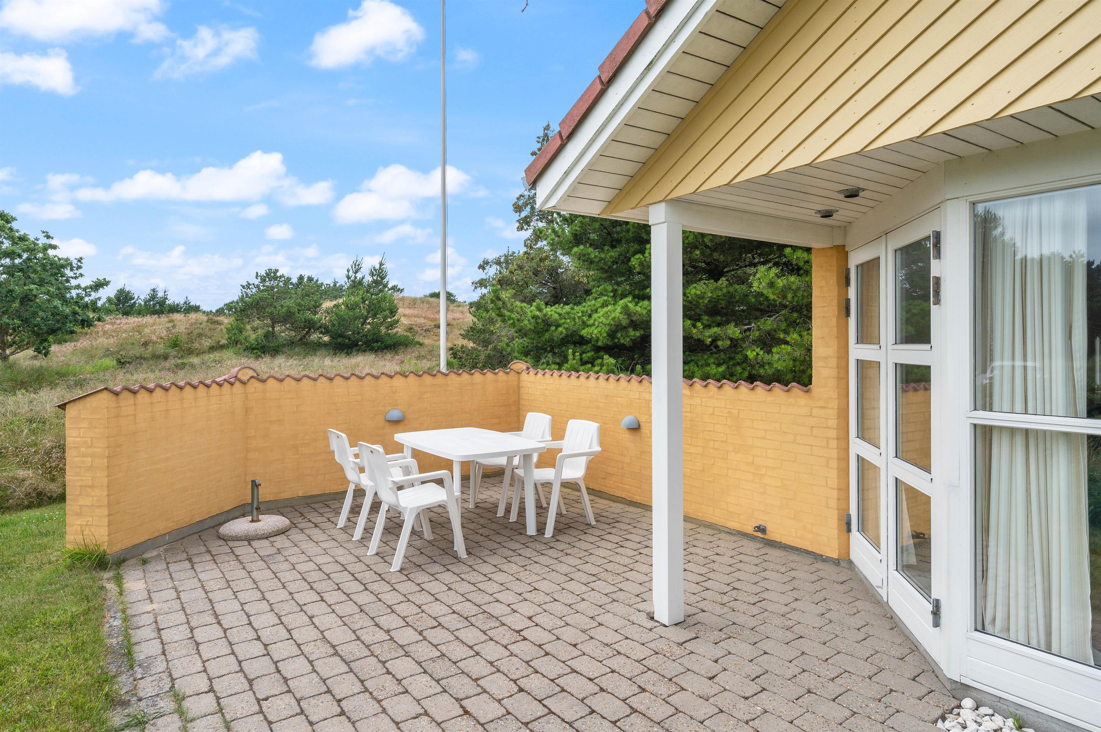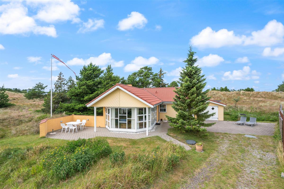 Welcome to this traditional holiday home, idyllically situated at Pouls Bjerge 15, Blåvand. A perfect retreat for your next relaxing holiday on Denmark's beautiful North Sea coast. The 85-square-metre holiday home sits on a natural plot of over 3,000 square metres.