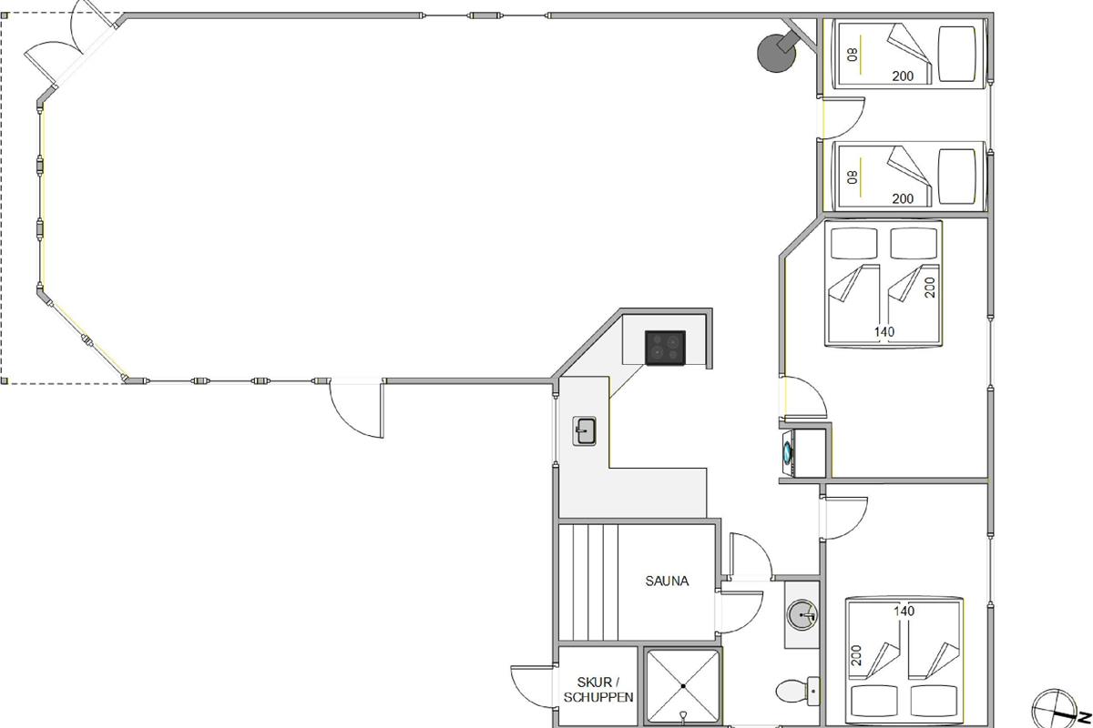 This classic holiday home offers everything you need for a comfortable stay. The open-plan kitchen flows into the living area, perfect for sociable cooking and dining. Here you can prepare your favourite meals while enjoying time together and sharing stories about your day.