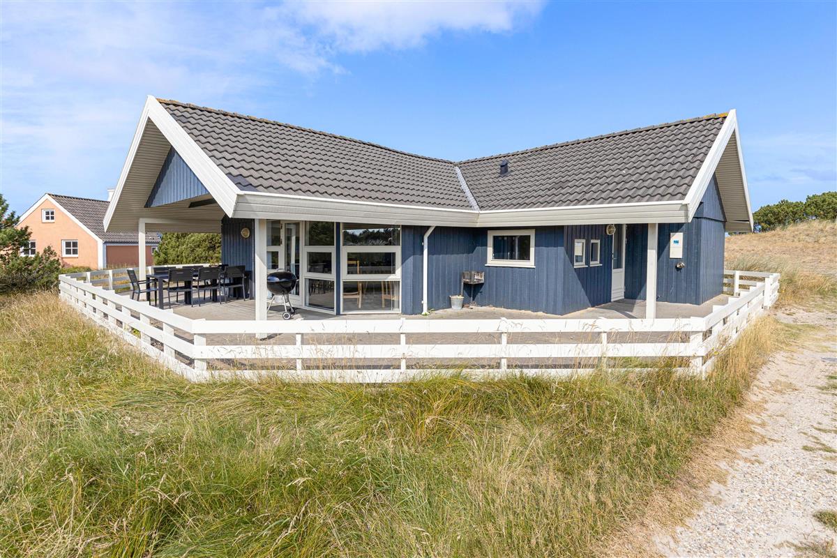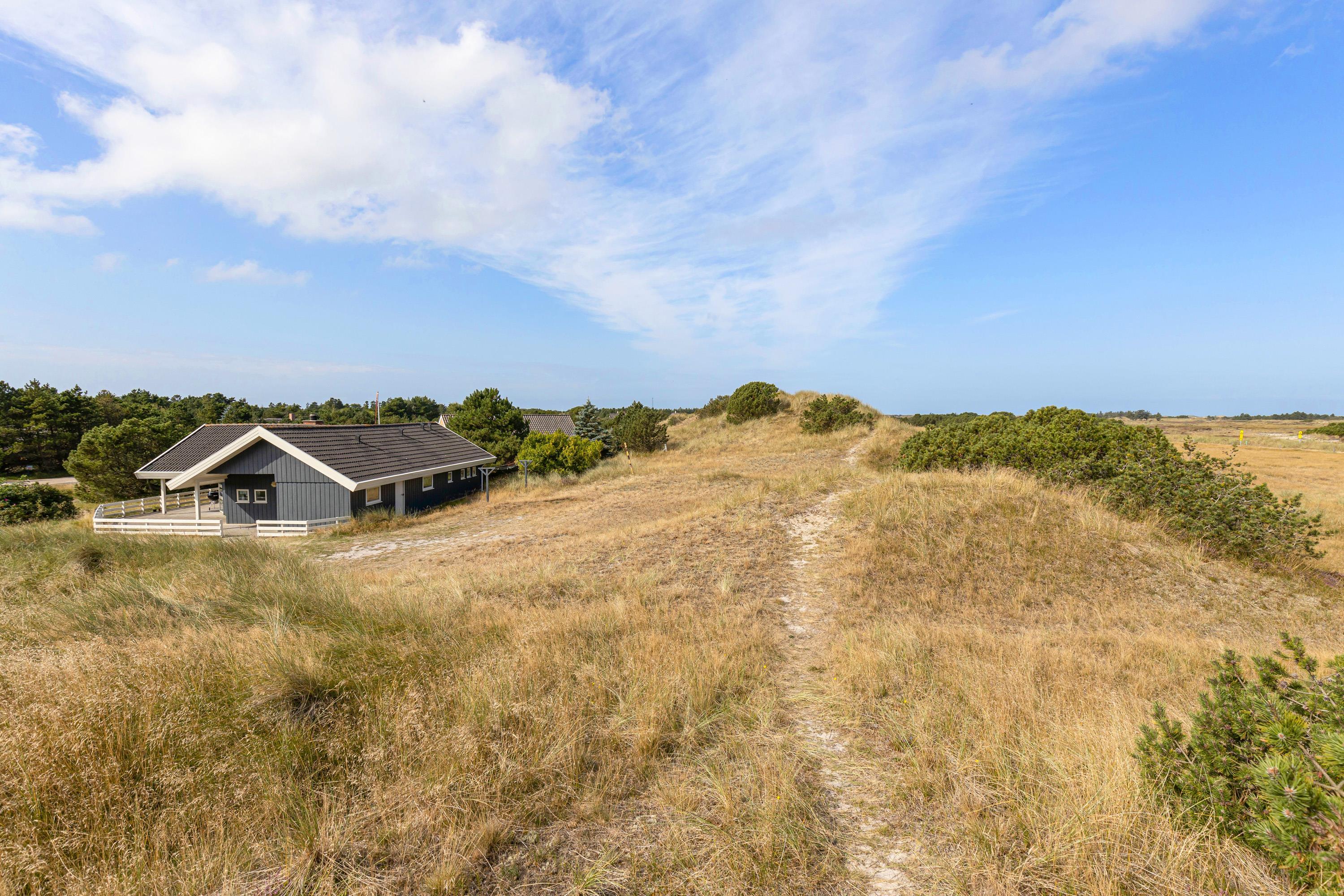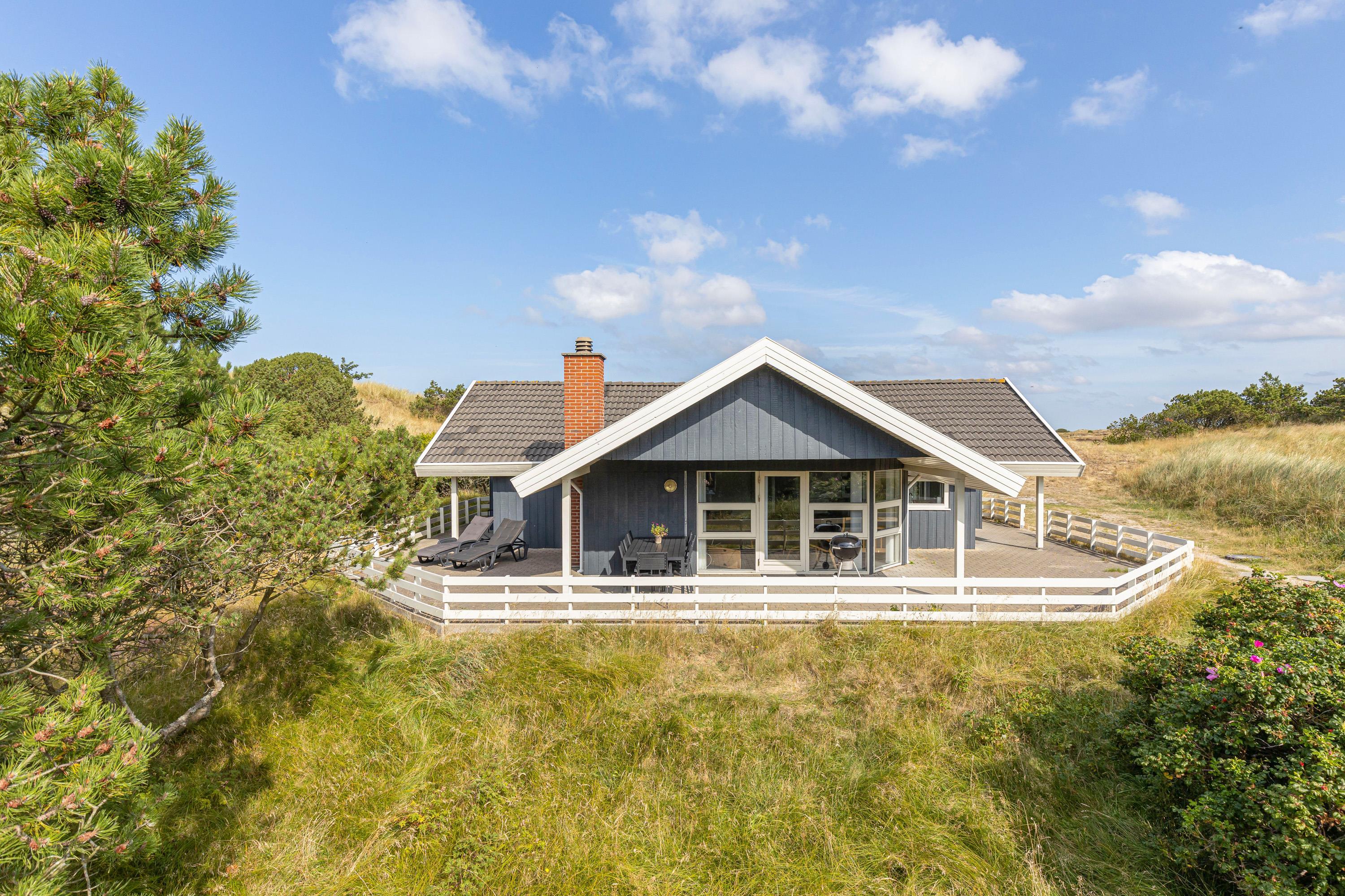 The holiday home enjoys a beautiful location on the edge of northern Blåvand, right next to a vast open heathland where you can take long walks and explore West Jutland's nature up close. You can expect visits from local wildlife - foxes, deer and hares are likely to make an appearance.