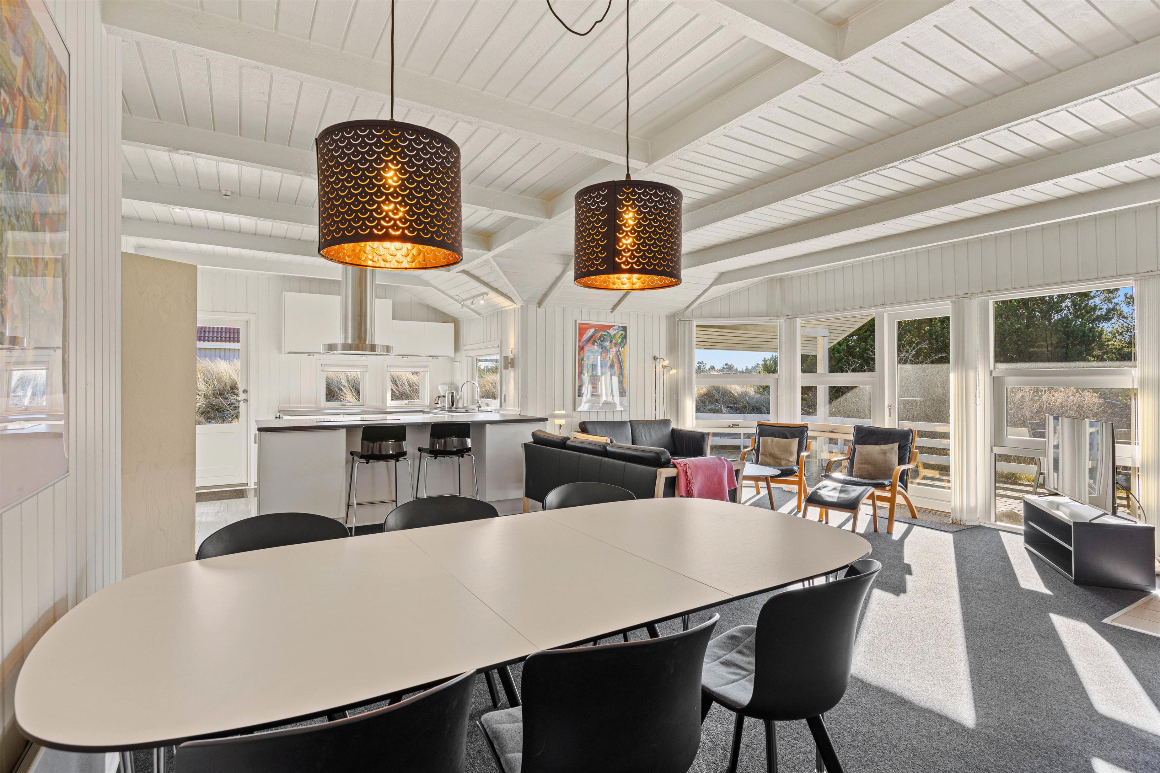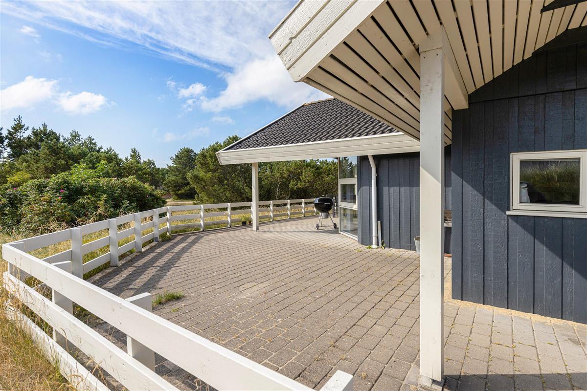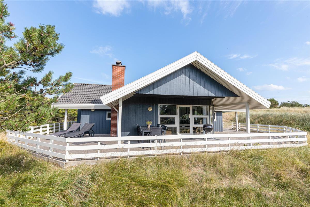 The holiday home enjoys a beautiful location on the edge of northern Blåvand, right next to a vast open heathland where you can take long walks and explore West Jutland's nature up close. You can expect visits from local wildlife - foxes, deer and hares are likely to make an appearance.