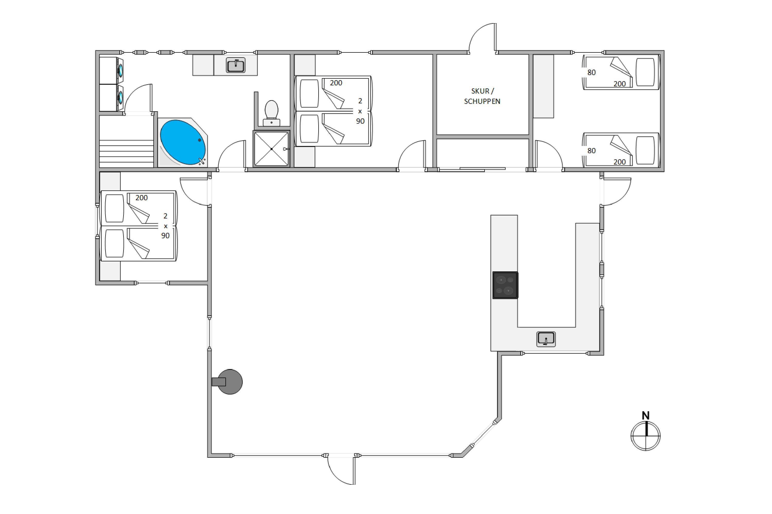 There are many ways to unwind and recharge during your stay. In the living room, you can curl up on the sofa with a good book and a hot cup of coffee while the wood-burning stove crackles in the background. In the spacious bathroom - with underfloor heating - you can pamper yourself in the house's sauna and whirlpool.