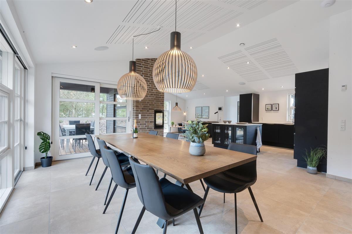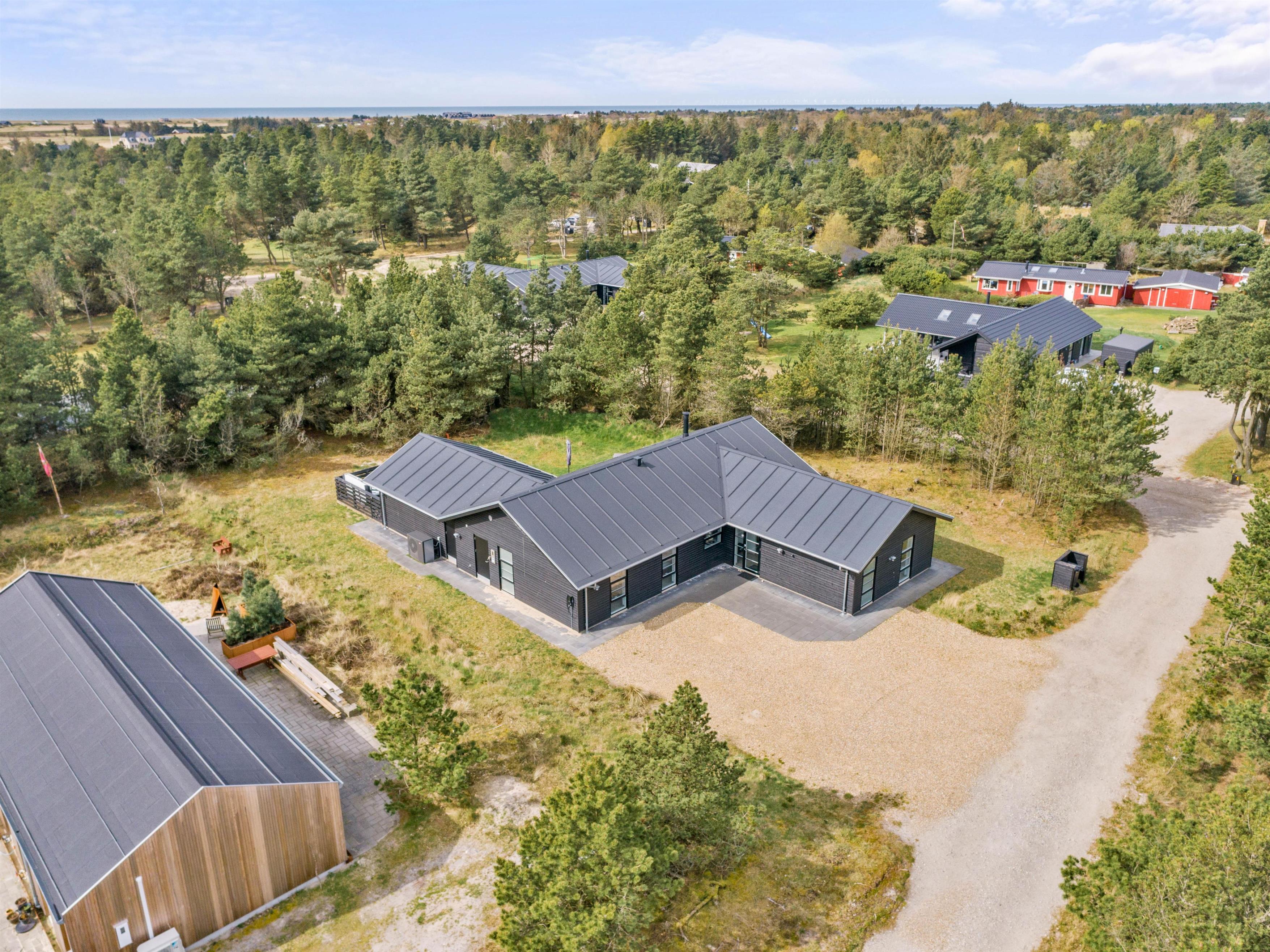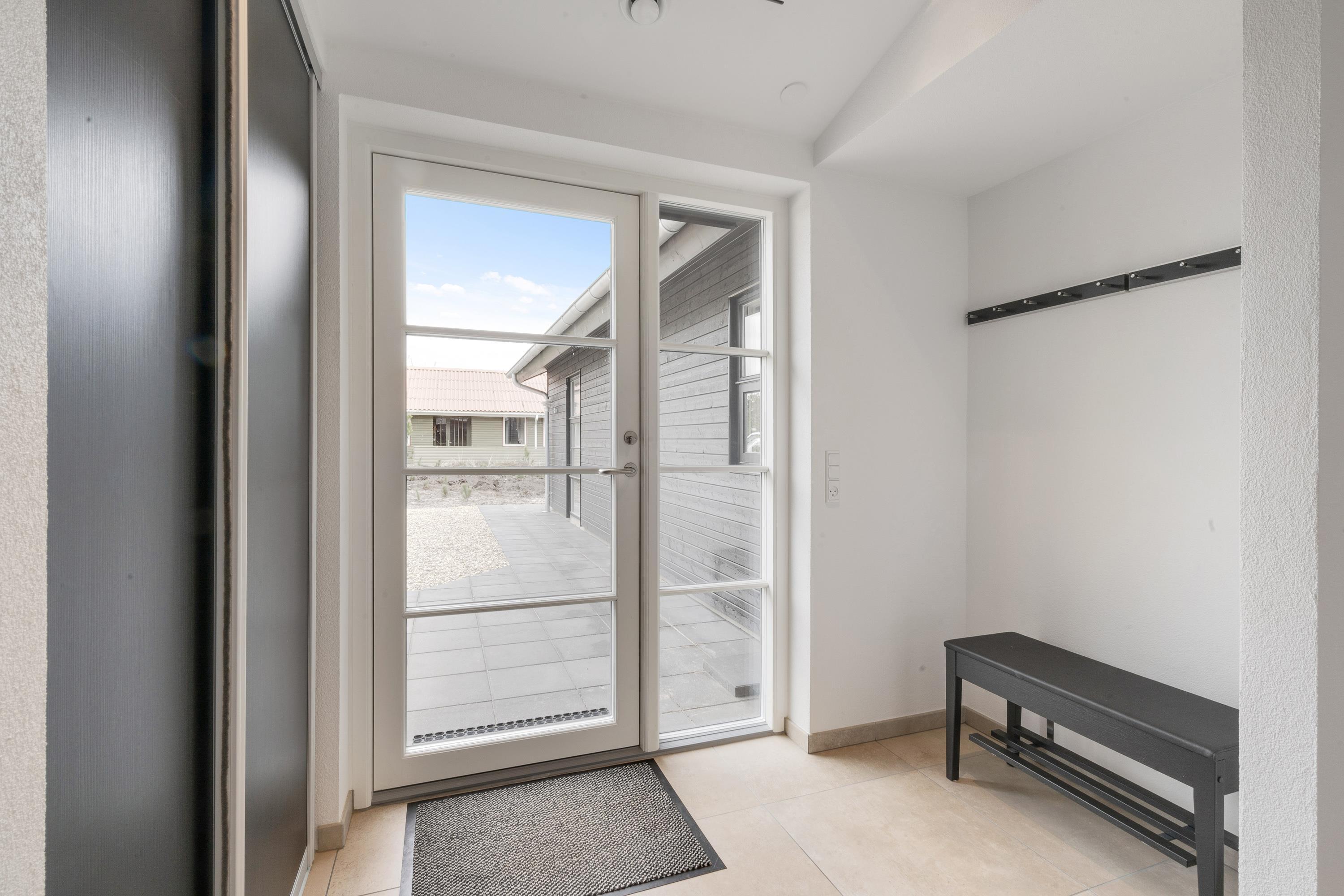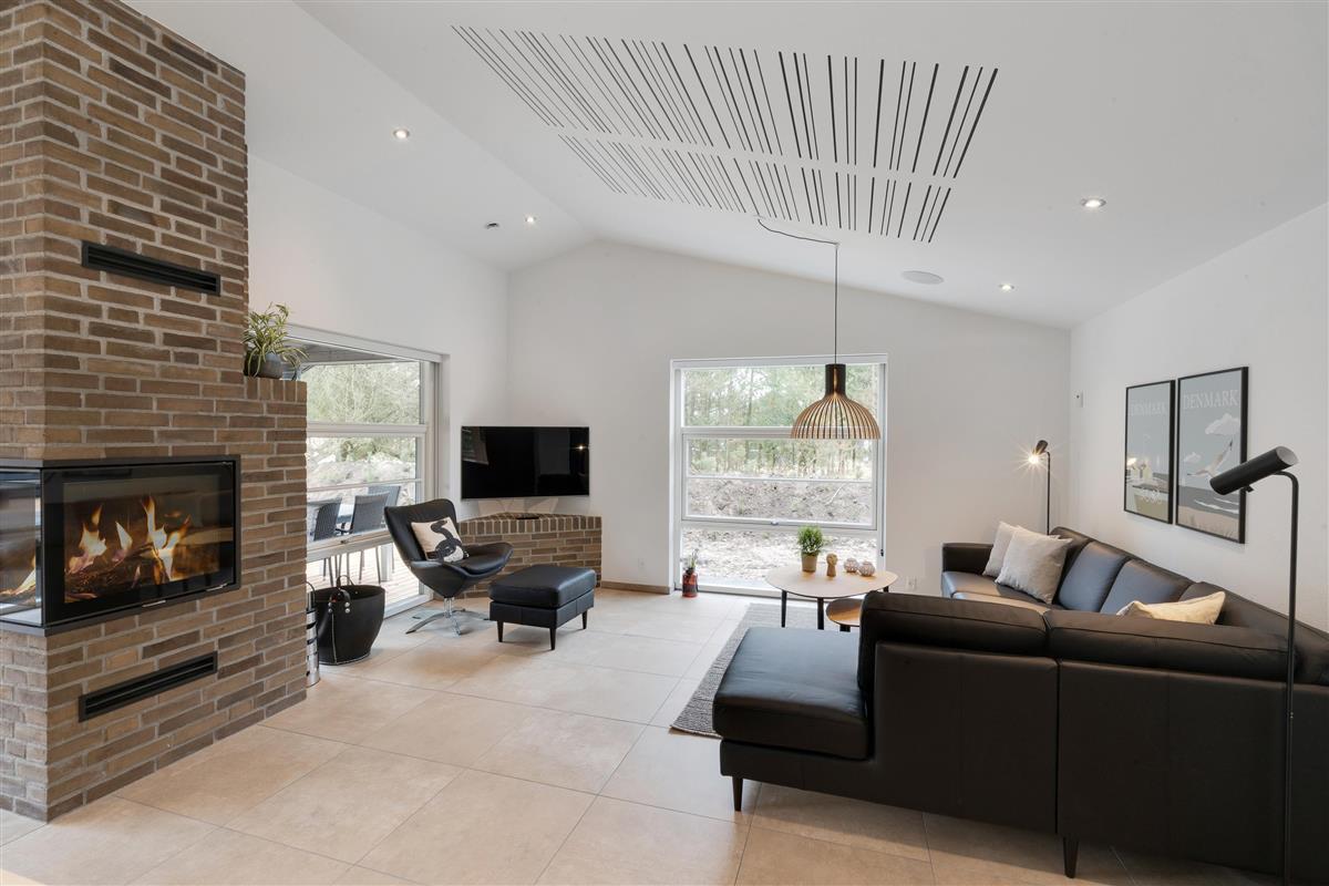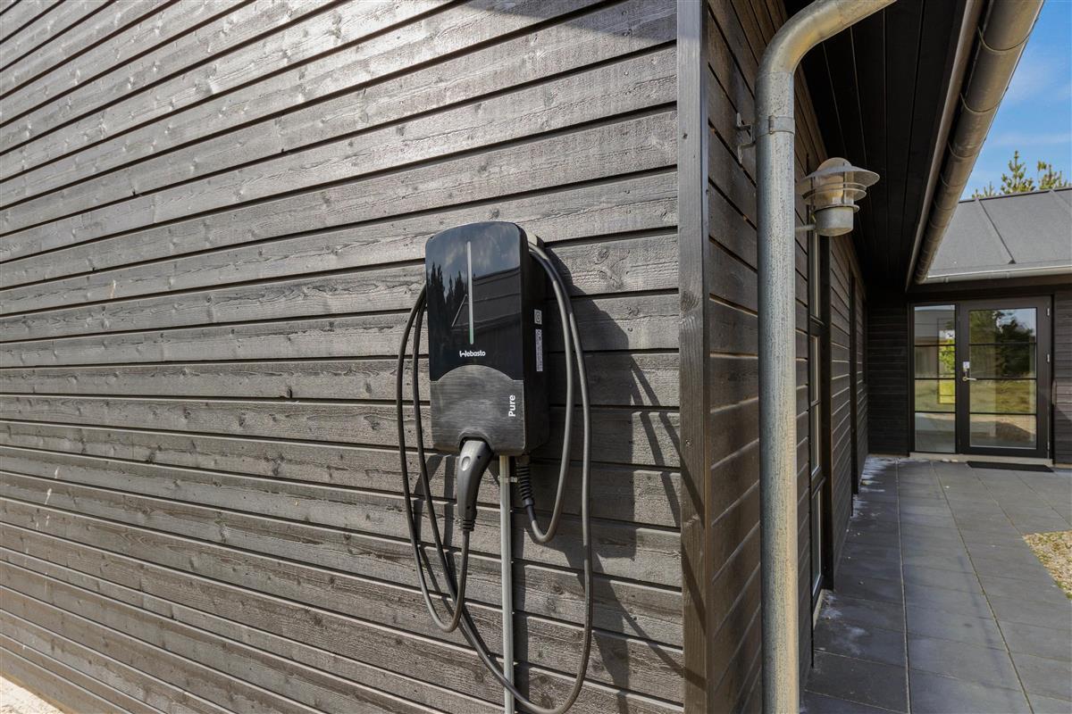 The pool area leads onto the holiday home's beautiful terrace. With its partially covered design, you'll always have shelter while enjoying the fresh air and picturesque surroundings of Blåvand. The terrace features a large outdoor hot tub, perfect for outdoor wellness experiences.