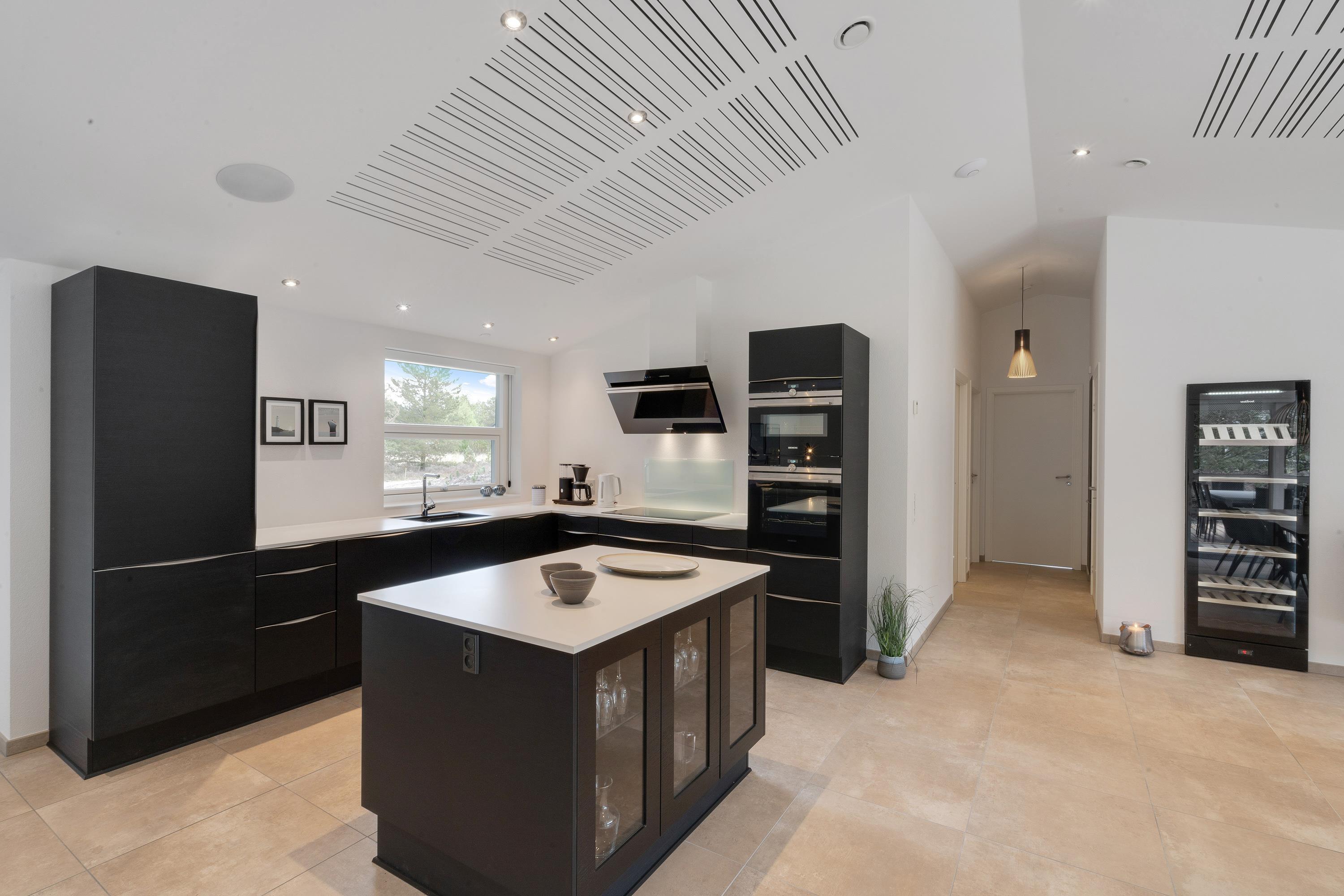 The entire holiday home benefits from underfloor heating, while the living room features a fireplace offering additional warmth and a cosy atmosphere. The well-equipped kitchen with its island unit is the perfect gathering spot for meal preparation. As an added bonus, the wine cooler ensures you'll always have perfectly chilled white or rosé wine at hand.