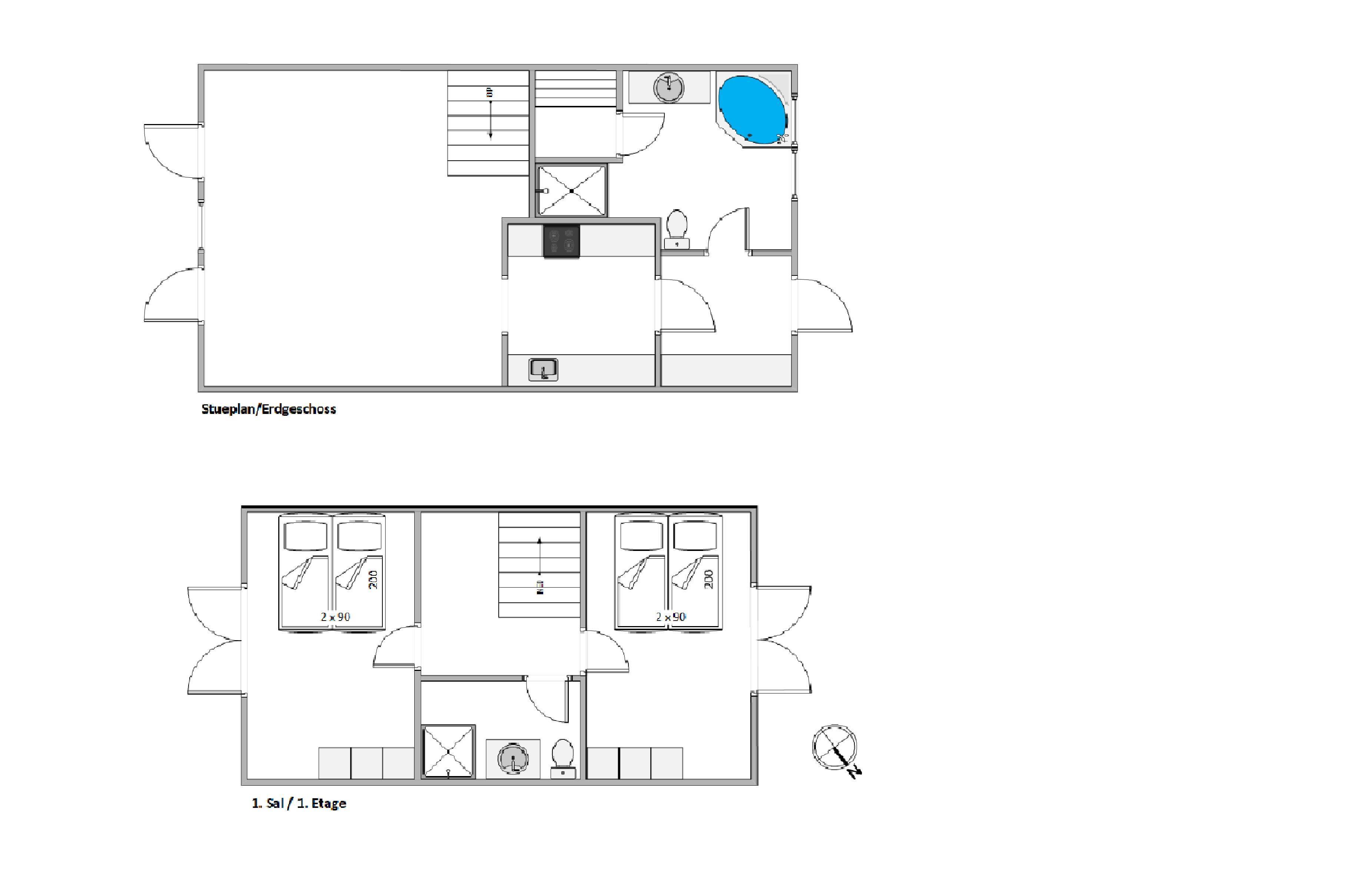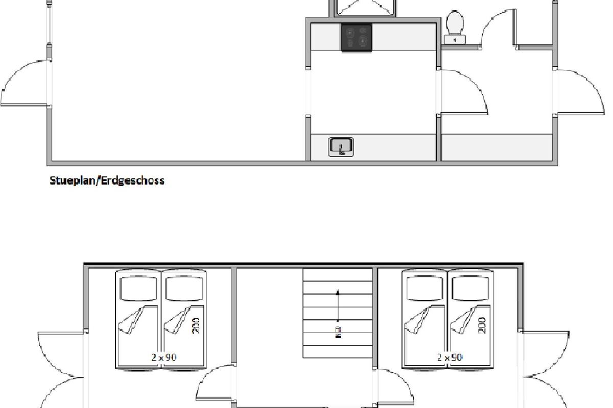 Your holiday home has two bedrooms, each equipped with a double bed and TV. The sofa bed provides two additional sleeping spaces. There are also two bathrooms, eliminating morning queues. One bathroom includes the small wellness area with sauna and whirlpool, perfect for indulgent relaxation.