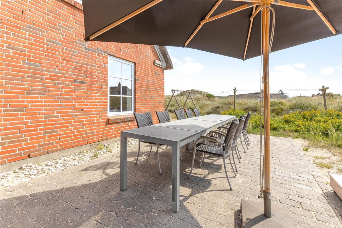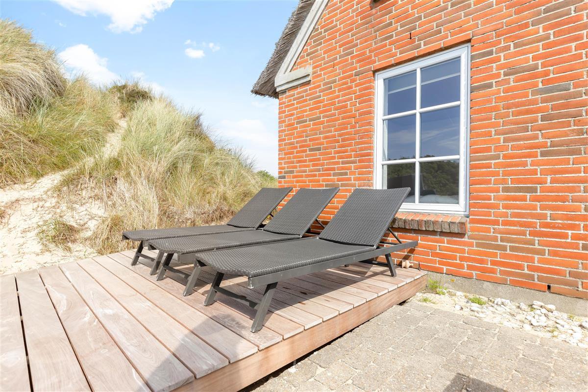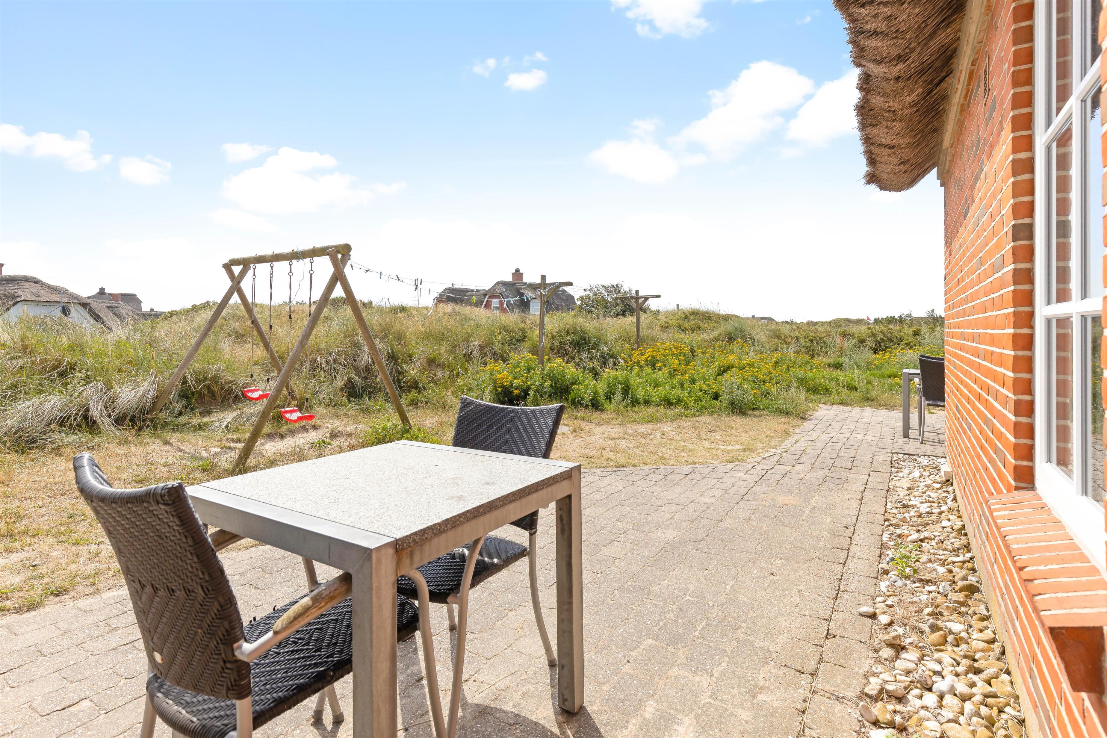 Terraces surround the house, offering private spaces sheltered by the dunes. Garden furniture and sun loungers are provided for enjoying the sunshine. An outdoor shower is also available, which you can use all year round. Children will enjoy the swing and sandpit.