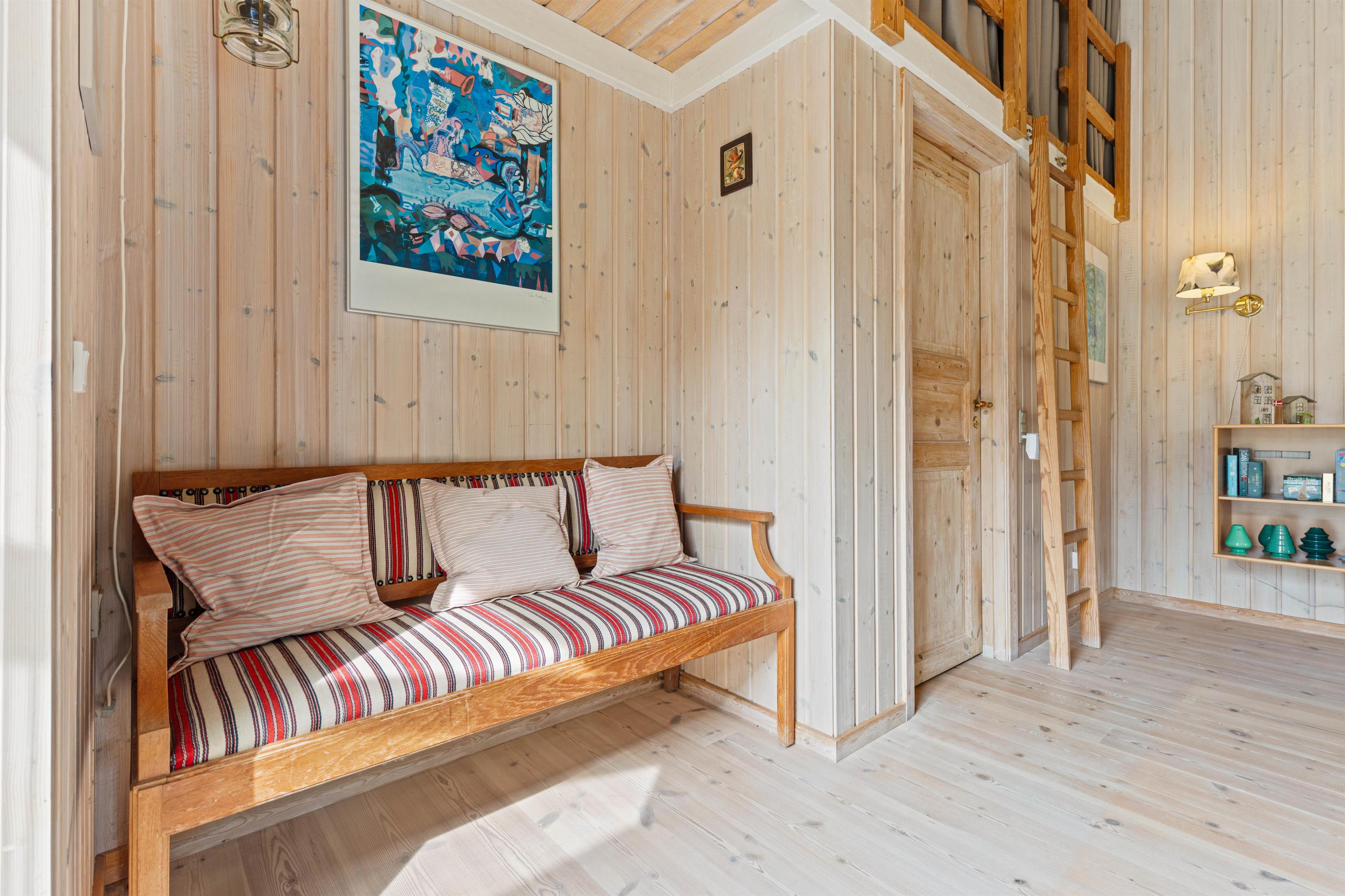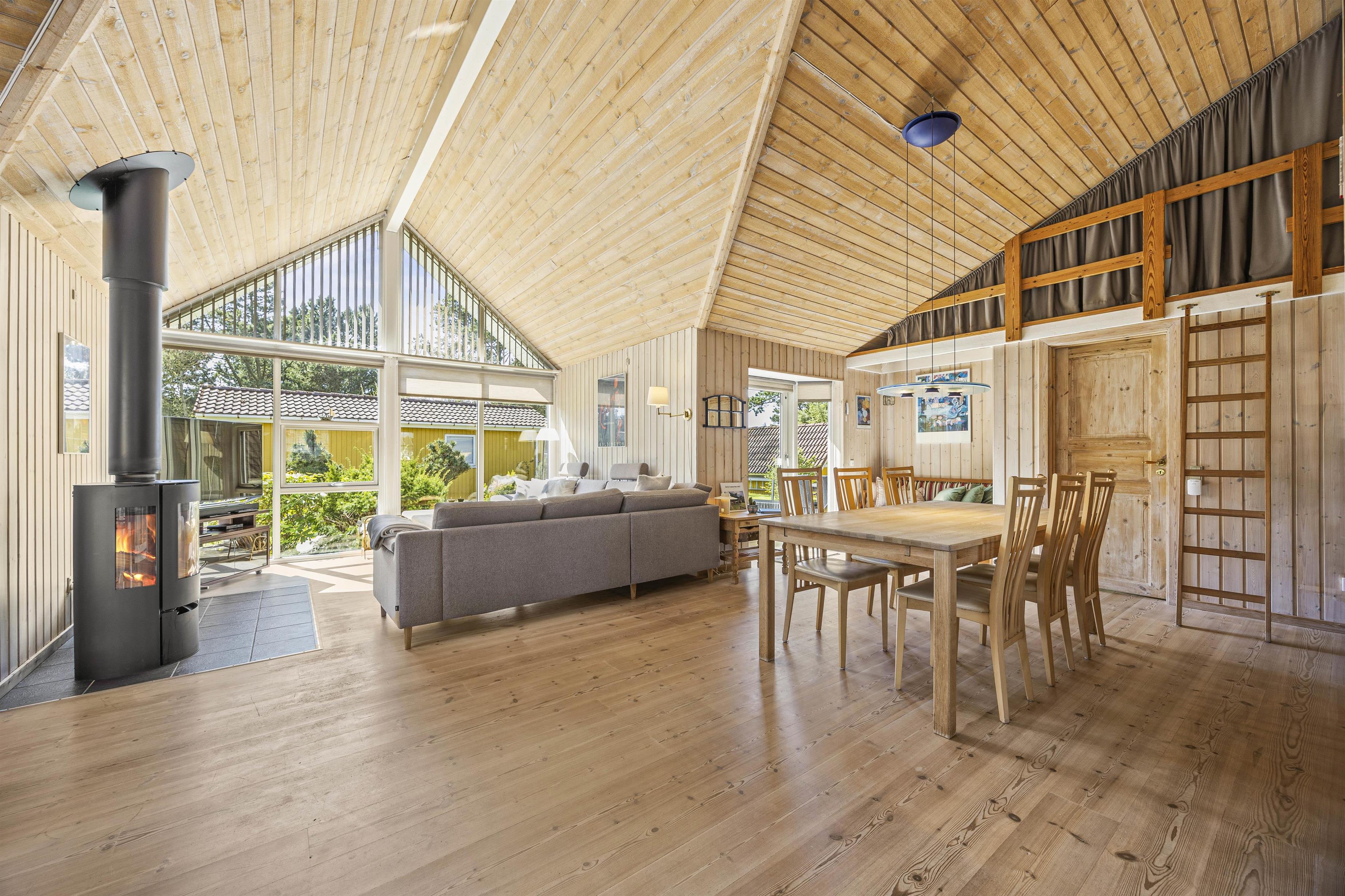 The well-equipped kitchen opens onto the living and dining area, where you can plan your next day's activities and enjoy holiday meals together at the dining table. In the evenings, you can relax by the crackling fire of the wood-burning stove, watch a film, or enjoy a game of cards.