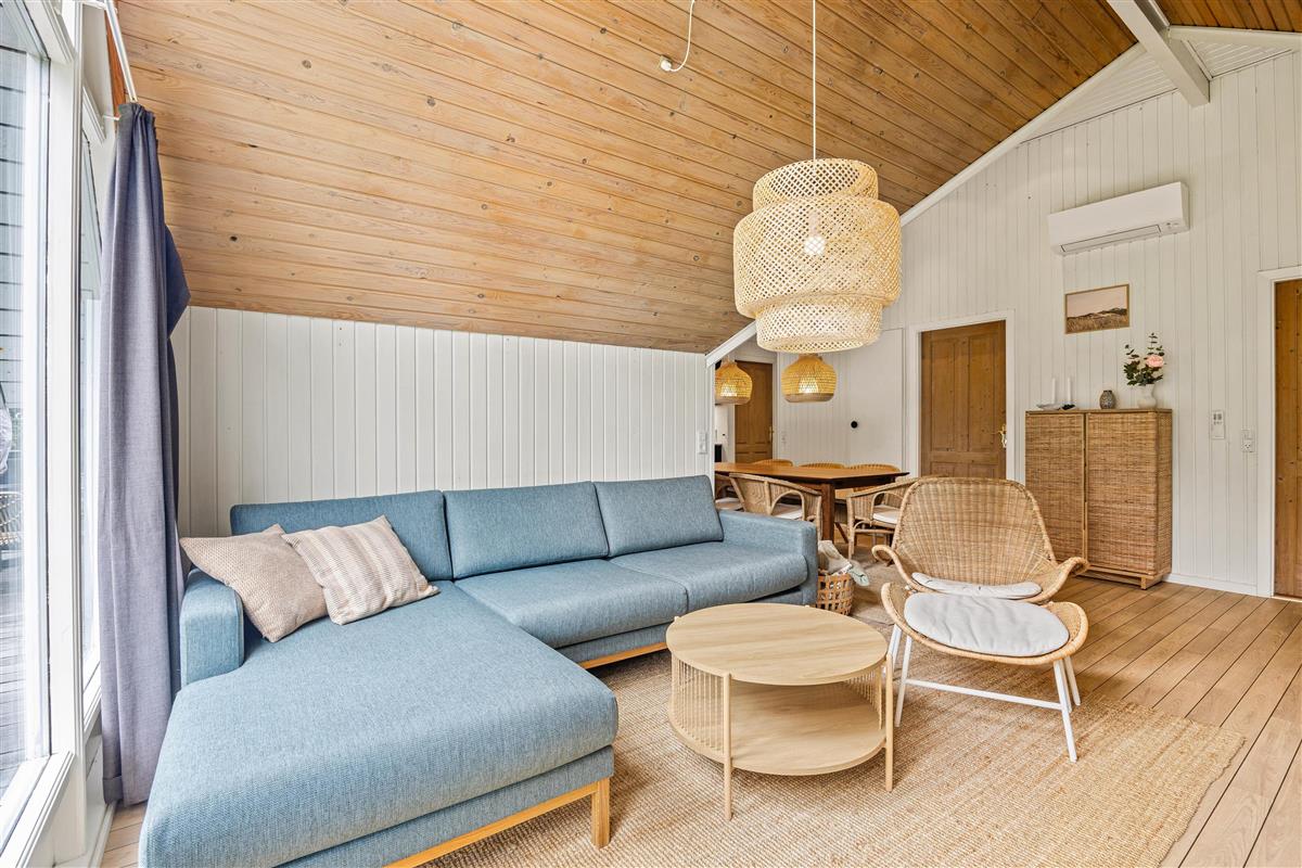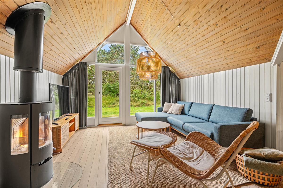 The house enjoys a truly beautiful location. Situated at the entrance to Blåvand, very close to the large heathland area and hidden among trees and bushes, this will be your temporary home. From here, you can easily walk either to the shops or straight into nature.