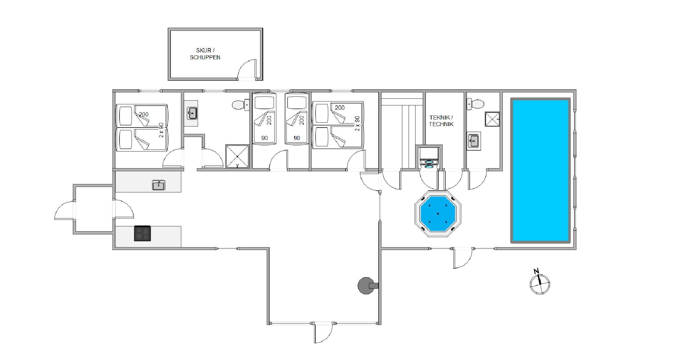 Nestled in greenery at Hedetoftvej 50 in beautiful Blåvand, you'll find this recently renovated holiday home with indoor pool, refurbished in 2020. This charming thatched holiday home is perfect for small families or several couples. The home features its own indoor pool, sauna, hot tub and, ideal for families with children, fully fenced grounds!