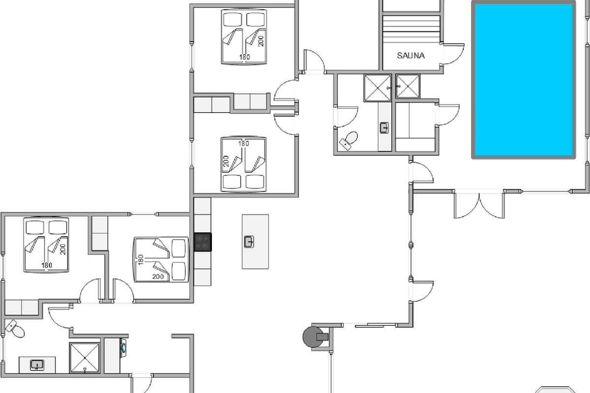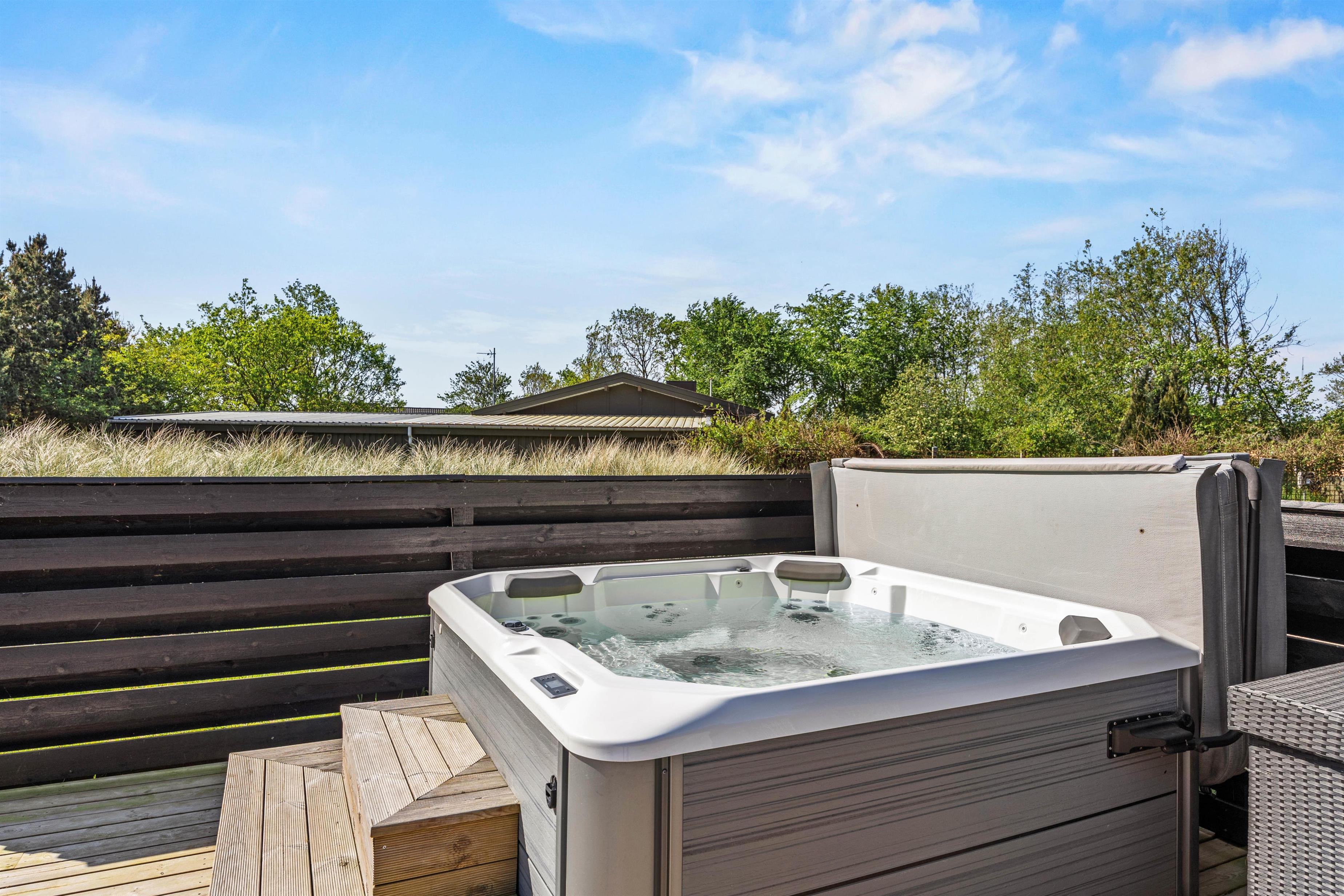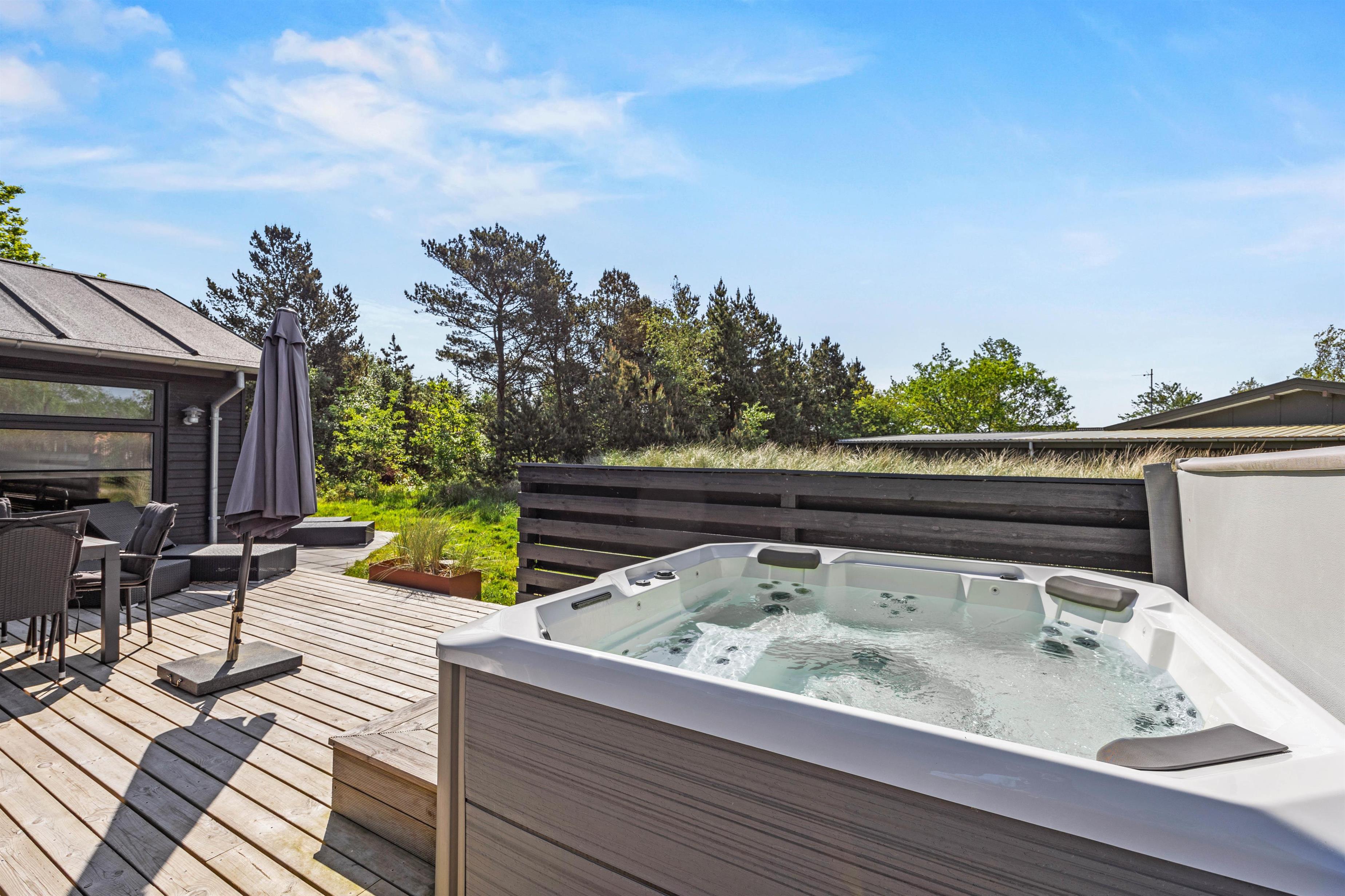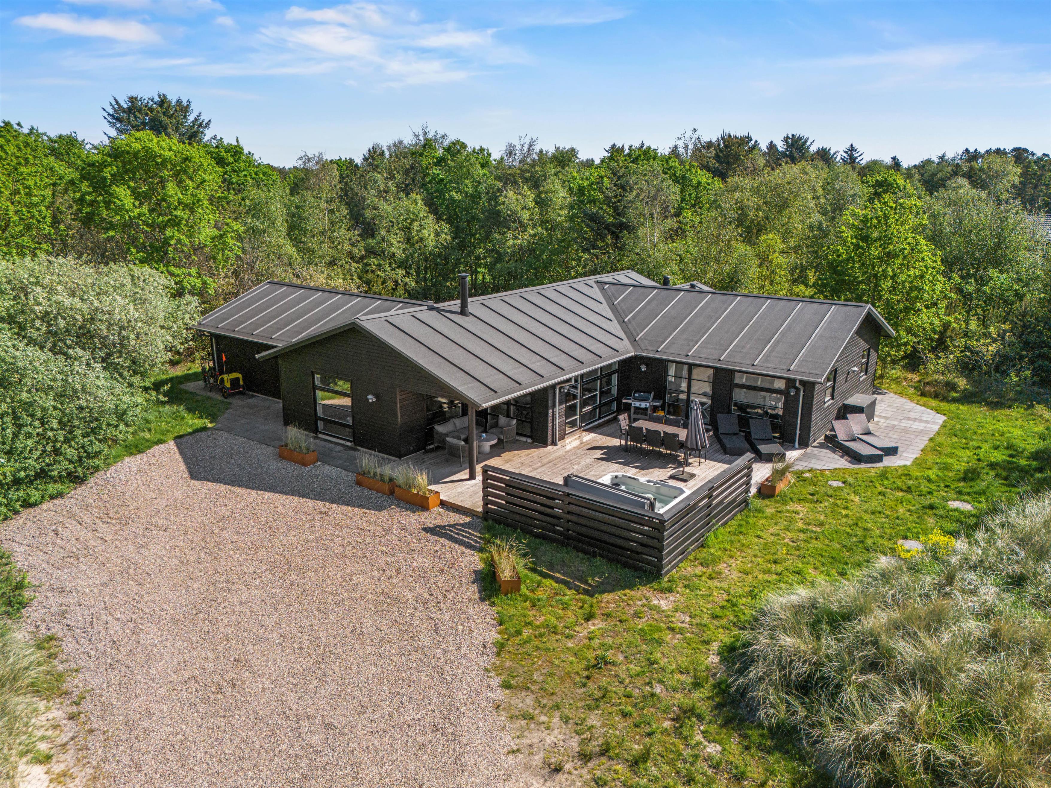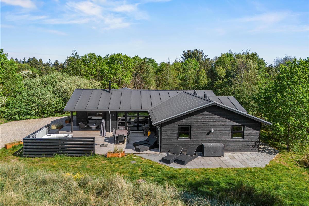 This holiday home at Vandflodvej 10B in Blåvand offers everything you could wish for. Completed in 2022, this comfortable, luxurious holiday home welcomes up to 8 people and your dog for a special holiday on Denmark's west coast. Designer elements, premium materials and an elegant wellness area with swimming pool, sauna and steam room ensure a unique holiday experience. The holiday home also features an electric car charging point.