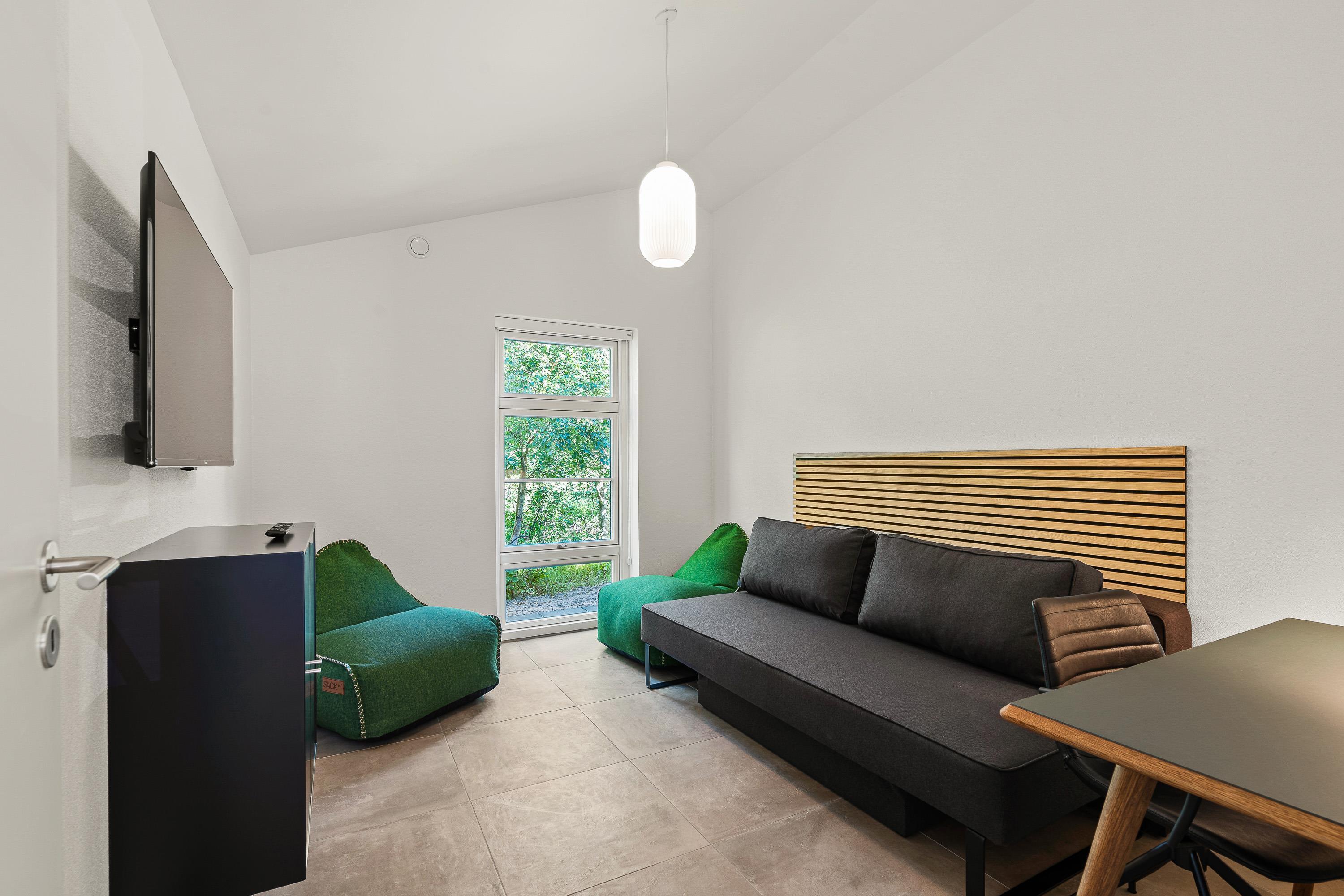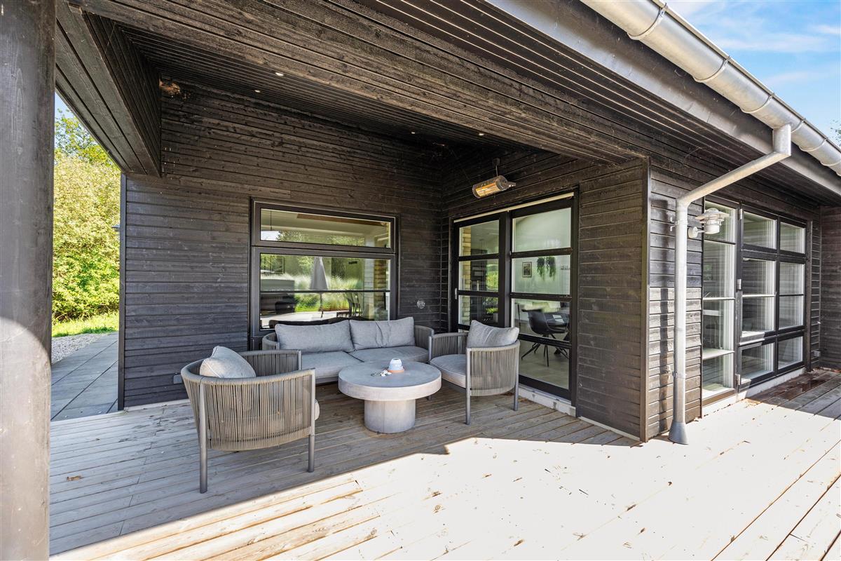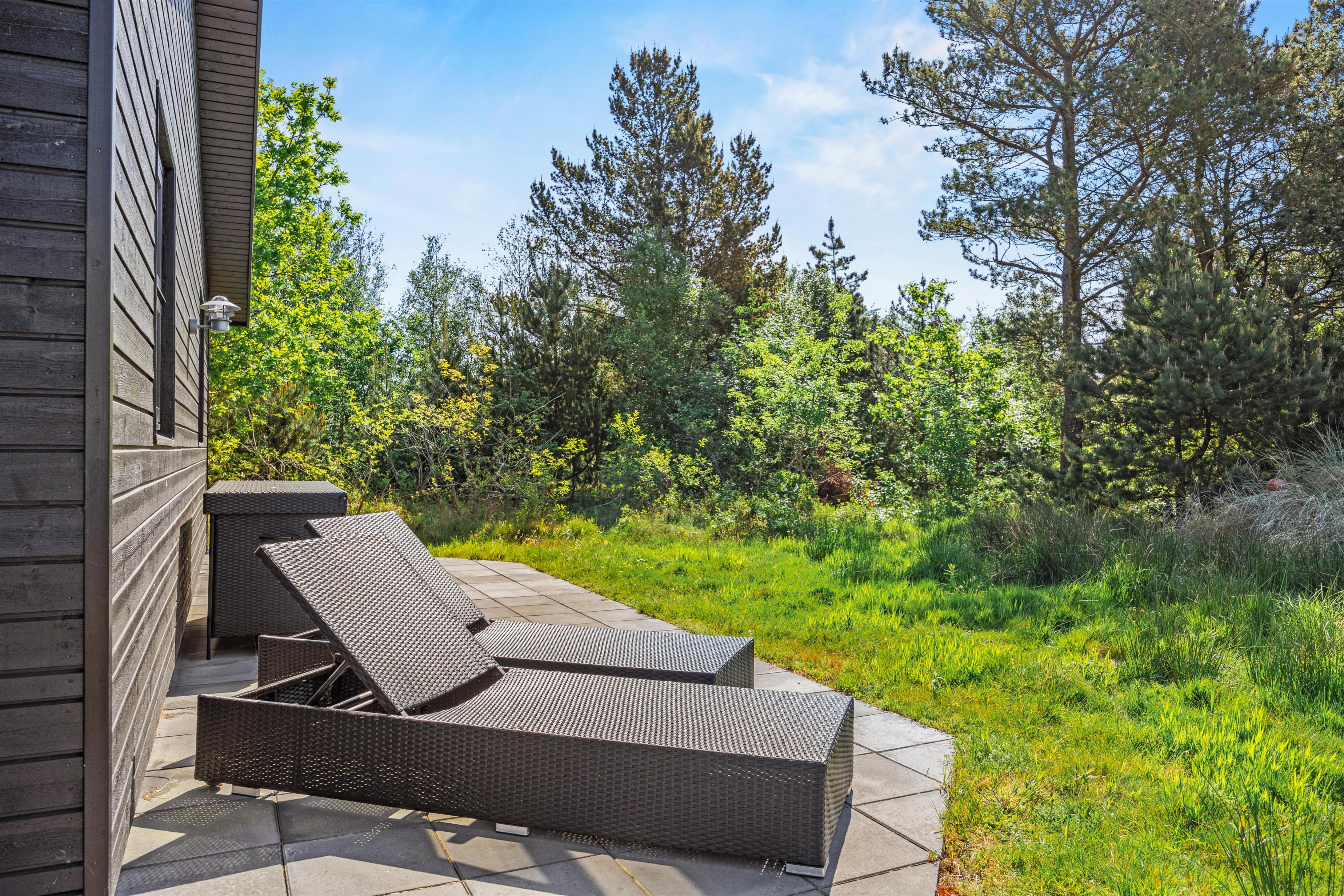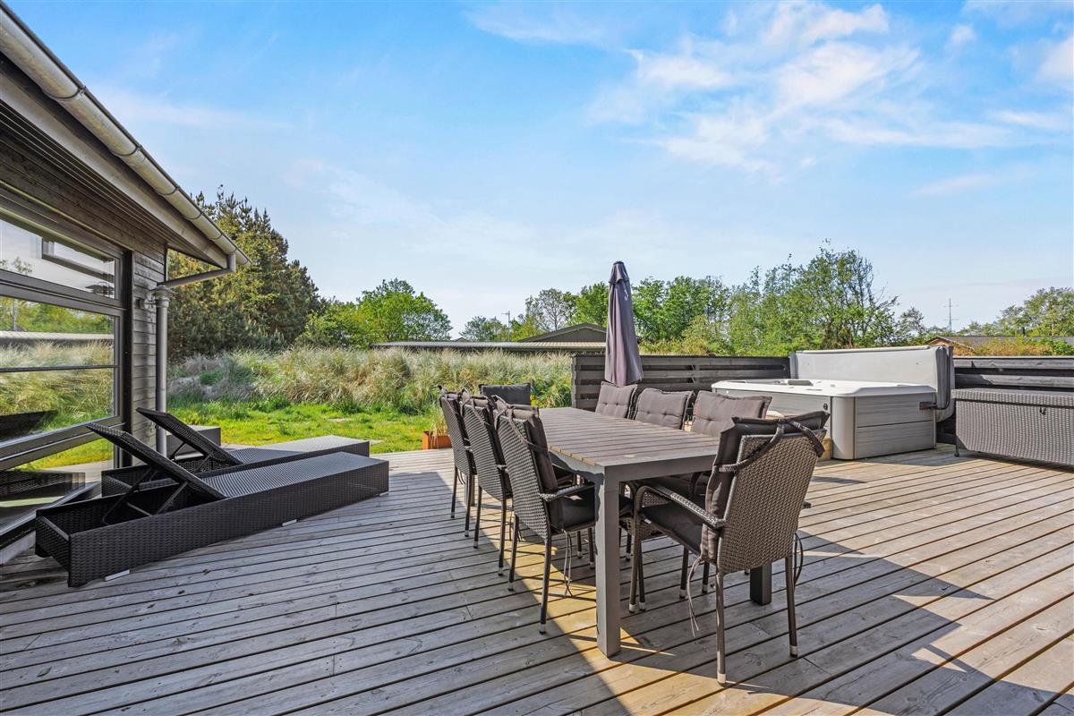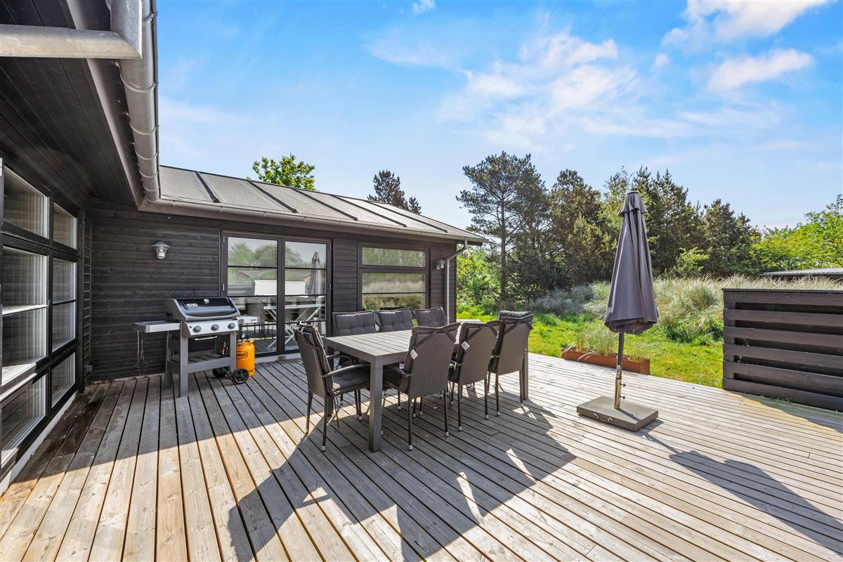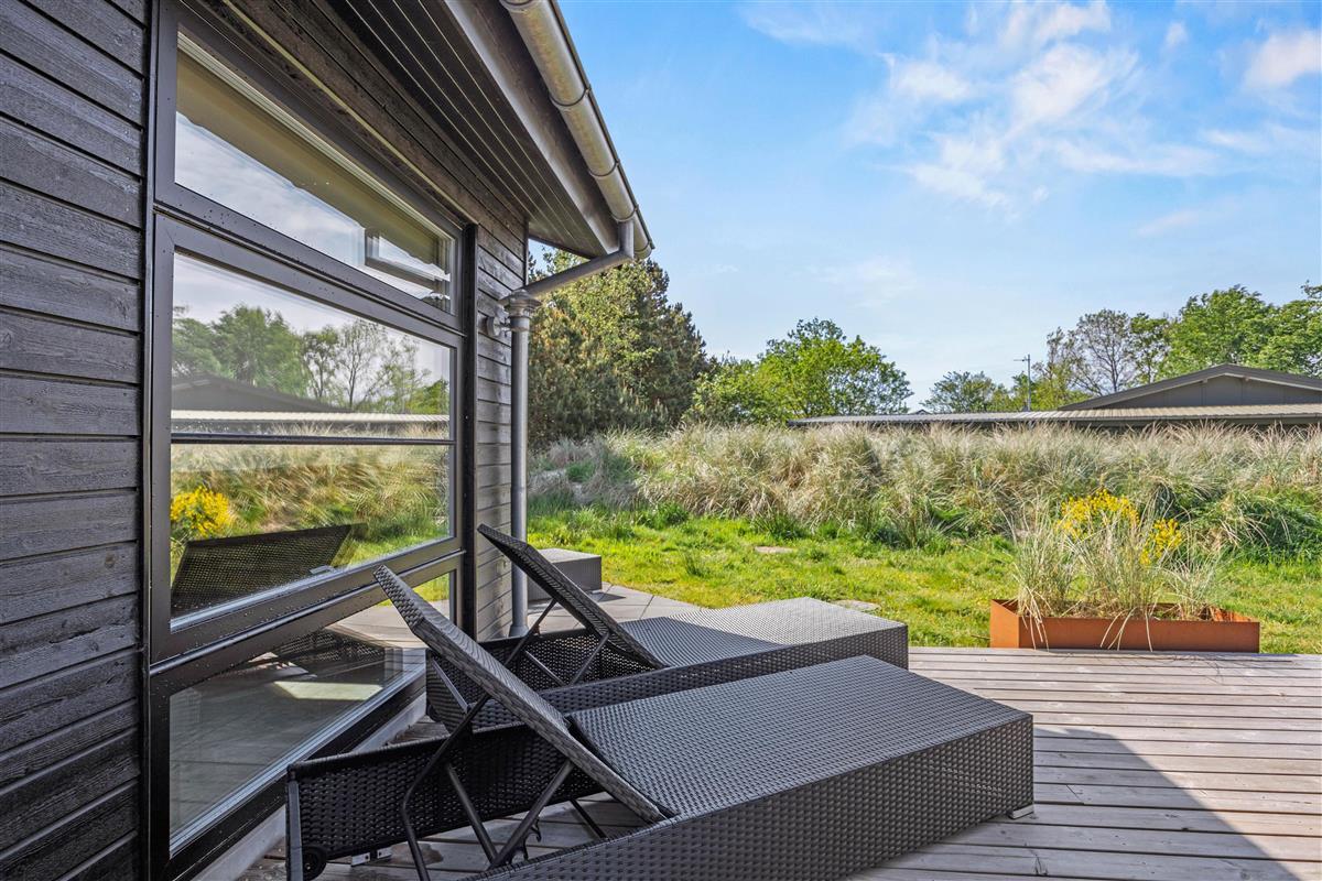 Step directly from the living and wellness areas onto your holiday home's magnificent wooden terrace. Make the most of sunny hours here, surrounded by beautiful nature. Stretch out on comfortable loungers or settle into the premium outdoor furniture to enjoy the fresh North Sea air. Round off your day by firing up the gas barbecue - what could be better than ending your holiday evening with a delicious steak and glass of wine?