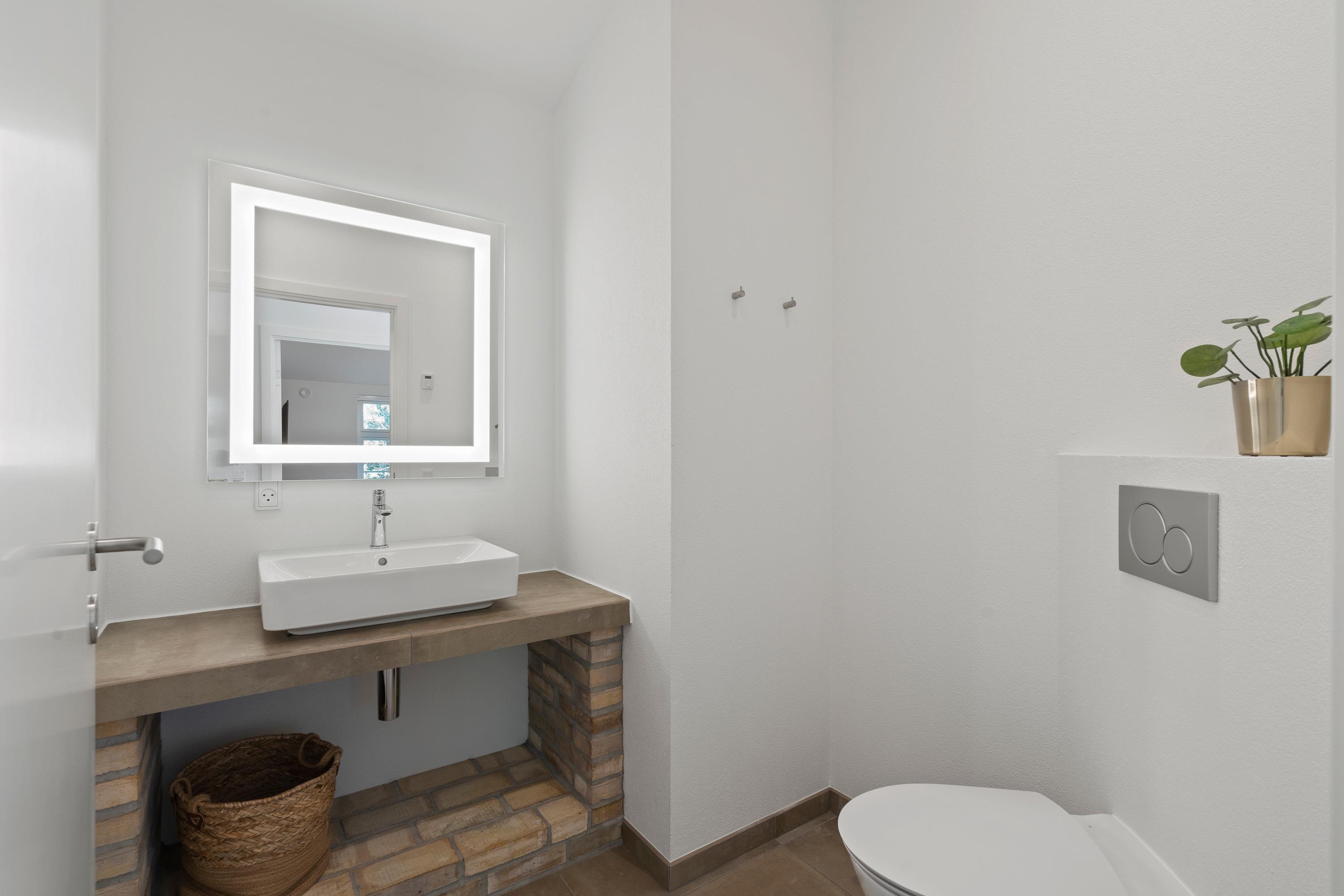 The holiday home has two beautiful, modern bathrooms continuing the premium wood and stone design theme. Equipped with underfloor heating, the bathrooms offer everything needed for comfort.