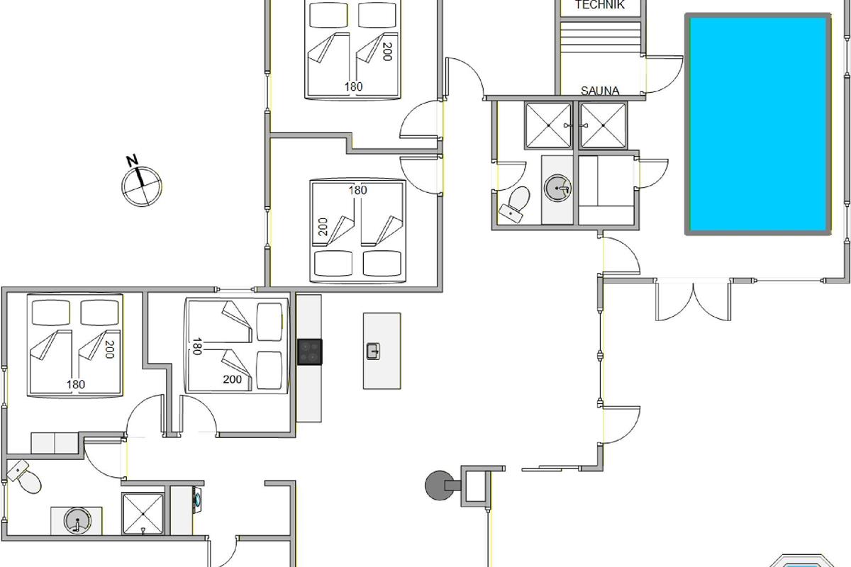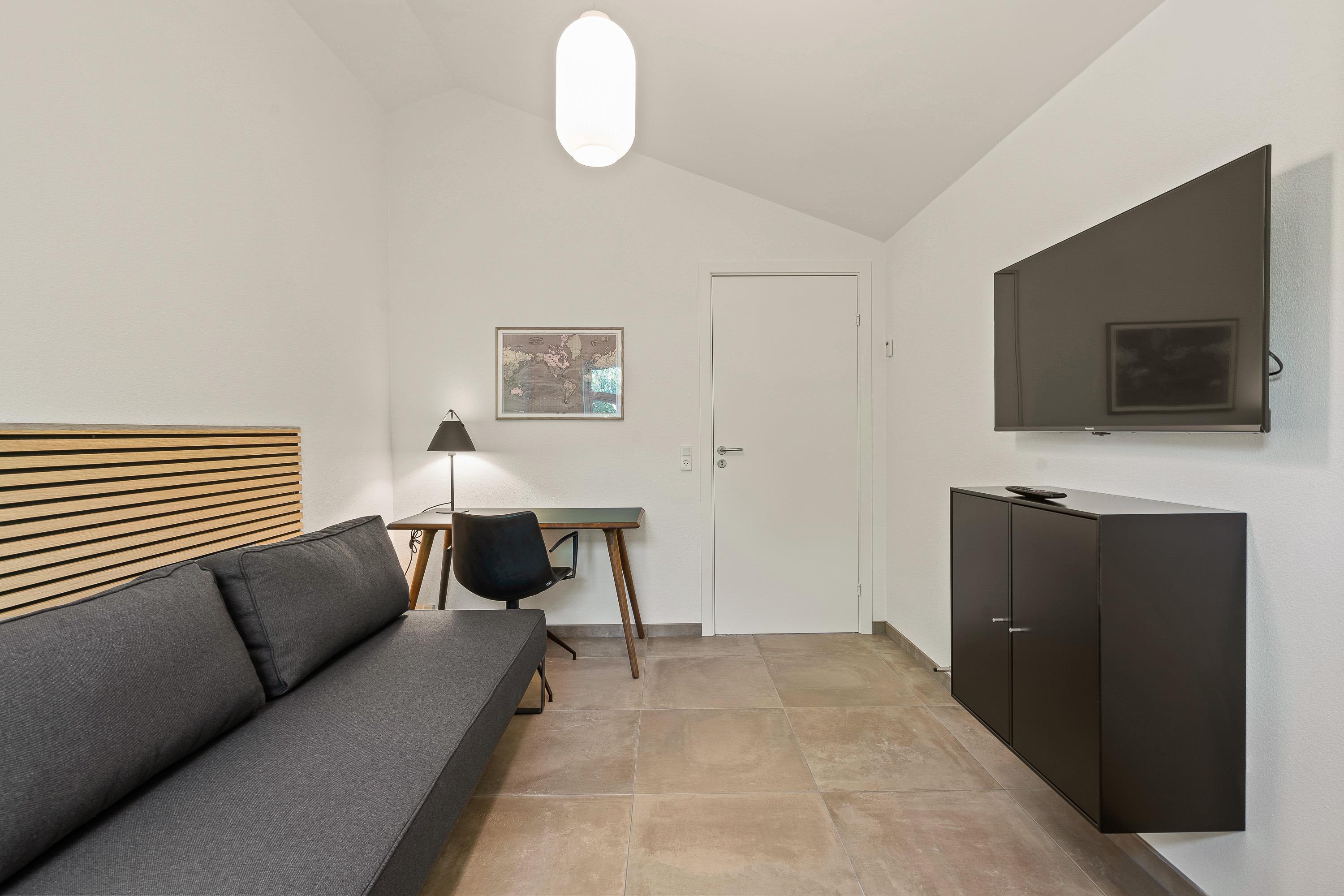 The holiday home features four bedrooms. A fifth room can serve as an office - if emails can't wait, you'll find a peaceful retreat with a desk to handle your correspondence. Children will surely love this room too, as it includes a flat-screen TV with a new PlayStation (games not provided).