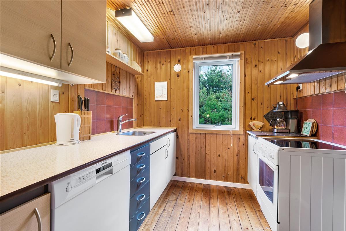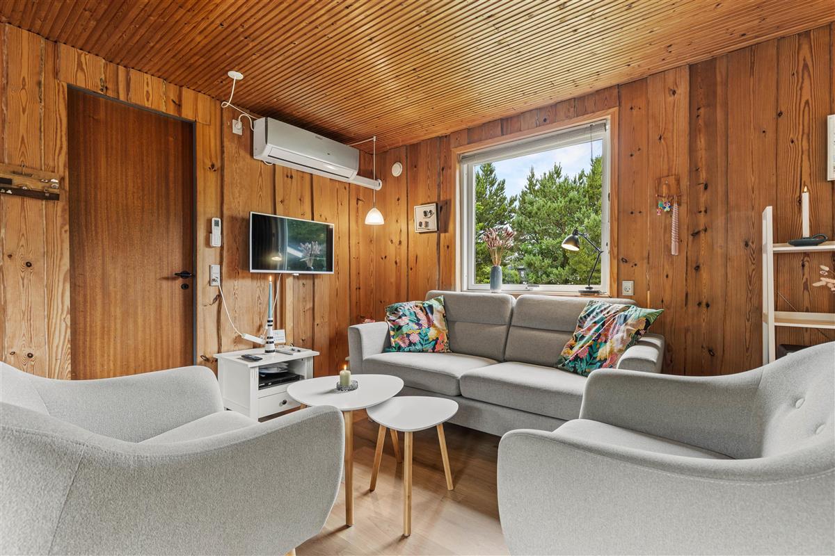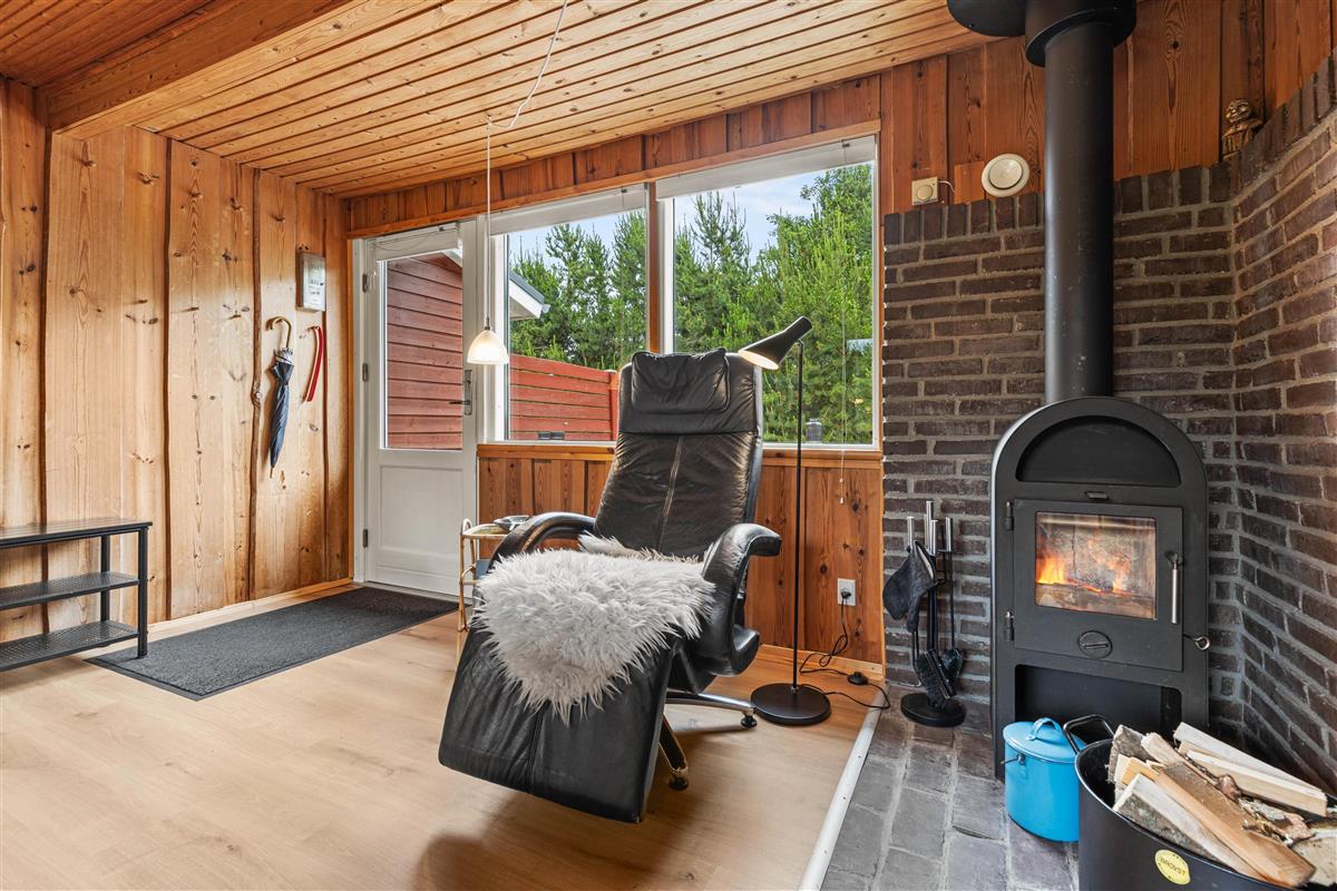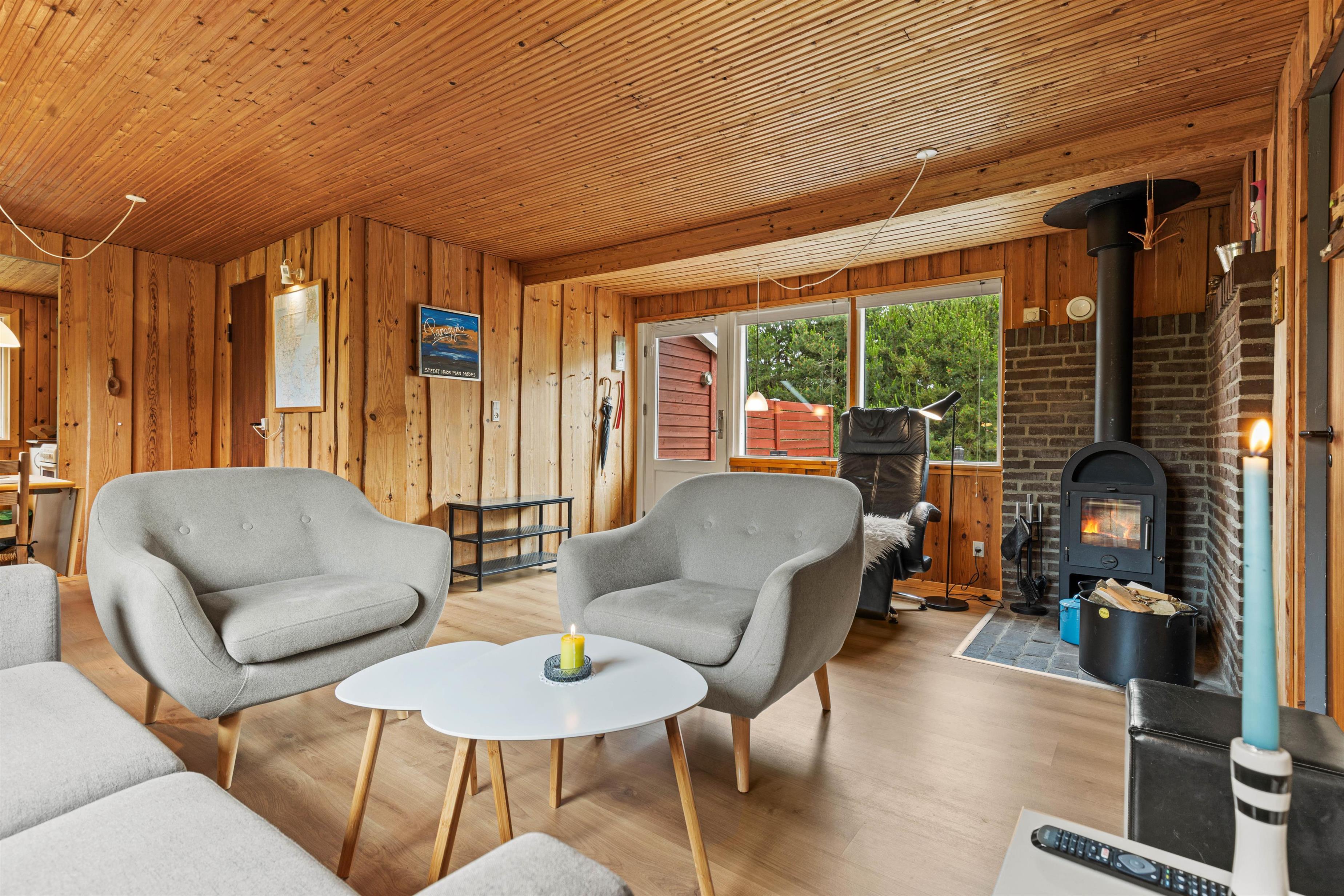 This holiday home with its wood-panelled walls and comfortable furnishings is nice for experiencing authentic Danish 'hygge' around the wood-burning stove. The living room offers space for your family, whether gathering around the stove, watching television, or simply sharing stories.
