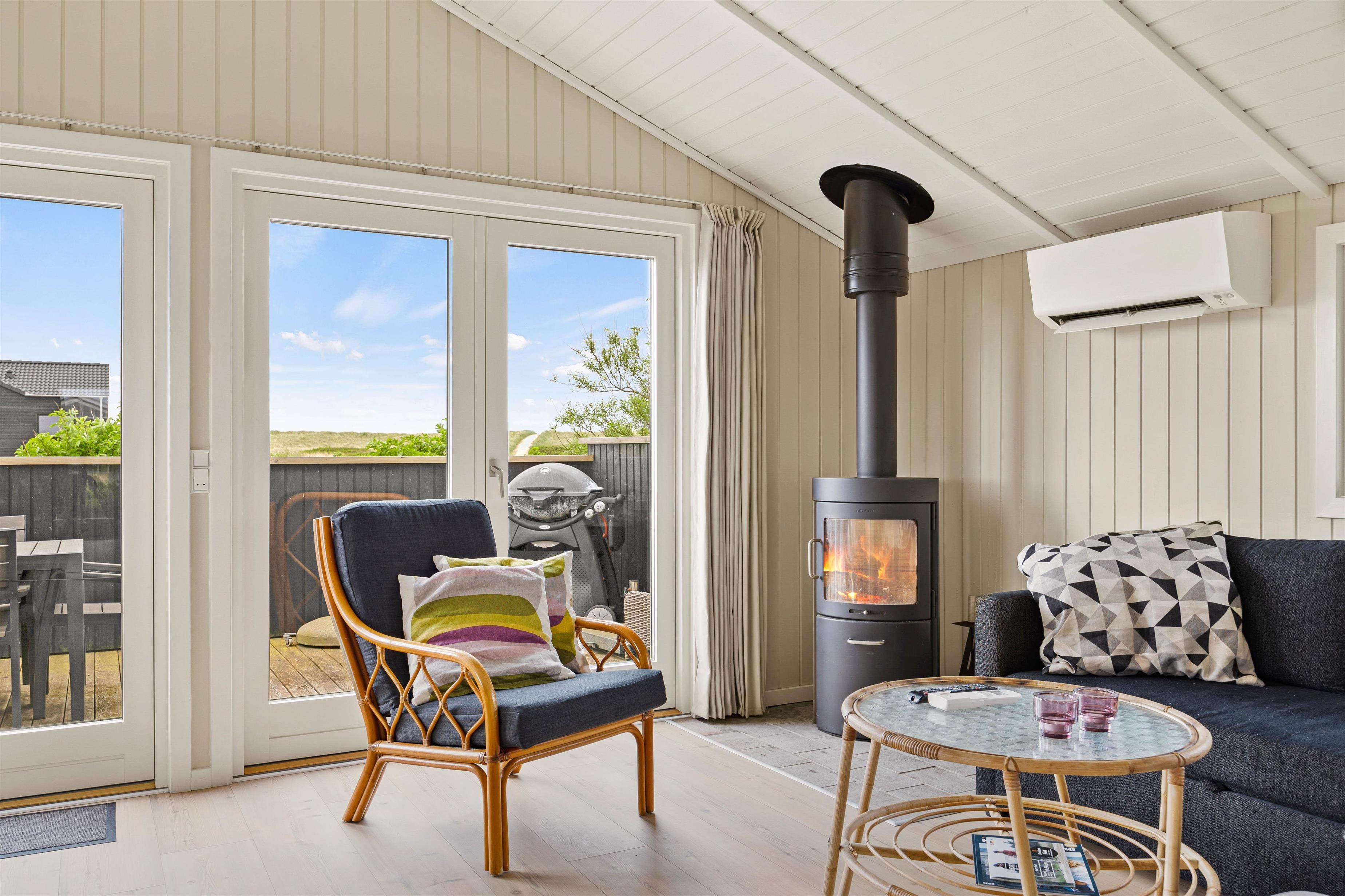 You'll quickly settle into holiday mode in this 73-square-metre holiday home. You'll spend most of your time in the heart of the house - the open-plan living and dining area. Not only is it wonderfully cosy, especially with the wood-burning stove lit, but you can also enjoy spectacular views across the Danish west coast landscape. Time easily slips away during an evening of games or films. The TV comes with a Chromecast device, allowing you to easily stream your favourite films and series.